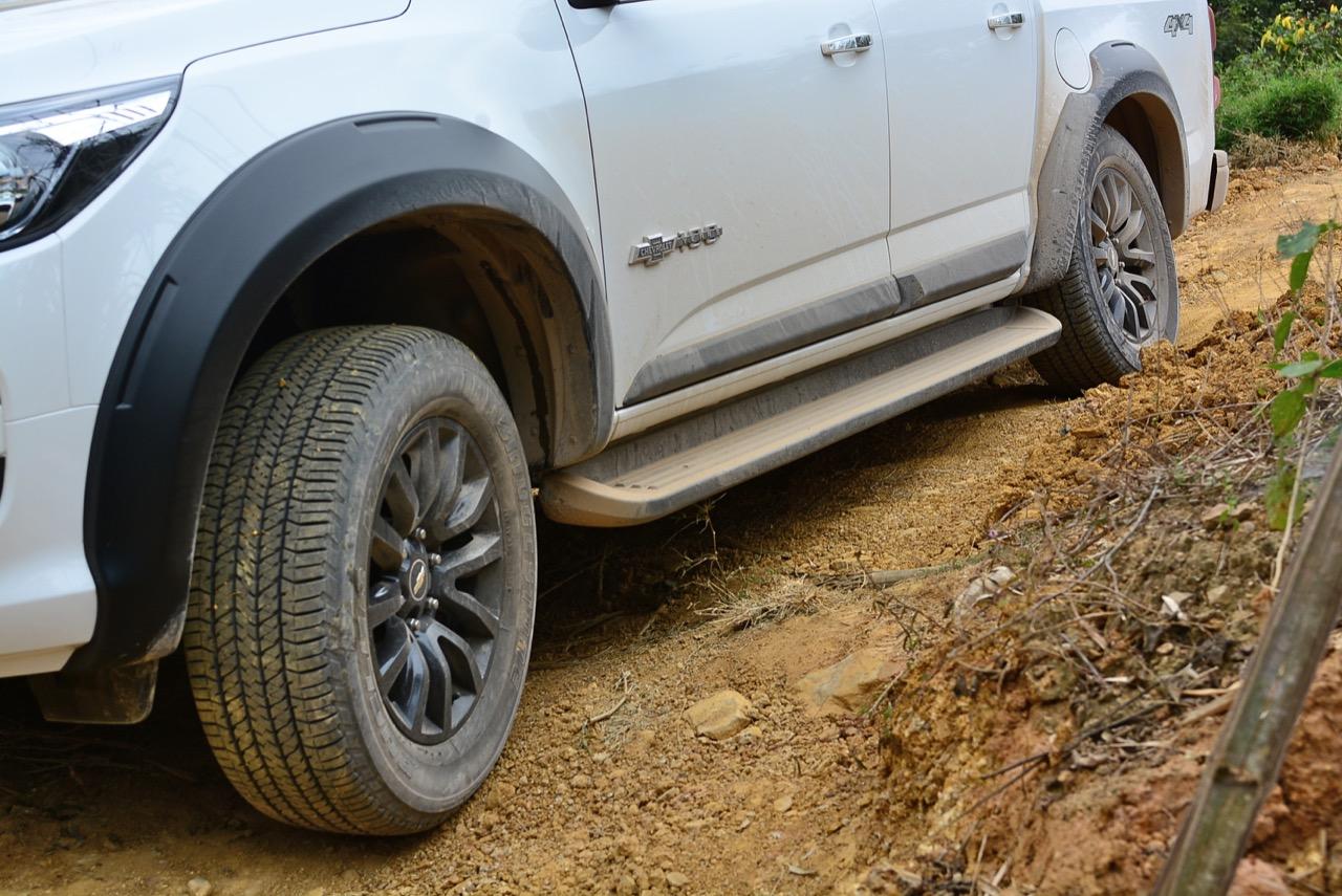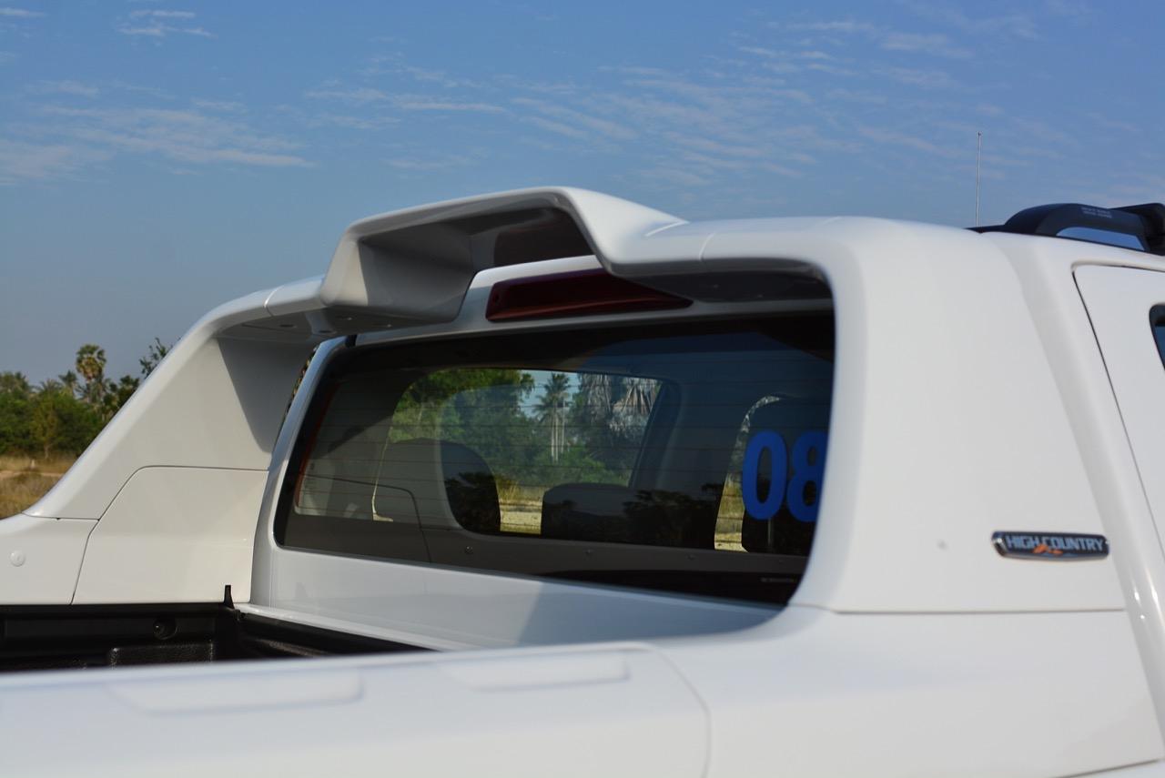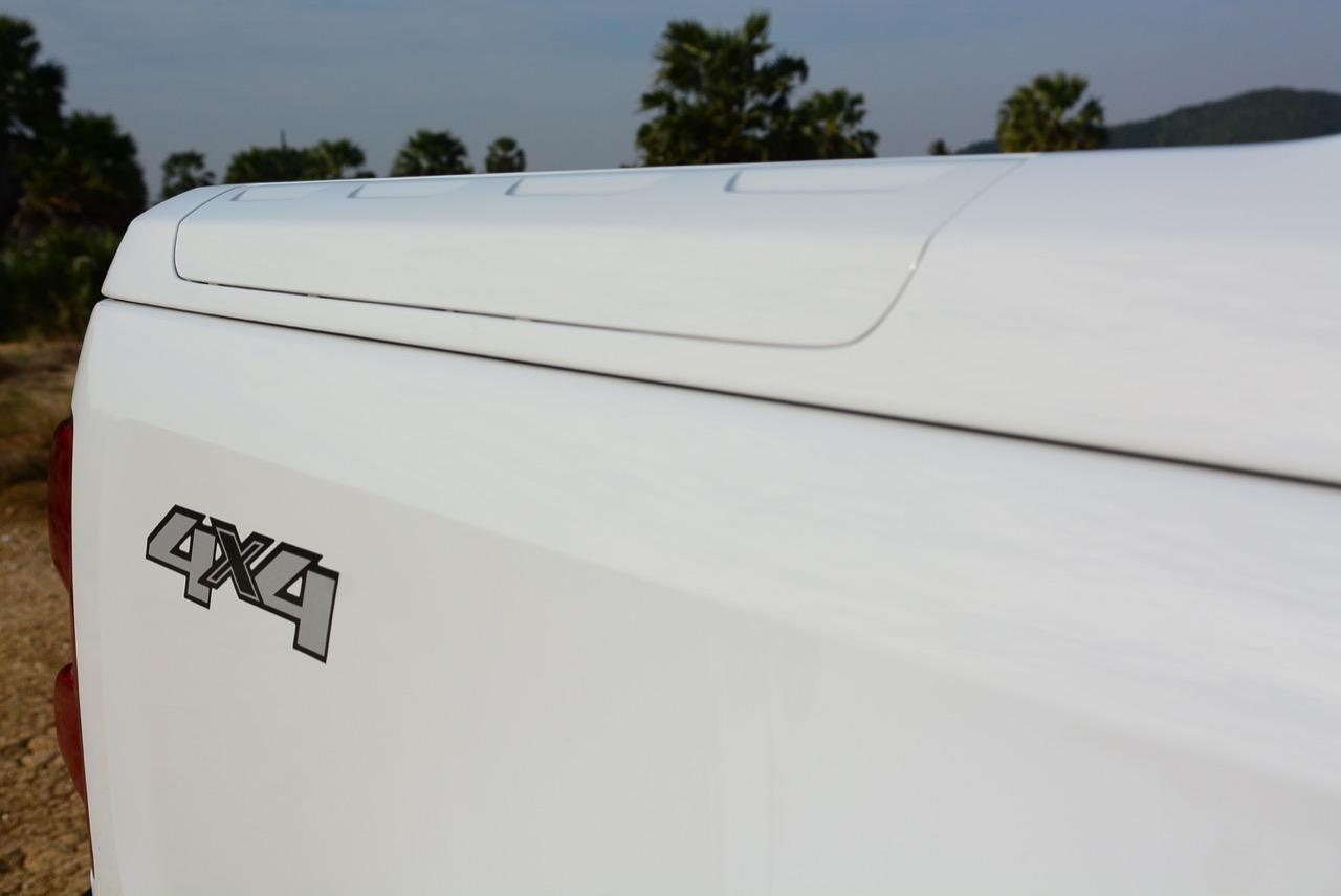 ยาง Bridgestone Dueler H/T ขนาด 265/600/R18 110T ยางสองบุคลิกที่ใช้งานได้ทั้งลุยและบรรทุกหนัก ความสูงในตัวรถคันทดสอบ 1,778 มิลลิเมตร ระยะฐานล้อ 3,096 มิลลิเมตร ใหญ่โตเต็มถนนตามสไตล์ปิกอัพของพวกมะกัน
