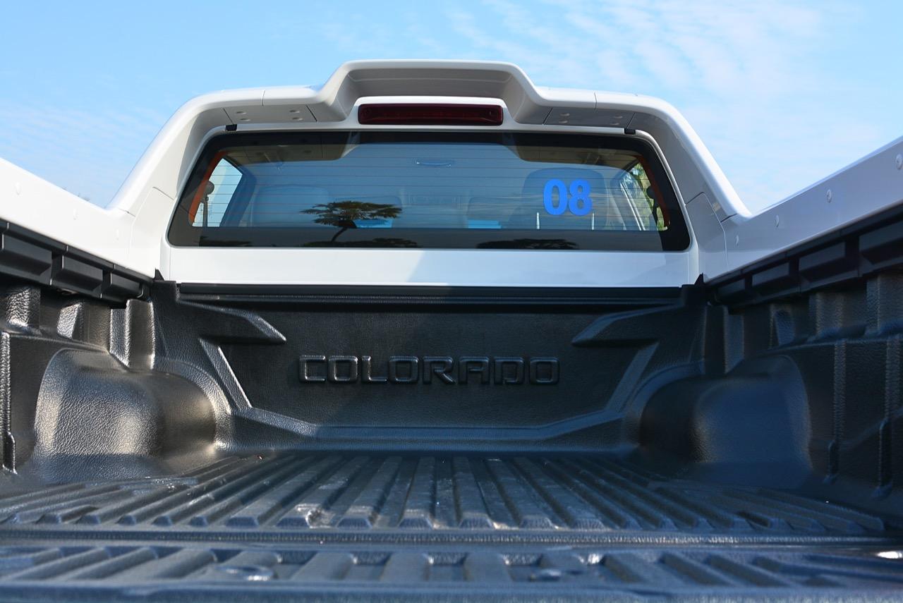กระบะหลังมีความยาววัดจากภายนอก 1,795 มิลลิเมตร กว้าง 1,534 มิลลิเมตร พื้นกระบะหลังใช้การออกแบบให้มีรอยเชื่อมต่อยึดติดที่เรียบเนียน ไม่เหมือนรถกระบะยี่ห้ออื่นที่เคยพบเจอ กระบะท้ายของ High Country Centennial Edition หุ้มด้วยวัสดุกันกระแทกสีดำ แปะตรา Colorado วิศวกรของ GM ทำการออกแบบตัวกระบะท้ายใหม่ทั้งหมด ส่งผลไปถึงขั้นตอนของการประกอบเชื่อมต่อกระบะในไลน์การผลิตให้มีประสิทธิภาพด้านการใช้งานบรรทุกที่หลากหลาย ไฟท้ายแนวตั้งตรงทำจากพลาสติกโพรลิเมอร์ ใส่หลอดไฟแบบ LED 12 หลอด สลับกับหลอดไฟแบบขั้ว กันชนหลังงานโลหะชุบโครเมียม ห่อหุ้มด้วยวัสดุกันกระแทกที่เข้ากับแนวทางของตัวรถ เป็นชิ้นงานพลาสติกสีดำ ดีไซน์เป็นหยักร่องกันลื่น เมื่อต้องการก้าวขึ้นไปบนกระบะท้าย ฝาหลังติดตั้งที่เปิดอยู่ในตำแหน่งกึ่งกลางตามสมัยนิยม ไฟเบรกดวงที่สาม ย้ายตำแหน่งไปติดตั้งไว้ด้านบนของกระจกบานหลังเพื่อทำให้สังเกตได้อย่างชัดเจนสำหรับรถที่ขับตามหลัง