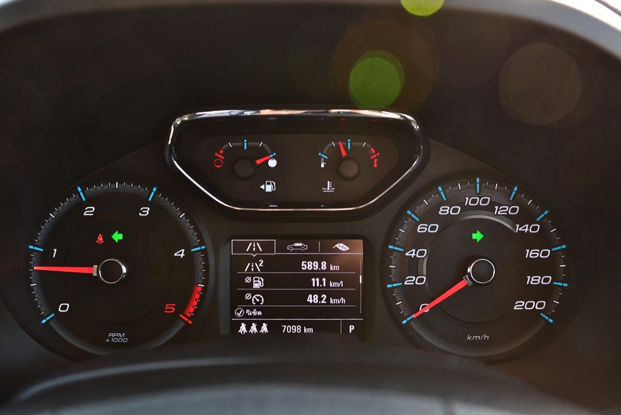หน้าปัดมาตรวัดมีรูปแบบและกลิ่นอายของรถสปอร์ตในค่าย Chevrolet รุ่น Camaro ขนาดของมันมีความกะทัดรัด ไม่ใหญ่โตเหมือนเมื่อก่อน สีสันในหน้าปัดใช้โทนสีฟ้าอมน้ำเงิน Ice Blue LED ที่ดูแล้วให้อารมณ์สงบและสวยงาม ถึงจะมีขนาดของกรอบหน้าปัดเล็ก แต่สามารถอ่านค่าได้ง่ายทั้งวัดรอบเครื่องยนต์กับวัดความเร็วของตัวรถ เข็มวัดสีแดงกับไฟหน้าปัดสีฟ้าอมน้ำเงินจะทำงานตลอดเวลาที่ติดเครื่องยนต์ มาตรวัดอุณหภูมิเครื่องยนต์ทำเป็นกรอบสี่เหลี่ยมเล็กๆที่ใต้มาตรวัดความเร็ว ส่วนวัดระดับเชื้อเพลิงในถังมีรูปแบบเหมือนกัน โดยวางตำแหน่งเอาไว้ที่มุมขวาของกรอบหน้าปัดใต้มาตรวัดรอบจอเล็กๆตรงใจกลางมาตรวัดแบบ Multi Information Display ที่วิศวกรของ Chevrolet เรียกว่า DIC (Data Information Center) ทำหน้าที่แสดงข้อมูล ความเร็วเป็นตัวเลข อัตราสิ้นเปลืองเชื้อเพลิงต่างๆ ระยะทางที่น้ำมันในถังเหลือพอให้แล่นต่อความเร็วเฉลี่ย ตำแหน่งของเกียร์อัตโนมัติ ประตูที่ปิดไม่แน่น กับหน่วยประมวลผลข้อมูลของตัวรถที่แสดงผลเป็นภาษาอังกฤษ หน้าปัดของเจ้า New Colorado High Country Centennial Edition มีความเรียบง่ายแปลกตาด้วยแนวทางการออกแบบที่เน้นภาพลักษณ์ของรถอเมริกัน ทำออกมาได้สวยงามประณีตสมราคาใช้ได้