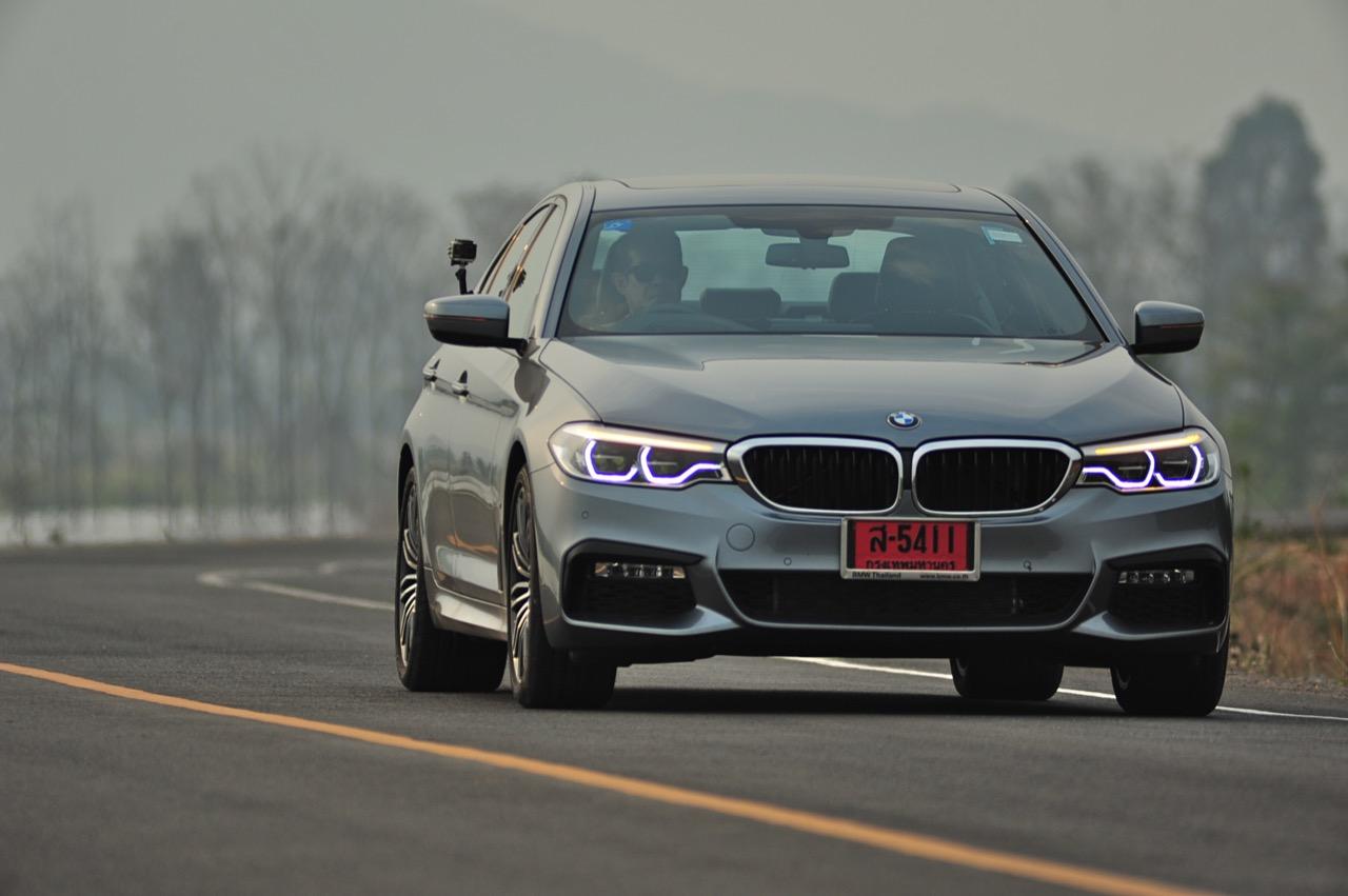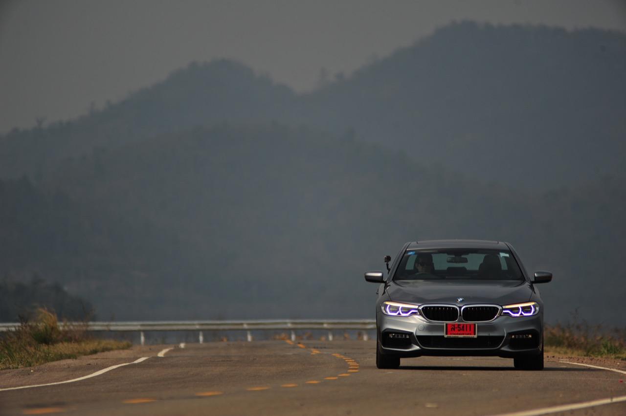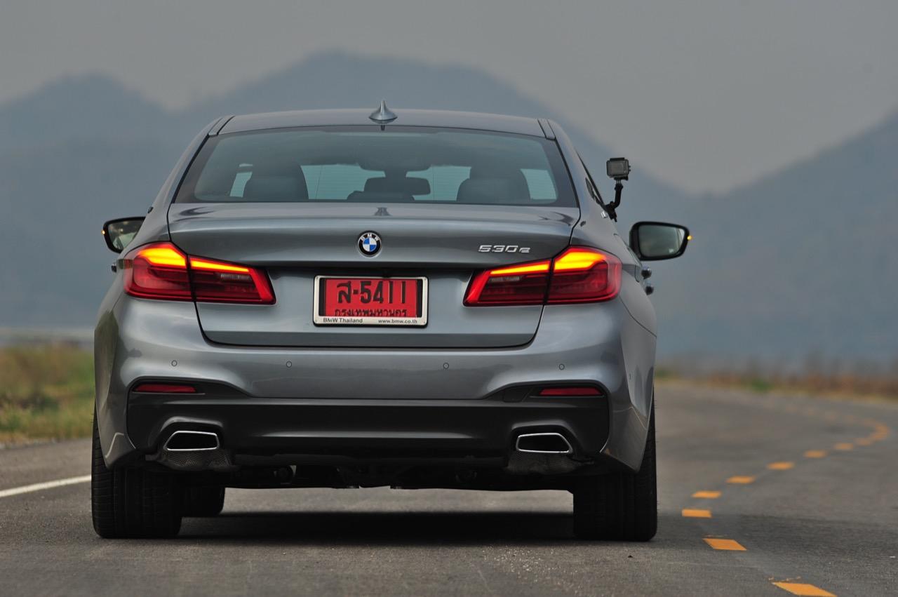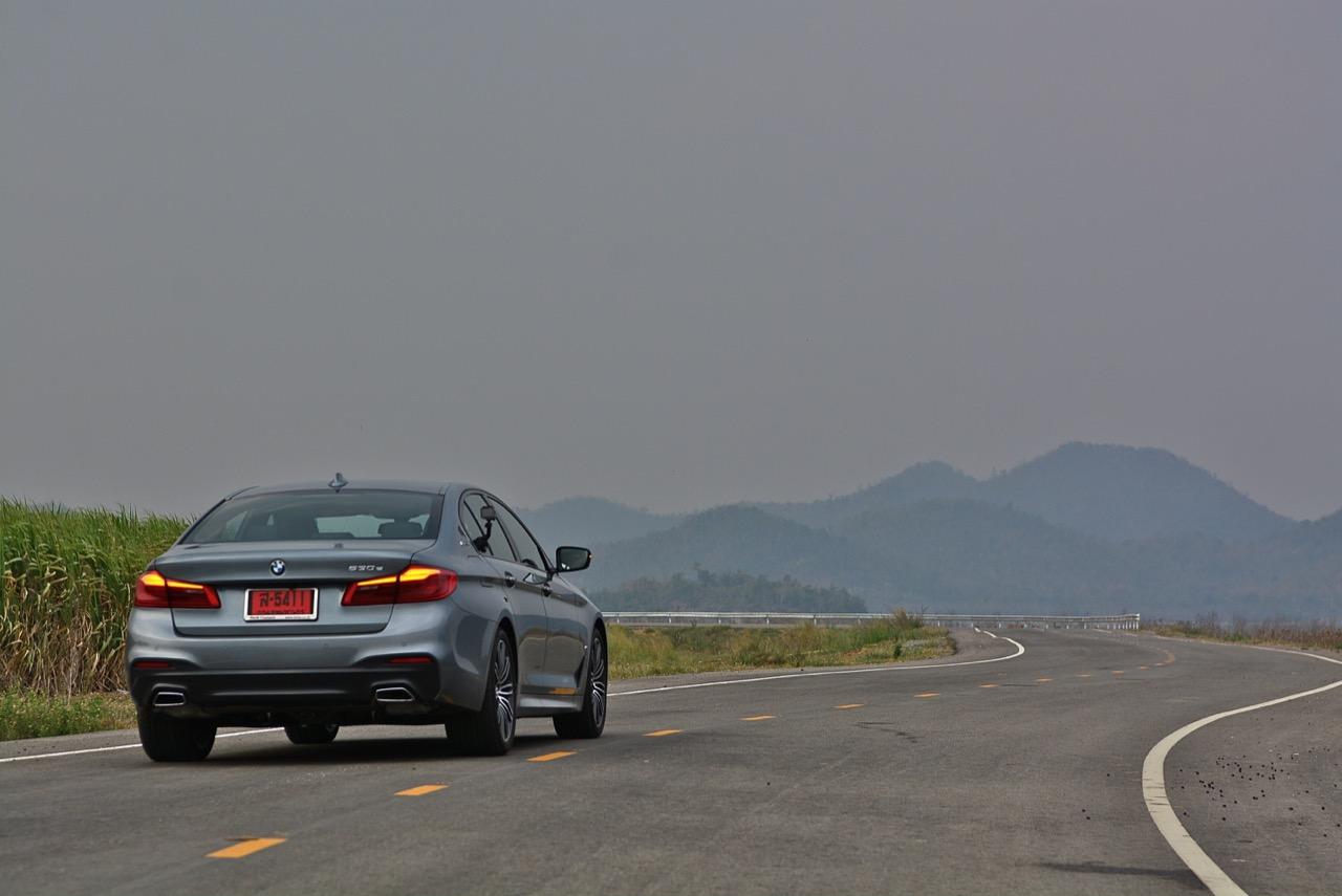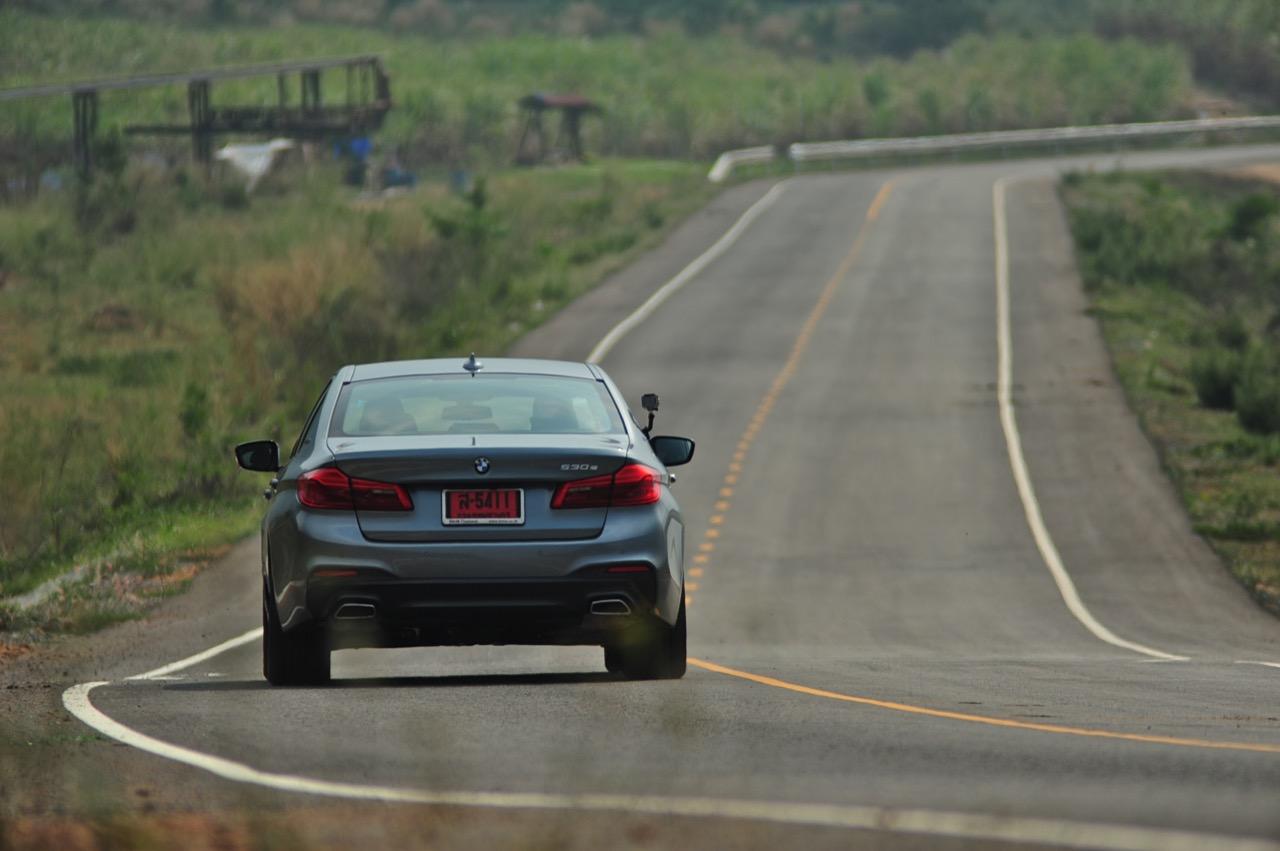 BMW 530e iPerformance M-Sport เป็นรถที่เงียบมาก การสตาร์ตเครื่องยนต์เริ่มต้นจากการทำงานของมอเตอร์ไฟฟ้าทำให้เครื่องยนต์ยังคงหลับใหลหากขับในย่านความเร็วต่ำหลังจากชาร์จไฟมาทั้งคืนคุณจะวิ่งด้วยมอเตอร์เพียวๆ โดยไม่ใช้น้ำมันไกล 30 กิโลเมตร เป็นระยะทาง 30 กิโลเมตรที่ไม่มีมลพิษใดๆ ทั้งสิ้น มันทั้งเงียบและแน่น แถมยังนุ่มนวลสุดๆ เมื่อเคลื่อนตัวผ่านผิวถนนที่ขรุขระจากการก่อสร้างรถไฟฟ้าแถบถนนพหลโยธิน ราคาเฉียดๆ 4 ล้านบาทของ 530e iPerformance M-Sport คุณจะได้ซาลูนที่มีความยาวเกือบ 5 เมตร พร้อมการขับที่เน้นความนุ่มมากเป็นพิเศษ นักเลง BMW อาจรู้สึกย้วยเมื่อลองขับรถรุ่นนี้รวมถึง Series-5 G30 ที่มีขายในไทย ระบบรองรับที่ถูกปรับจูนมาใหม่ทำให้ช่วงล่างของมันโอนอ่อนผ่อนคลายขึ้นเยอะ แม้จะขับบนผิวถนนที่เป็นปูนซีเมนต์ก็ยังนุ่มกว่ารถคู่แข่ง ความรู้สึกดังกล่าวถูกส่งถ่ายออกมาจากช่วงล่างอัลลอยที่มีการปรับปรุงใหม่ทั้งหมด