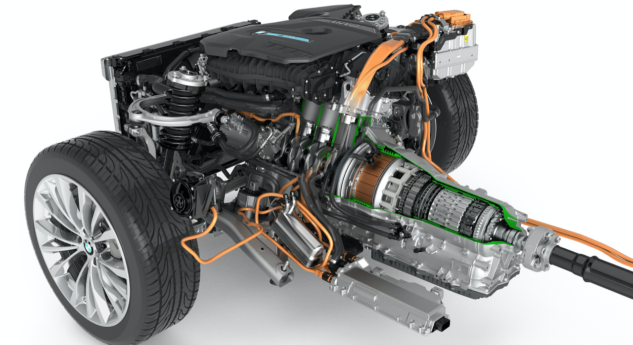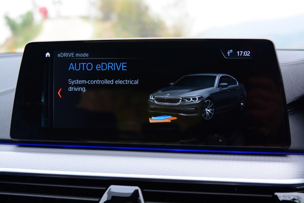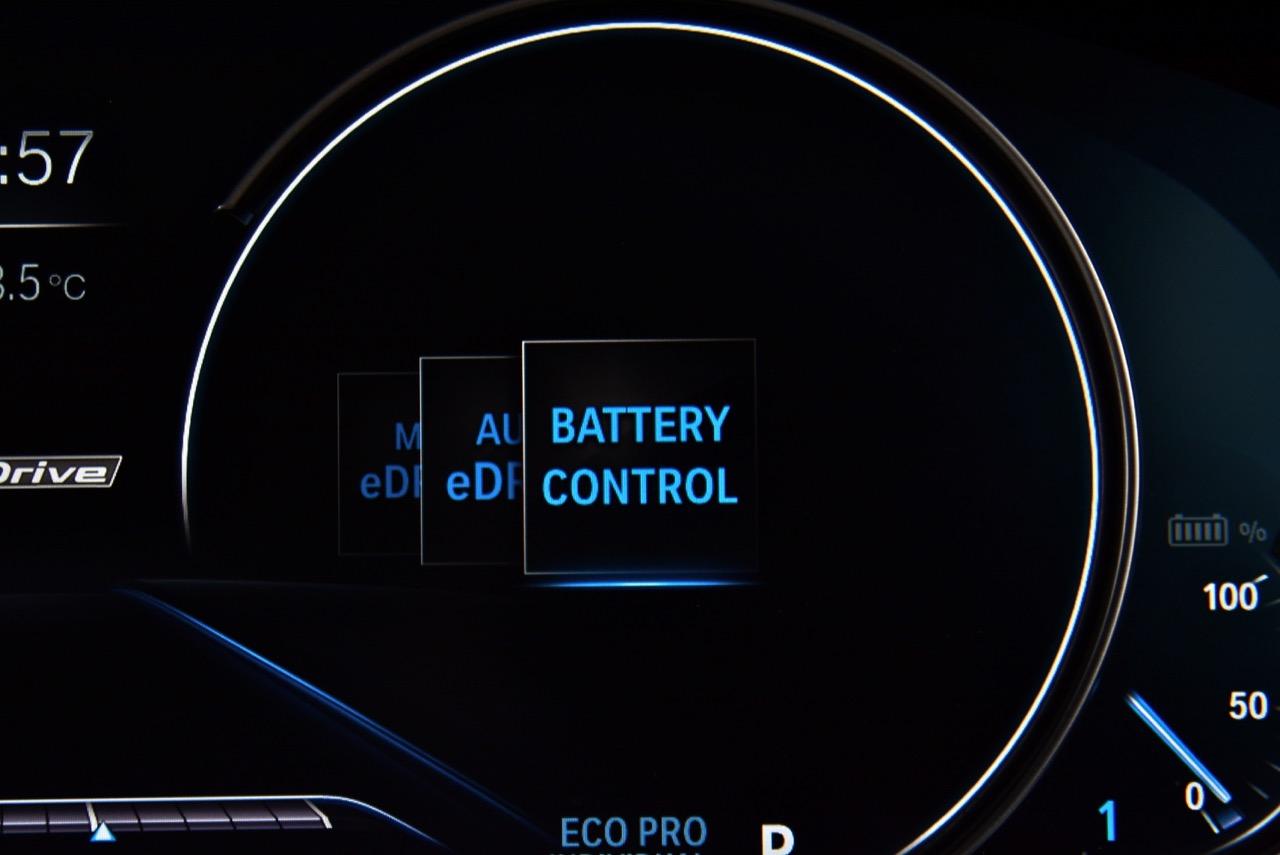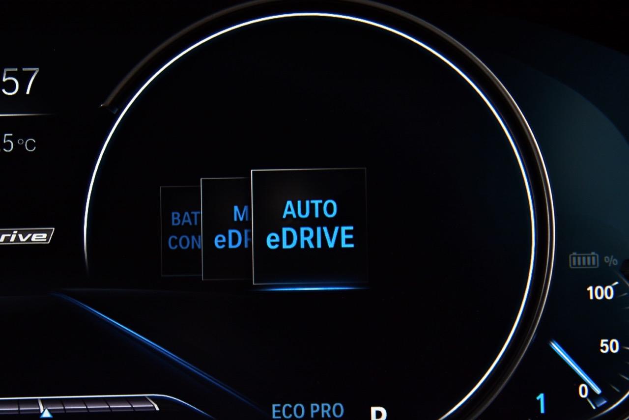 พลังงานไฟฟ้าที่ใช้ป้อนมอเตอร์ในชุดเกียร์ส่งถ่ายมาจากแบตเตอรี่ลิเทียมไอออนแบบ High Voltage ขนาด 9.2 Kwh เมื่อชาร์จไฟจนเต็มแบตฯ BMW เคลมว่าสามารถวิ่งในเมืองได้ไกลถึง 50 กิโลเมตร (ระยะทางจากการใช้มอเตอร์ไฟฟ้าขับเคลื่อนแต่เพียงอย่างเดียวโดยไม่ติดเครื่องยนต์ขึ้นอยู่กับรูปแบบของการขับขี่และสภาพการจราจรและสภาพถนน) มอเตอร์ไฟฟ้าในเกียร์ ZF 8 HP สามารถทำความเร็วได้ถึง 140 กิโลเมตรต่อชั่วโมงโดยที่เครื่องยนต์ยังไม่ทำงานเพื่อเสริมแรงบิด! BMW ยังเคลมอัตราสิ้นเปลืองเชื้อเพลิงไว้ถึง 52.3 กิโลเมตรต่อลิตร ส่วนค่าการปล่อย Co2 นั้นต่ำสุดๆ แค่ 44 กรัม ต่อระยะทาง 1 กิโลเมตร
