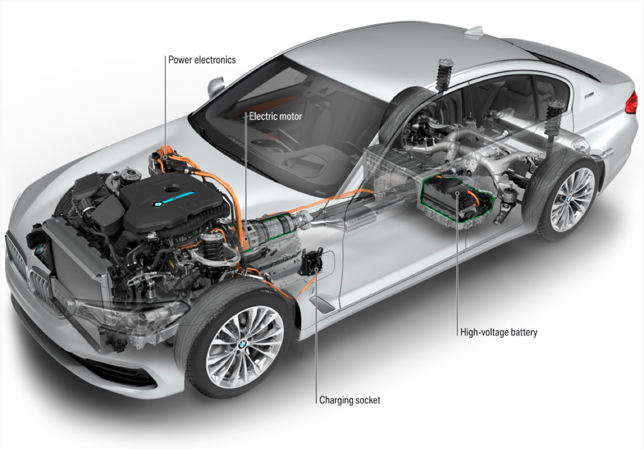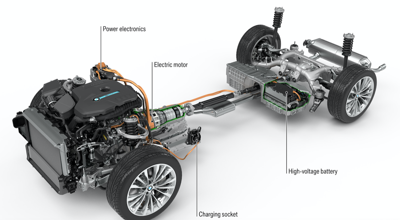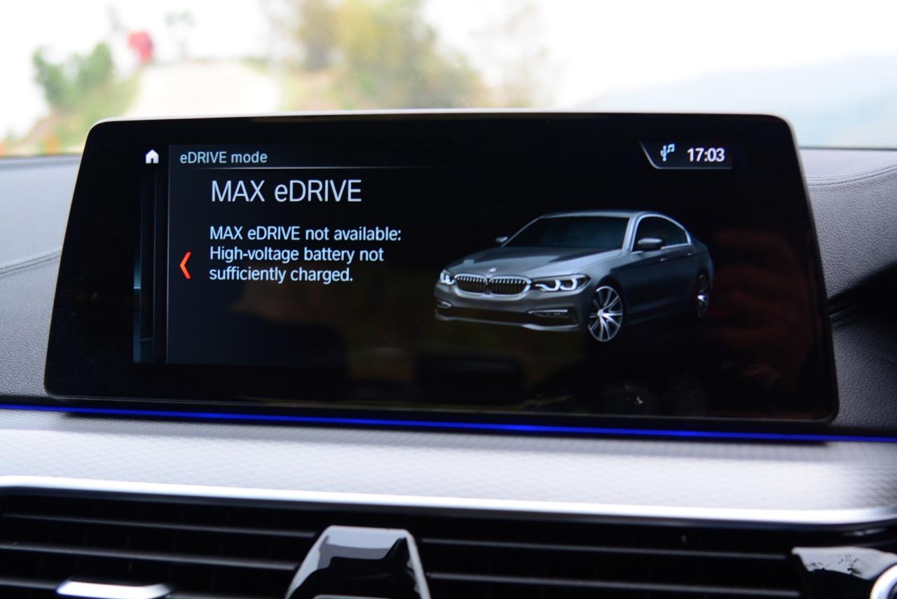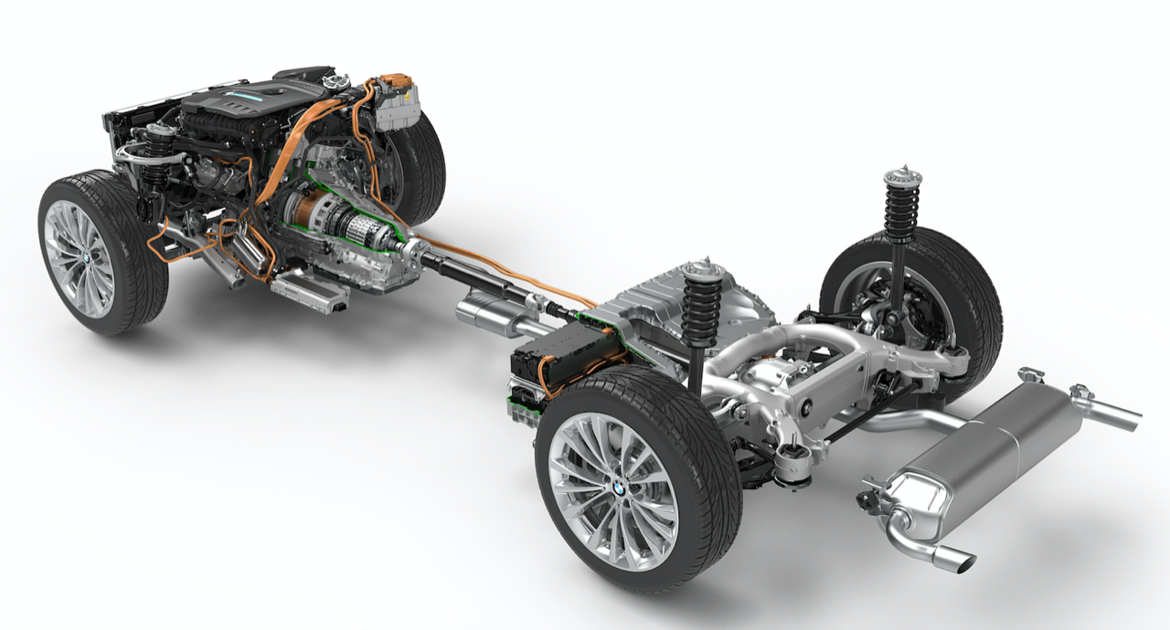 พลังงานไฟฟ้าที่ใช้ป้อนมอเตอร์ในชุดเกียร์ส่งถ่ายมาจากแบตเตอรี่ลิเทียมไอออนแบบ High Voltage ขนาด 9.2 Kwh เมื่อชาร์จไฟจนเต็มแบตฯ BMW เคลมว่าสามารถวิ่งในเมืองได้ไกลถึง 50 กิโลเมตร (ระยะทางจากการใช้มอเตอร์ไฟฟ้าขับเคลื่อนแต่เพียงอย่างเดียวโดยไม่ติดเครื่องยนต์ขึ้นอยู่กับรูปแบบของการขับขี่และสภาพการจราจรและสภาพถนน) มอเตอร์ไฟฟ้าในเกียร์ ZF 8 HP สามารถทำความเร็วได้ถึง 140 กิโลเมตรต่อชั่วโมงโดยที่เครื่องยนต์ยังไม่ทำงานเพื่อเสริมแรงบิด! BMW ยังเคลมอัตราสิ้นเปลืองเชื้อเพลิงไว้ถึง 52.3 กิโลเมตรต่อลิตร ส่วนค่าการปล่อย Co2 นั้นต่ำสุดๆ แค่ 44 กรัม ต่อระยะทาง 1 กิโลเมตร