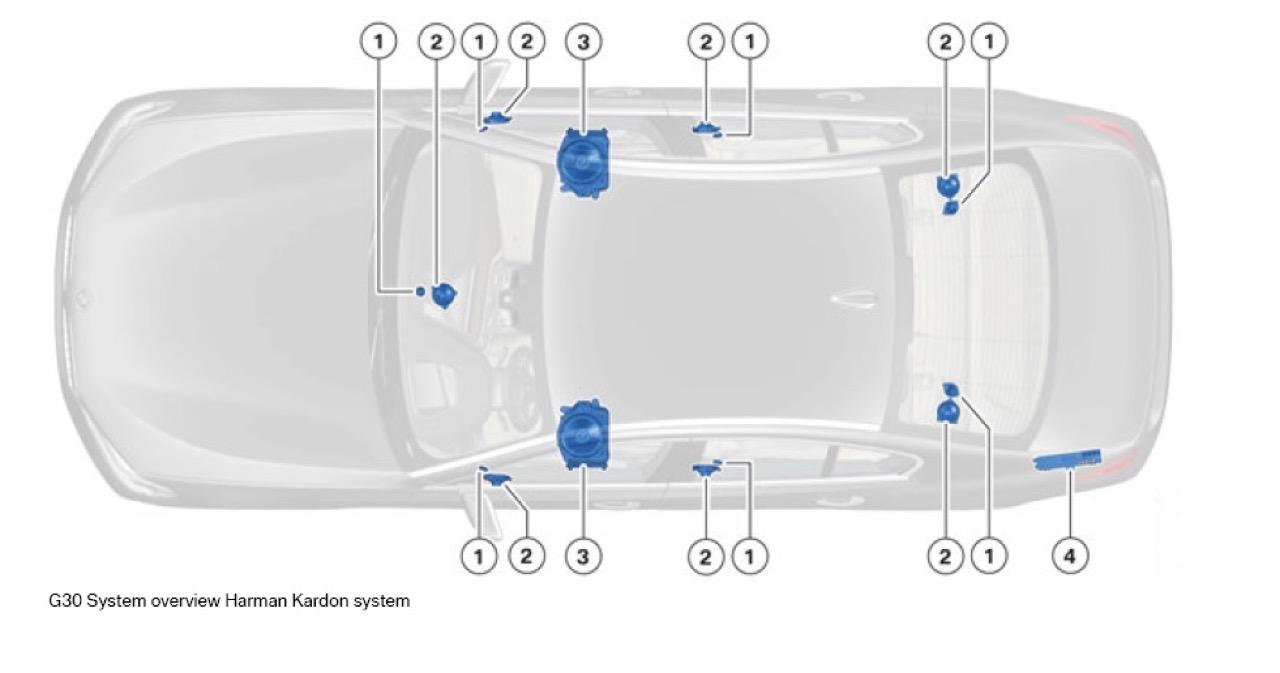 ออปชั่นมาตรฐานของ New Series-5 G30 530e M-Sport ติดตั้งลำโพงคุณภาพสูง 16 ตำแหน่ง ด้วยระบบ premium sound system ของ Harman Kardon เต็มชุด ซึ่งจัดลำโพง 16 ตัวพร้อมแอมป์ 10 ช่องสัญญาณ รวมถึงทวิตเตอร์ กำลังขับของชุดเครื่องเสียงจัดเต็มถึง 600 วัตต์ อัดเทคโนโลยีและวิทยาการใหม่ๆ ของอุปกรณ์เล่นเพลงและภาพ มาเต็มคันรถคล้าย New Series-7 ด้วยไอคอนที่สวยงามน่าใช้ ฟังก์ชัน Apple CarPlay เพื่อเสียบต่อเชื่อมกับโทรศัพท์ iPhone ผ่านปุ่มควบคุม iDRIVE โดยไม่ต้องใช้สายต่อเชื่อมรวมถึงระบบชาร์จโทรศัพท์แบบไร้สายซึ่งเป็นระบบที่ดีที่สุดในปัจจุบัน
