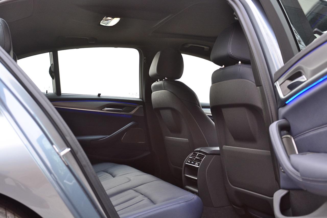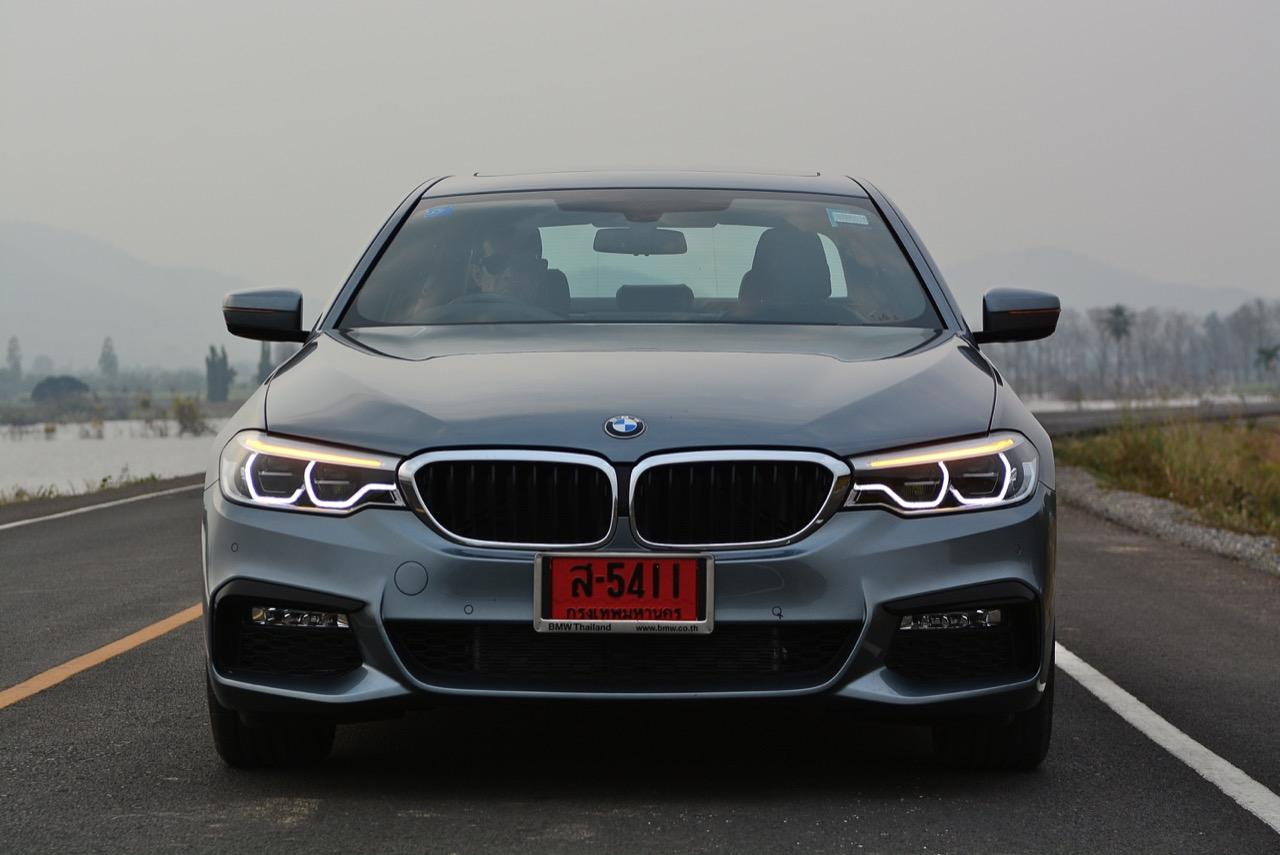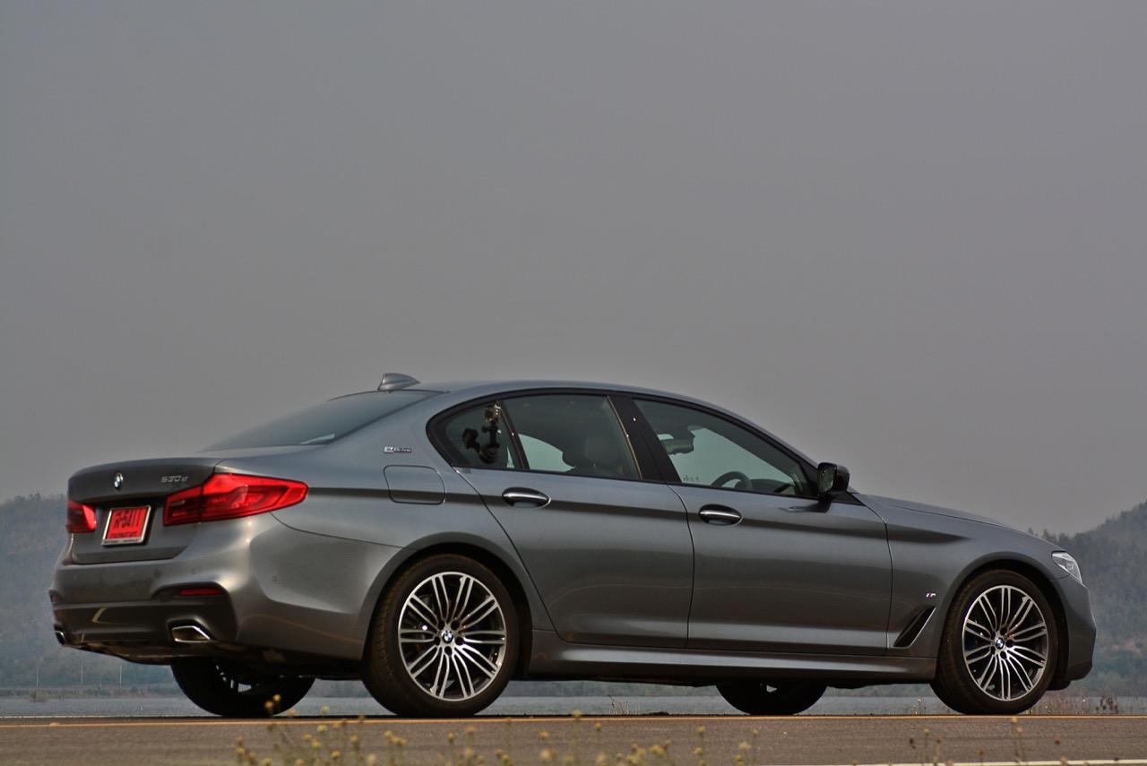 BMW 530e พร้อมอุปกรณ์ตกแต่งภายนอกภายในแบบ M-Sport ไล่เรียงจากสปอยเลอร์หน้า M ล้ออัลลอยขอบ 19 นิ้วของ M กาบบันได M สปอยเลอร์หลัง M แก้มข้างแปะตราสัญลักษณ์ M ชิ้นเล็กๆ เพื่อบ่งบอกว่ามันไม่ใช่ M5 แท้ๆ แค่ Series-5 ที่ประดับประดาชุดแต่งเสริมความหล่อ ไฟหน้าแบบ LED ที่ปรับทิศทางตามการหมุนของพวงมาลัยอันถือเป็นเอกลักษณ์ที่ได้รับการออกแบบมาสำหรับ Series-5 รุ่นใหม่ ไฟหน้าแบบ Adaptive LED มีระบบปรับการกระจายแสงให้เหมาะสมกับเส้นทางที่ขับขี่ ไม่ว่าจะเป็นการเพิ่มแสงสว่างในมุมอับในขณะเข้าโค้ง ระบบปรับการทำงานไฟสูงอัตโนมัติในระยะไกลสุด 500 เมตร BMW New Series-5 530e มีขนาดใหญ่ขึ้นกว่า Serirs-5 f10 รุ่นก่อนอย่างชัดเจน ฝากระโปรงหลังถูกออกแบบให้มีขนาดที่ใหญ่ขึ้น ความจุของพื้นที่เก็บสัมภาระใต้ฝาท้ายขนาด 530 ลิตร ขอบล่างของกระโปรงปรับให้มีระดับต่ำลงกว่าในรุ่นก่อน ทำให้จัดเก็บสัมภาระขนาดใหญ่ได้ง่าย ภายในช่องเก็บของที่ทั้งเปิดฝากระโปรงได้กว้างขึ้น และมีขนาดที่กว้างกว่าเดิม ฝากระโปรงหลังที่ทำจากอะลูมิเนียมทั้งบาน ลดน้ำหนักลงอีก 4.2 กิโลกรัม แถมยังทำงานเปิด-ปิดด้วยไฟฟ้า ช่วยเพิ่มความสบายได้พอสมควร