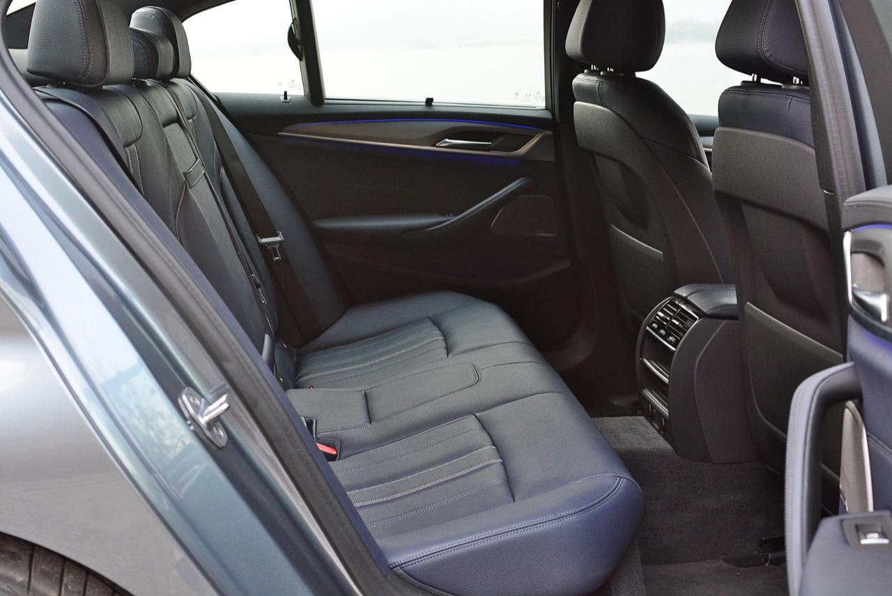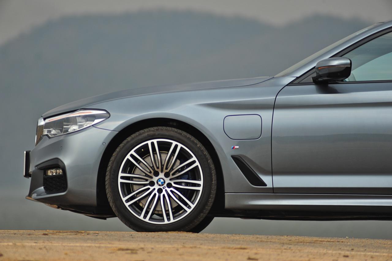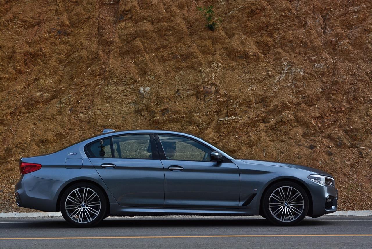 BMW 530e พร้อมอุปกรณ์ตกแต่งภายนอกภายในแบบ M-Sport ไล่เรียงจากสปอยเลอร์หน้า M ล้ออัลลอยขอบ 19 นิ้วของ M กาบบันได M สปอยเลอร์หลัง M แก้มข้างแปะตราสัญลักษณ์ M ชิ้นเล็กๆ เพื่อบ่งบอกว่ามันไม่ใช่ M5 แท้ๆ แค่ Series-5 ที่ประดับประดาชุดแต่งเสริมความหล่อ ไฟหน้าแบบ LED ที่ปรับทิศทางตามการหมุนของพวงมาลัยอันถือเป็นเอกลักษณ์ที่ได้รับการออกแบบมาสำหรับ Series-5 รุ่นใหม่ ไฟหน้าแบบ Adaptive LED มีระบบปรับการกระจายแสงให้เหมาะสมกับเส้นทางที่ขับขี่ ไม่ว่าจะเป็นการเพิ่มแสงสว่างในมุมอับในขณะเข้าโค้ง ระบบปรับการทำงานไฟสูงอัตโนมัติในระยะไกลสุด 500 เมตร BMW New Series-5 530e มีขนาดใหญ่ขึ้นกว่า Serirs-5 f10 รุ่นก่อนอย่างชัดเจน ฝากระโปรงหลังถูกออกแบบให้มีขนาดที่ใหญ่ขึ้น ความจุของพื้นที่เก็บสัมภาระใต้ฝาท้ายขนาด 530 ลิตร ขอบล่างของกระโปรงปรับให้มีระดับต่ำลงกว่าในรุ่นก่อน ทำให้จัดเก็บสัมภาระขนาดใหญ่ได้ง่าย ภายในช่องเก็บของที่ทั้งเปิดฝากระโปรงได้กว้างขึ้น และมีขนาดที่กว้างกว่าเดิม ฝากระโปรงหลังที่ทำจากอะลูมิเนียมทั้งบาน ลดน้ำหนักลงอีก 4.2 กิโลกรัม แถมยังทำงานเปิด-ปิดด้วยไฟฟ้า ช่วยเพิ่มความสบายได้พอสมควร