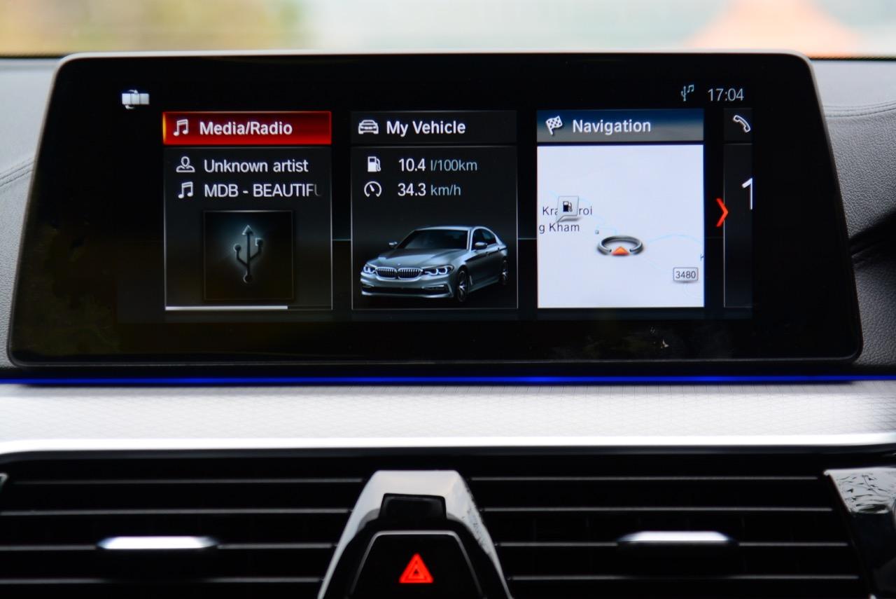 ระดับความคมชัดของหน้าจอมอนิเตอร์กลางระบบสัมผัสใน New Series-5 530e iPerformance M-SPORT จะสูงกว่า Series-5 F10 รุ่นที่แล้ว โดยให้รายละเอียดของภาพกราฟิกที่คมชัด ชุดควบคุม iDRIVE เวอร์ชั่นใหม่ล่าสุดมาพร้อมหน้าจอมอนิเตอร์ขนาดใหญ่ถึง 10.25 นิ้ว ช่วยให้เจ้าของรถสั่งการผ่านปุ่มควบคุม iDRIVE ได้ง่ายและสะดวกกว่าปุ่มแบบคลิก รวมถึงรูปแบบของการสั่งงานในระบบสาระบันเทิงที่คล้ายการสั่งงานด้วยโทรศัพท์สมาร์ทโฟน พร้อมฟังก์ชัน Message Centre ภายในระบบ iDRIVE สำหรับการพิมพ์ข้อความ ตอบอีเมลหรือข้อมูลอื่นๆ