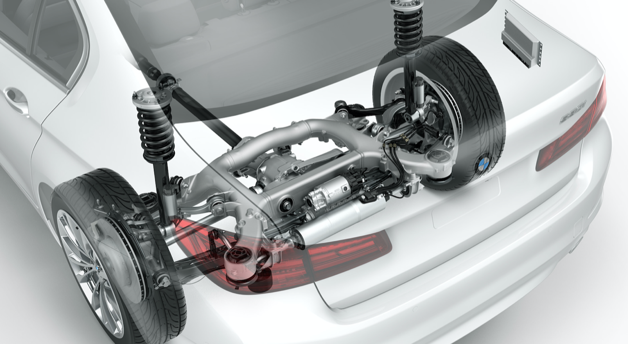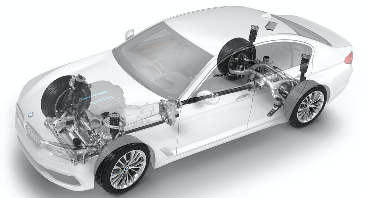 ระบบรองรับหรือช่วงล่างของ BMW 530e ด้านหน้าแบบดับเบิ้ลวิชโบน สปริง โช้คอัพและกันโคลง ส่วนด้านหลังเป็นแบบมัลติลิงก์ สปริง โช้คอัพและกันโคลง ปีกนกและแขนยึดทำจากอะลูมินั่มอัลลอยทั้งหน้าและหลัง ทำให้น้ำหนักใต้สปริงลดลง ส่งผลให้ช่วงล่างทำงานเต็มประสิทธิภาพ โดยมีการปรับการทำงานของโช้คอัพให้ส่งถ่ายความนิ่มนวลได้มากกว่า Series-5 F10