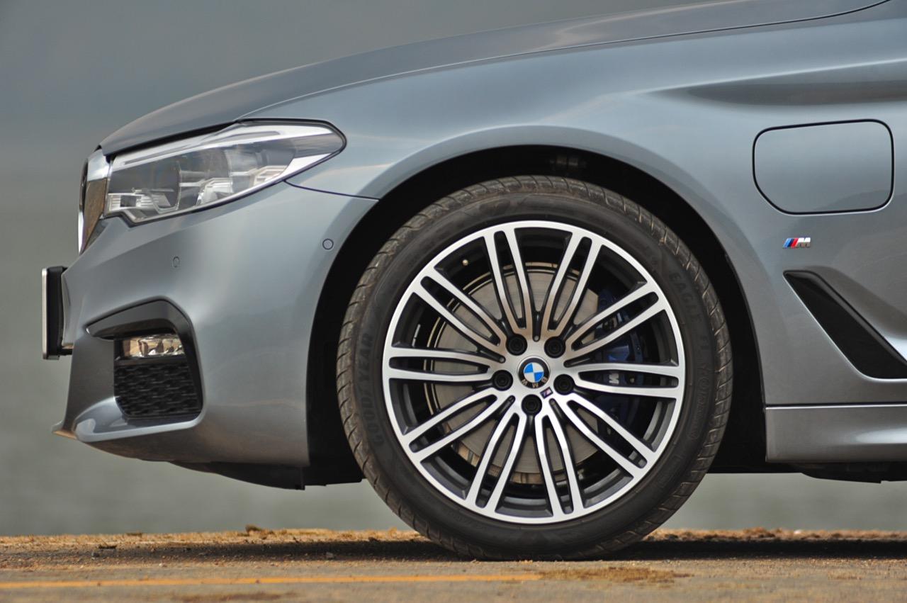 ล้อและยางของ 530e ยัดอัลลอยลาย M รุ่นใหม่ ขนาด 19 นิ้ว พร้อมยางสปอร์ต ล้อหน้าไซส์ 245/40 R19 ล้อหลังซึ่งเป็นล้อขับเคลื่อนยัดยางใหญ่ขึ้นมาอีกนิดที่ไซส์ 275/35 R19 เป็นยางยี่ห้อ Goodyear รุ่น Eagle f1 ที่มีประสิทธิภาพการใช้งานดีพอสมควร เหมาะกับผิวถนนที่มีความหลากหลายในประเทศไทย