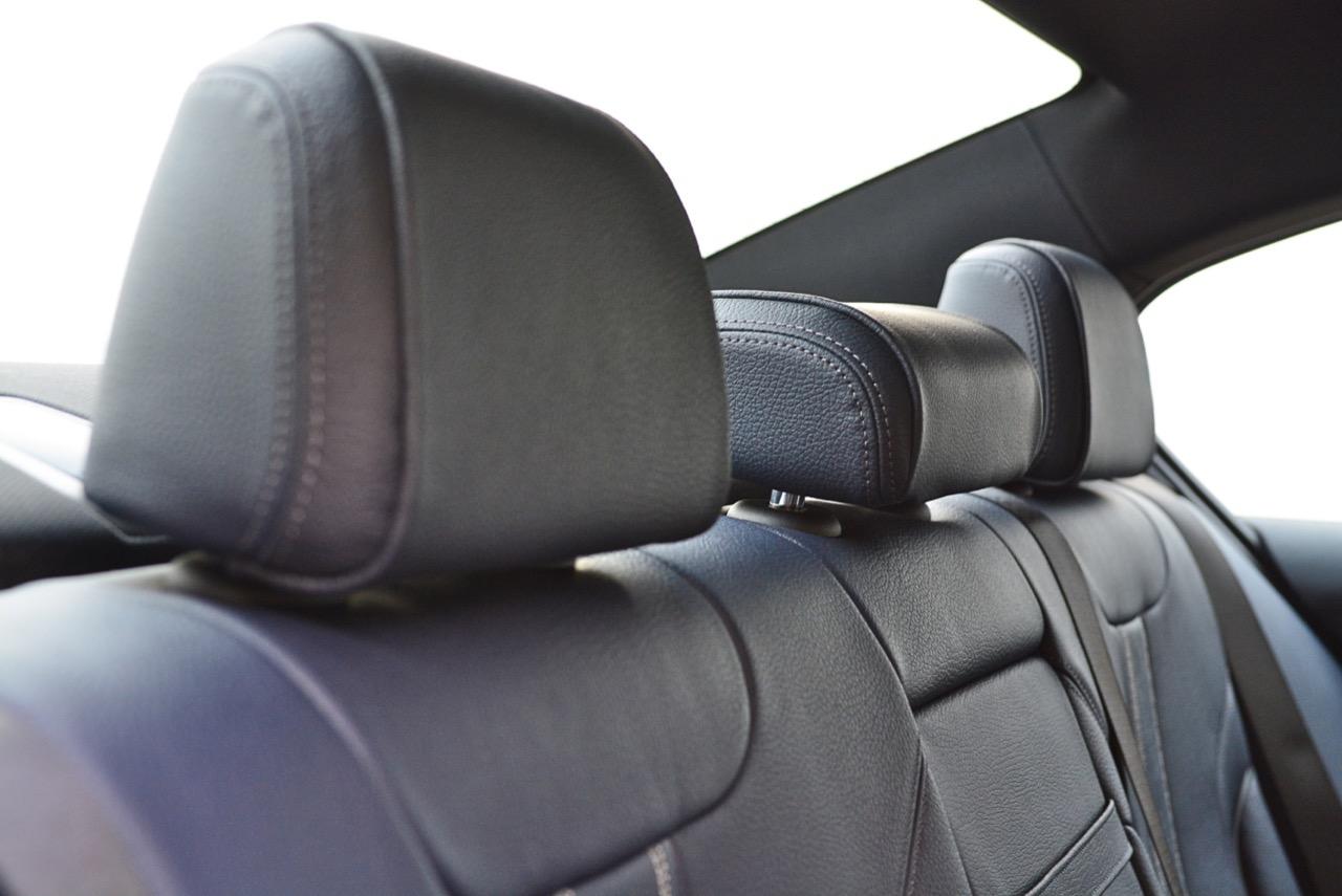 เบาะหนังแท้สีน้ำเงินเข้ม เบาะคู่หน้าปรับไฟฟ้าพร้อมหน่วยความจำ 3 ระดับ เป็นเบาะแบบสปอร์ตที่มีการออกแบบใหม่เพื่อทำให้นั่งได้สบายสามารถขับได้ทั้งวัน เบาะหลังแบบ 3 ที่นั่ง แต่นั่งจริงๆ แค่ 2 ก็น่าจะดีกว่านั่งกันถึง 3 คนซึ่งทำให้รู้สึกคับแคบเกินไป เบาะหลังออกแบบให้มีพนักเท้าแขนบริเวณกึ่งกลางของเบาะ รวมถึงช่องแอร์ด้านหลังที่สามารถปรับระดับความแรงและทิศทางของลมเพื่อเพิ่มความเย็นฉ่ำ