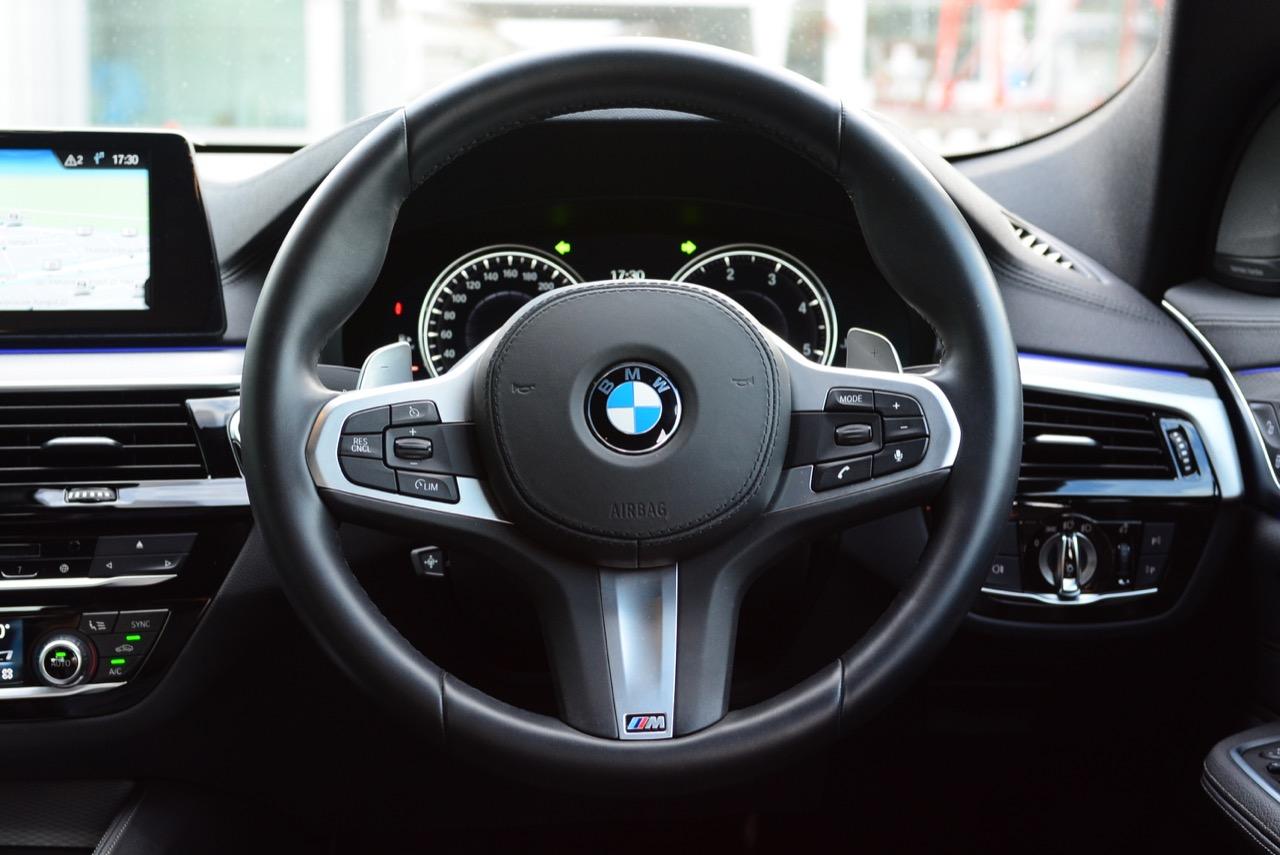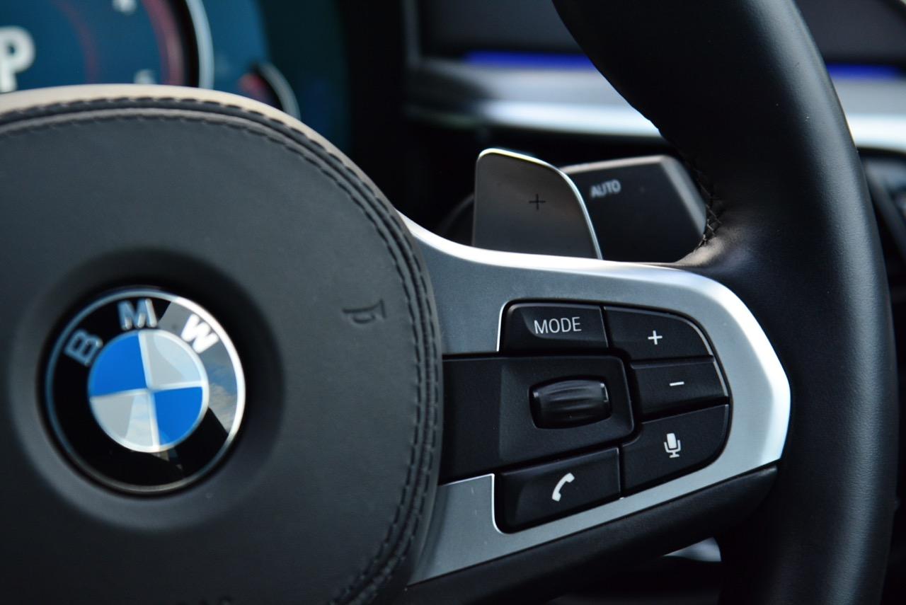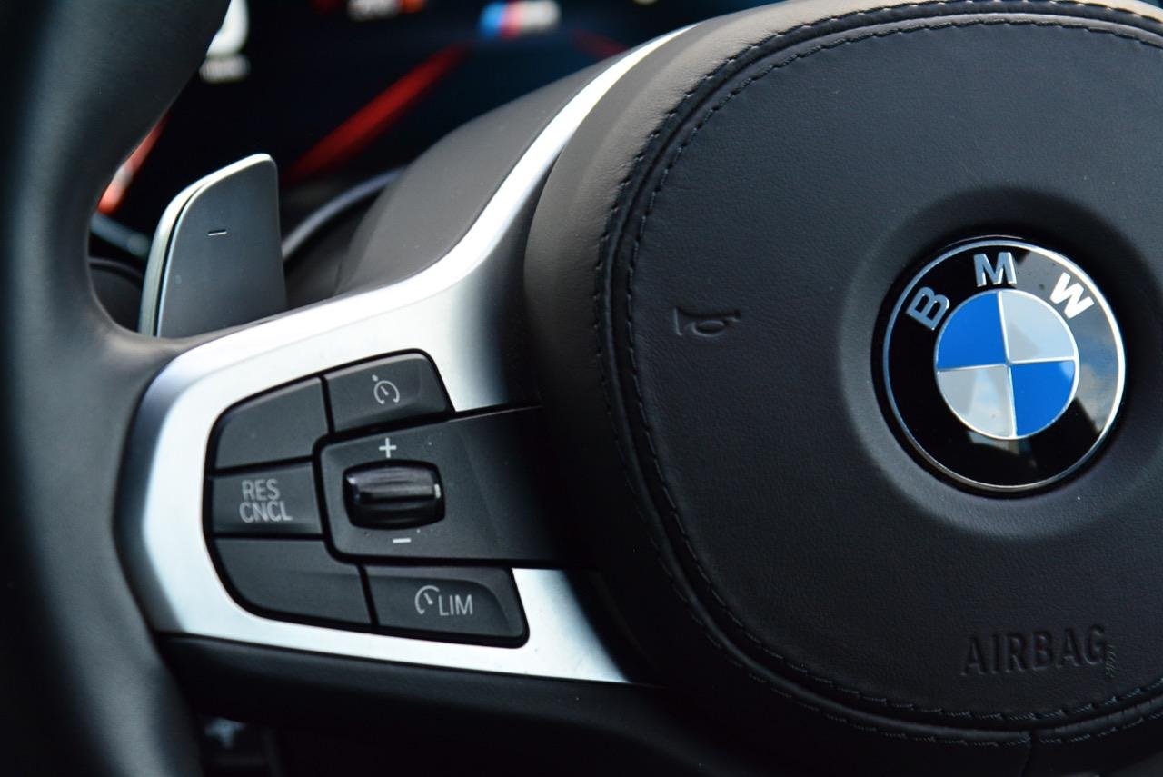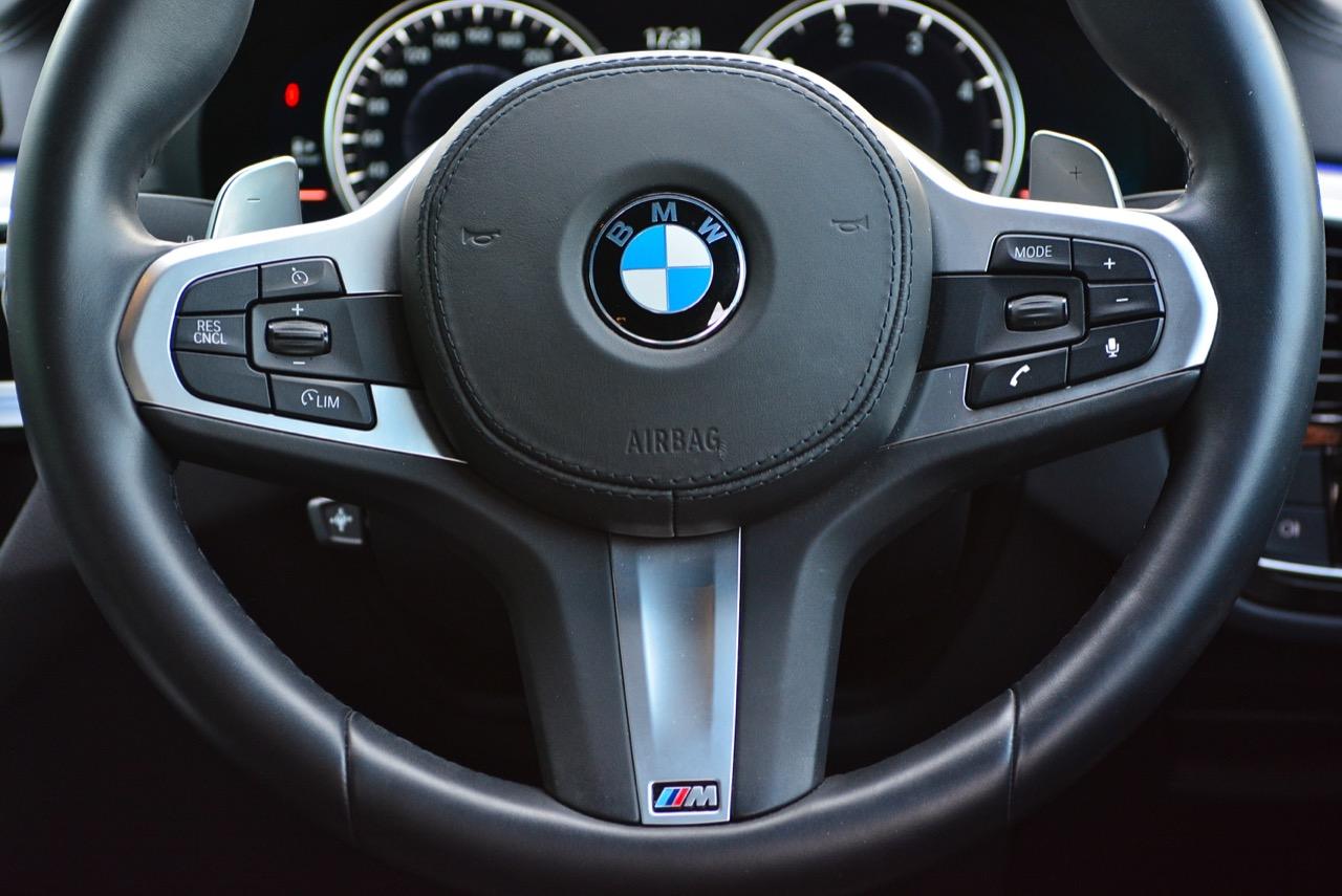 พวงมาลัย M-Sport แบบ 3 ก้าน พร้อมแป้นเปลี่ยนเกียร์ Paddle Shift ทำจากอัลลอยขนาดใหญ่ขึ้น พวงมาลัยปรับไฟฟ้า ก้านวงทั้งสองฝั่งติดตั้งสวิตช์มัลติฟังก์ชันใช้สั่งงานระบบต่างๆ เช่น ระบบเครื่องเสียง การเชื่อมต่อโทรศัพท์ไร้สาย ปุ่มควบคุมระบบปรับตั้งความเร็วอัตโนมัติ Adaptive Cruise Control ปุ่มสั่งงานด้วยเสียง พวงมาลัยของ M-Sport วงนี้ยังหุ้มฟองน้ำอย่างหนาทำให้รอบวงอวบอ้วนจับได้อย่างถนัดมืออีกด้วย