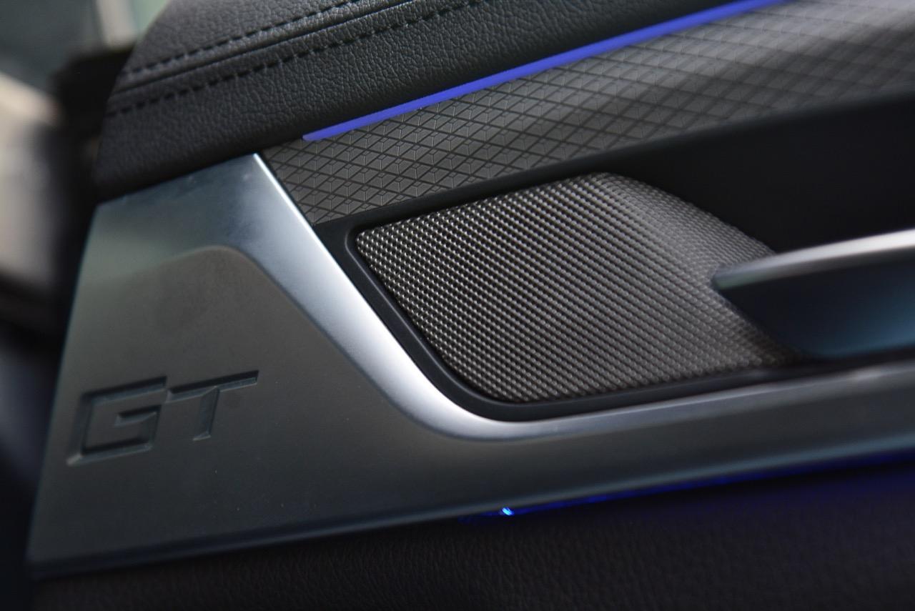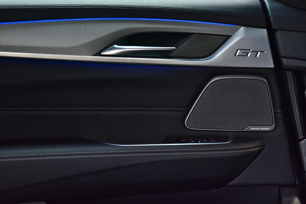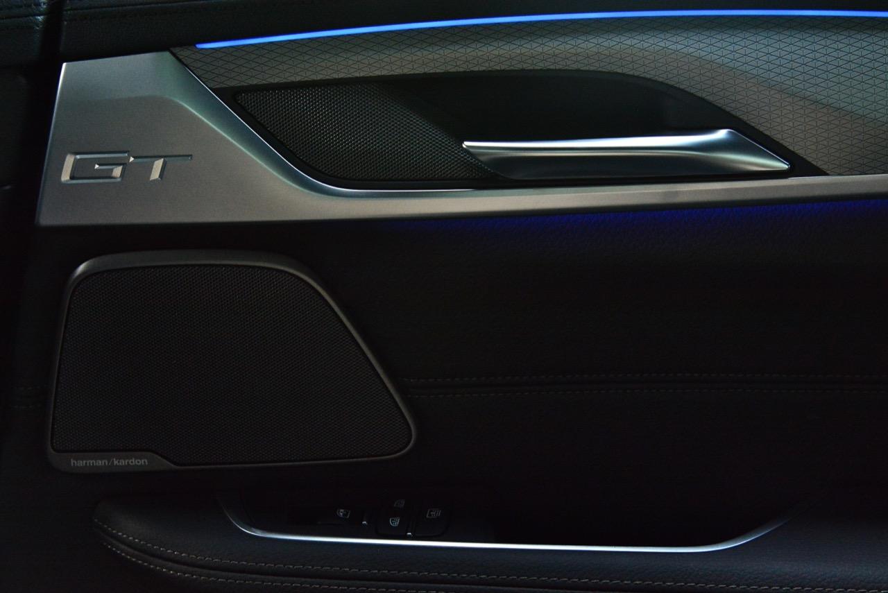 แผงประตูก็ยังเต็มไปด้วยรายละเอียดของชิ้นงานที่ใช้ตกแต่ง เช่น กรวยลำโพงของ harman kardon แถบอะลูมิเนียมคาดกลางแผงประตูประดับประดาด้วยสัญลักษณ์ GT หลอดไฟ LED ในระบบไฟภายใน BMW ambient lighting ปรับตั้งเฉดสีได้ตามใจชอบ