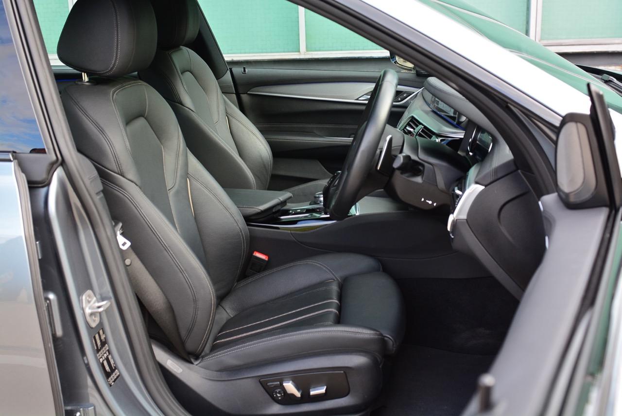 ห้องโดยสารกว้างขวางนั่งคนเดียวจะรู้สึกเหงา เบาะหนังสีดำเย็บเดินตะเข็บด้วยด้ายสีน้ำตาล แดชบอร์ดมีขนาดที่โตกว่า Series-5 ตกแต่งด้วยการหุ้มหนังอย่างประณีตบรรจง แดชบอร์ดคาดกลางด้วยงานอัลลอยสีเงิน กึ่งกลางวางจอภาพมอนิเตอร์ขนาดใหญ่ 10.2 นิ้ว ช่องแอร์สีดำแบบเปียโนแบล็ก โดยภาพรวม แดชบอร์ดของ 6-Series GT มีรูปทรงที่คล้ายกับ 5-Series G30 แต่มีขนาดที่ใหญ่กว่าเล็กน้อย รวมถึงการตกแต่งด้วยวัสดุหรูหราราคาแพงเพื่อให้สมกับการทำตัวเป็นยานพาหนะของผู้บริหารระดับสูง เบาะคู่หน้าปรับไฟฟ้า เบาะหลังมีพื้นที่วางขาและพื้นที่เหนือศีรษะมากกว่า Series-7 ทำให้รู้สึกโปร่งโล่งสบายตัว