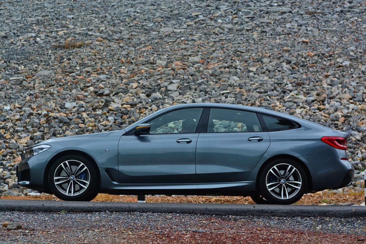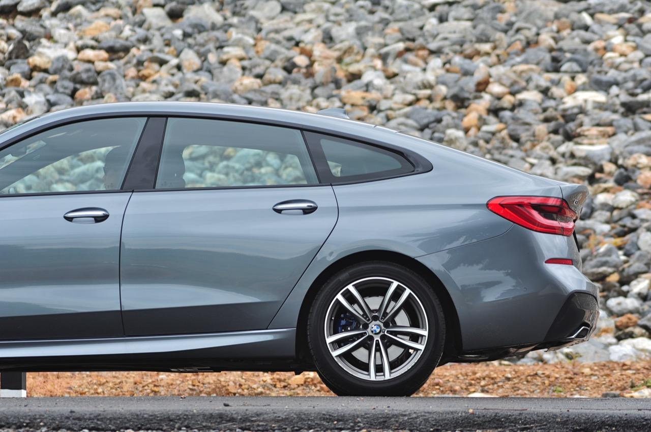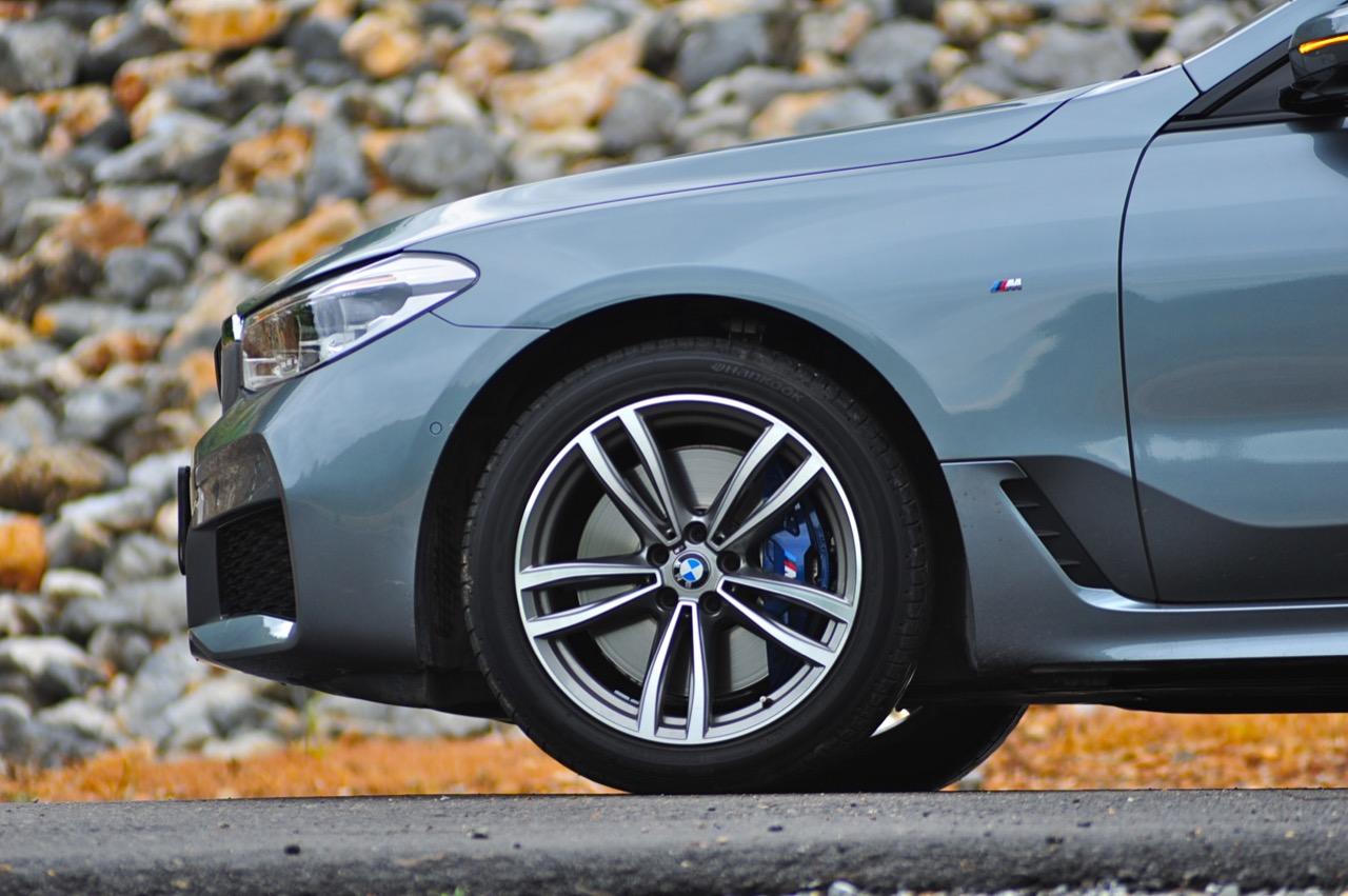 การออกแบบรูปลักษณ์ด้านหน้า เริ่มจากไฟหน้าแบบใหม่ในช่องทรงแคบพร้อมหลอดไฟ LED ที่มีสไตล์เป็นเอกลักษณ์ สอดรับกับไฟหน้า LED แบบ Adaptive ทำให้ด้านหน้าของ 6-Series GT ดูกว้างและทรงพลัง กระจังหน้าไตคู่โครเมียมขนาดใหญ่พร้อมระบบเปิด-ปิดกระจังหน้าเพื่อลดแรงเสียดทานของกระแสลม สปอยเลอร์หน้า M-Sport พร้อมช่องรับอากาศขนาดใหญ่ ฝากระโปรงหน้าอัลลอยน้ำหนักเบา ด้านข้างของตัวถังวางองศาความลาดเอียงเสาหน้าที่สอดรับกับผืนหลังคาโดยค่อยๆ ลดระดับลงไปยังส่วนท้าย ประตูทั้งสี่บานขนาดใหญ่ช่วยทำให้การเข้า-ออกจากห้องโดยสารสะดวกสบายมากยิ่งขึ้น เสาท้ายไหลลื่นและลาดเอียงตามสไตล์ของรถแฮตช์แบ็ค เสริมความหล่อด้วยผืนกระจกหลังคาแบบพาโนรามิก เสาอากาศทรงครีบปลาฉลาม ล้ออัลลอยลาย M ขอบ 19 นิ้ว ล้อหน้าขนาด 8.5 J × 19 นิ้ว ส่วนล้อหลังซึ่งเป็นล้อขับเคลื่อนมีขนาดที่โตขึ้นบนตัวเลข 9.5 J × 19 นิ้ว ยางหน้า 245/45 R19 ยางหลัง 275/40 R19 ยัดยางเกาหลียี่ห้อ Hankook รุ่น Ventus V2 S1 EVO ระบบเบรกจัดของดีจาก BMW M Performance Parts คาร์ลิปเปอร์เบรกหน้าแบบ 4 พอต ส่วนเบรกหลังแบบพอตเดี่ยวตัวเดียวโดดๆ ไฟท้ายดีไซน์รูปตัว L เน้นย้ำโครงร่างขององค์ประกอบไฟ LED ในรูปแบบสามมิติ ทำให้ท้ายรถดูมีไดนามิก ฝาท้ายไฟฟ้าเปิดออกด้วยมุมสูงเพื่อความสะดวกในการขนสัมภาระ