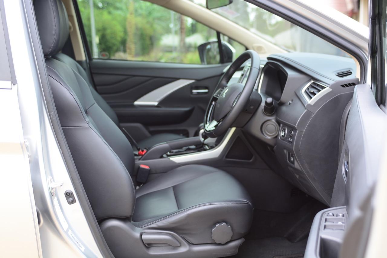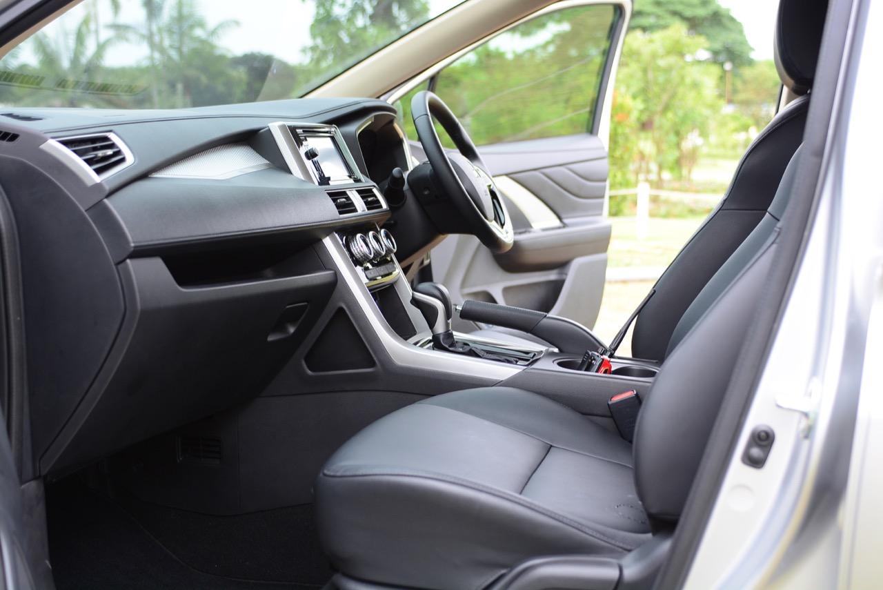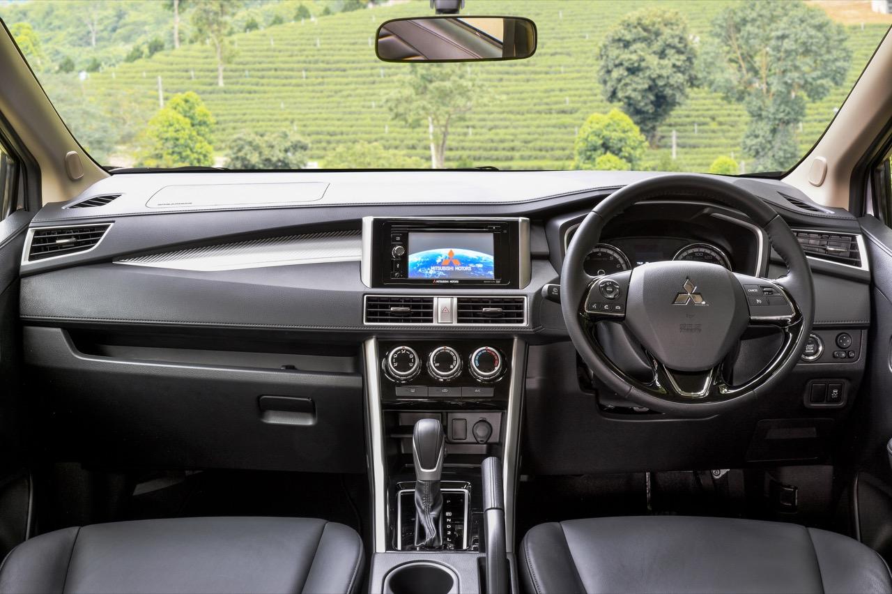 ภายในตกแต่งด้วยเบาะผ้าในรุ่น GLS-LTD ส่วนรุ่นสูงสุด GT ใช้เบาะหนังสีดำ เบาะสามารถพับได้อย่างหลากหลายเพื่อเพิ่มพื้นที่เก็บสัมภาระ เบาะแถวกลางสามารถพับเพื่อเปิดพื้นที่เข้า-ออกจากห้องโดยสารให้กับเบาะแถวที่สามซึ่งเป็นจุดเด่นสำหรับครอบครัวขนาดกลาง เบาะแถวที่สองออกแบบมาให้นั่งได้สามคน แต่การนั่งโดยสารแบบสองคนจะสบายตัวกว่ามาก สำหรับเบาะแถวที่สามเหมาะสำหรับเด็กตัวเล็กๆ มากกว่าผู้ใหญ่ตัวสูง เนื่องจากพื้นที่วางเท้ามีไม่มาก เบาะแถวที่สามยังพับราบกับพื้นได้เพื่อเปิดพื้นที่เก็บสัมภาระให้กว้างมากยิ่งขึ้น Mitsubishi Xpander เน้นความอเนกประสงค์ของภายในด้วยการเพิ่มกล่องเก็บของด้านหน้าและบริเวณแผงข้างประตู จุดชาร์จไฟ 3 ตำแหน่งทั้งหน้าและหลัง กล่องเก็บรองเท้าบริเวณใต้ที่เก็บสัมภาระฝาท้าย ช่องแอร์บนหลังคาพร้อมปุ่มปรับระดับความแรงของพัดลมแอร์สำหรับเบาะแถวที่สองและสาม กระจกบังลมด้านหน้ามีความหนากว่าปกติเพื่อป้องกันเสียงแปลกปลอมจากภายนอก กระจกบานหน้าหนา 4 มิลลิเมตร หลัง 3.5 มิลลิเมตร