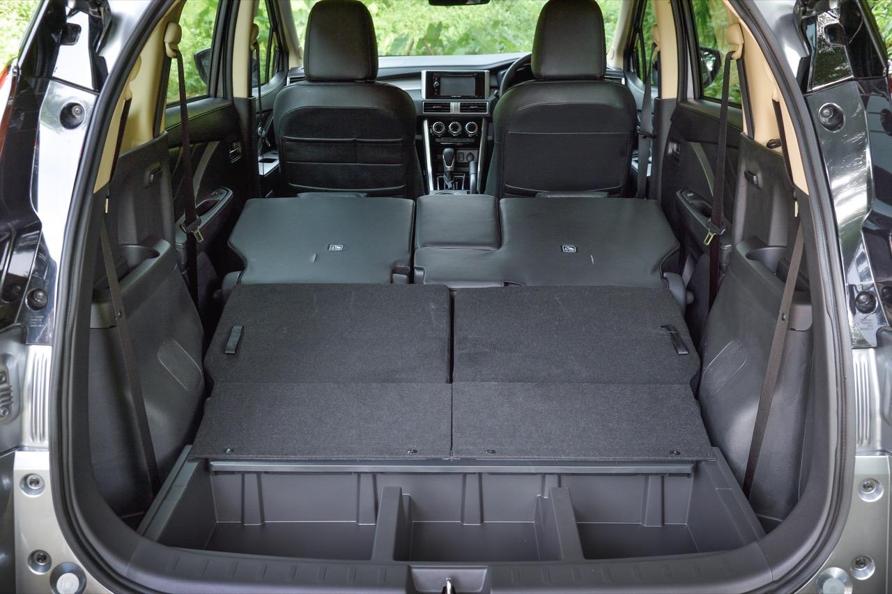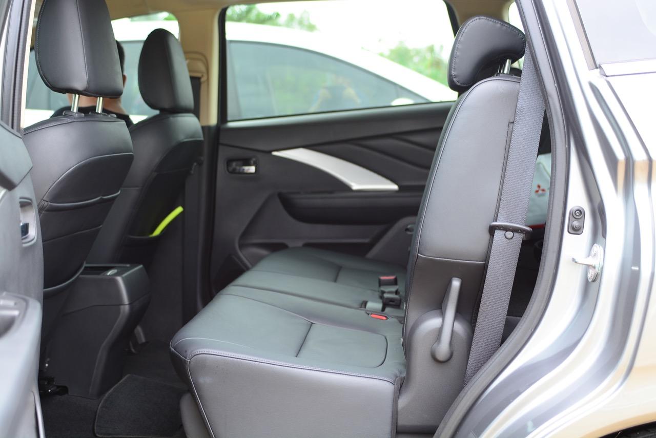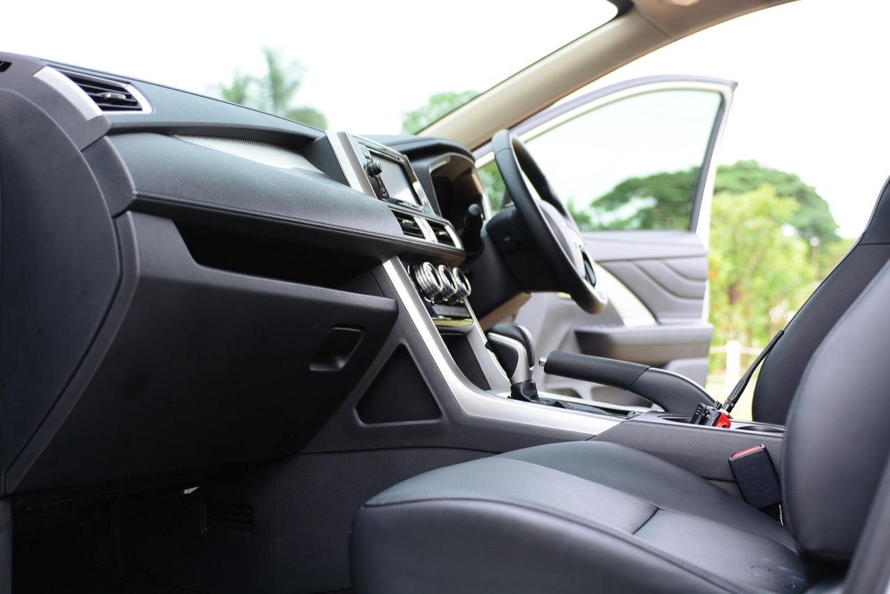 ภายในตกแต่งด้วยเบาะผ้าในรุ่น GLS-LTD ส่วนรุ่นสูงสุด GT ใช้เบาะหนังสีดำ เบาะสามารถพับได้อย่างหลากหลายเพื่อเพิ่มพื้นที่เก็บสัมภาระ เบาะแถวกลางสามารถพับเพื่อเปิดพื้นที่เข้า-ออกจากห้องโดยสารให้กับเบาะแถวที่สามซึ่งเป็นจุดเด่นสำหรับครอบครัวขนาดกลาง เบาะแถวที่สองออกแบบมาให้นั่งได้สามคน แต่การนั่งโดยสารแบบสองคนจะสบายตัวกว่ามาก สำหรับเบาะแถวที่สามเหมาะสำหรับเด็กตัวเล็กๆ มากกว่าผู้ใหญ่ตัวสูง เนื่องจากพื้นที่วางเท้ามีไม่มาก เบาะแถวที่สามยังพับราบกับพื้นได้เพื่อเปิดพื้นที่เก็บสัมภาระให้กว้างมากยิ่งขึ้น Mitsubishi Xpander เน้นความอเนกประสงค์ของภายในด้วยการเพิ่มกล่องเก็บของด้านหน้าและบริเวณแผงข้างประตู จุดชาร์จไฟ 3 ตำแหน่งทั้งหน้าและหลัง กล่องเก็บรองเท้าบริเวณใต้ที่เก็บสัมภาระฝาท้าย ช่องแอร์บนหลังคาพร้อมปุ่มปรับระดับความแรงของพัดลมแอร์สำหรับเบาะแถวที่สองและสาม กระจกบังลมด้านหน้ามีความหนากว่าปกติเพื่อป้องกันเสียงแปลกปลอมจากภายนอก กระจกบานหน้าหนา 4 มิลลิเมตร หลัง 3.5 มิลลิเมตร