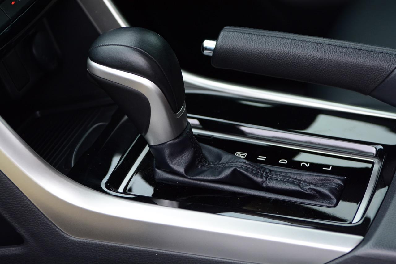 เกียร์อัตโนมัติ 4 สปีดใช้พลาสติกสีดำแบบเปียโนแบล็ก คันเกียร์และคันเบรกมือหุ้มหนัง ช่องวางแก้วน้ำพร้อมที่เก็บของบริเวณคอนโซลกลาง Mitsubishi Xpander เป็นรถอเนกประสงค์ไซส์เล็กอีกรุ่นที่มีช่องเก็บของและที่วางแก้วทั่วทั้งห้องโดยสารเพื่อคอยอำนวยความสะดวกยามเดินทางไกล