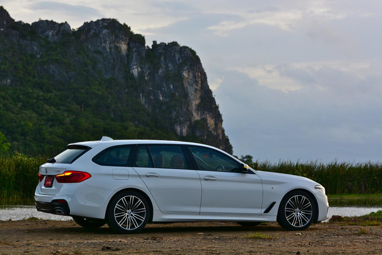 การอาศัยอยู่ในรถแบบสเตชั่นแวกอนของ BMW Group ยนตรกรรม Series-5 G30 ที่เป็นรถ 4 ประตูรุ่นมาตรฐาน จนมาถึงโมเดล G31 รุ่น 5 ประตูที่ไม่ค่อยได้พบเห็นกันบ่อยนักบนถนนในเมืองไทย จากค่าตัวที่แพงระยับมากกว่ารุ่นปกติ ค่านิยมของคนไทยที่ชอบรถซีดาน 4 ประตู มากกว่ารถสเตชั่นแวกอน 5 ประตู คุณไม่ต้องค้นหาตัวเองให้มากเรื่อง หากมีเงินและมีครอบครัวเล็กๆ จำนวน 4 คน มันคือความพอดีจากการออกแบบ บวกกับงานวิศวกรรมของระบบขับเคลื่อนที่ยอดเยี่ยม แม้รุ่น Touring ตัวจะหนักกว่ารุ่น 4 ประตู แต่สมรรถนะไม่ได้ด้อยลงแต่อย่างใดทั้งสิ้น การบังคับควบคุมเมื่อลองขับขี่ใช้งานในเมืองหลวงที่มีสภาพการจราจรเข้าขั้นสาหัสไม่แตกต่างจาก Series-5 รุ่นปกติ ทัศนวิสัยมุมมองรอบคันอยู่ในเกณฑ์ดี ระบบจอดอัตโนมัติ กล้องมองรอบคันและเซนเซอร์แจ้งเตือนระยะห่างจากวัตถุกีดขวางมีส่วนช่วยให้การขับถอยหลังเพื่อเข้าจอดมีความปลอดภัยพอสมควร ส่วนท้ายที่ยาวกว่าปกติเล็กน้อยไม่เป็นปัญหาสำหรับการจอดหรือการถอยหลัง ไม่นับเรือนร่างที่คล้ายกับ Series-5 รุ่น 4 ประตูหากไม่สังเกตบั้นท้ายที่งดงาม ชุดแต่ง M รอบคันทำให้ 530i Touring ดูหล่อเหลามากยิ่งขึ้นทั้งสปอยเลอร์ M ล้อ M กากบันได M ท่อท้าย M เบาะที่นั่งสบายและพวงมาลัย M ที่โดดเด่น ทำให้ 530i Touring โดนใจนักขับจนมีคนรวยจำนวนน้อยนิดยอมจ่ายเงินแพงขึ้นเพื่อซื้อความแตกต่างดังกล่าว