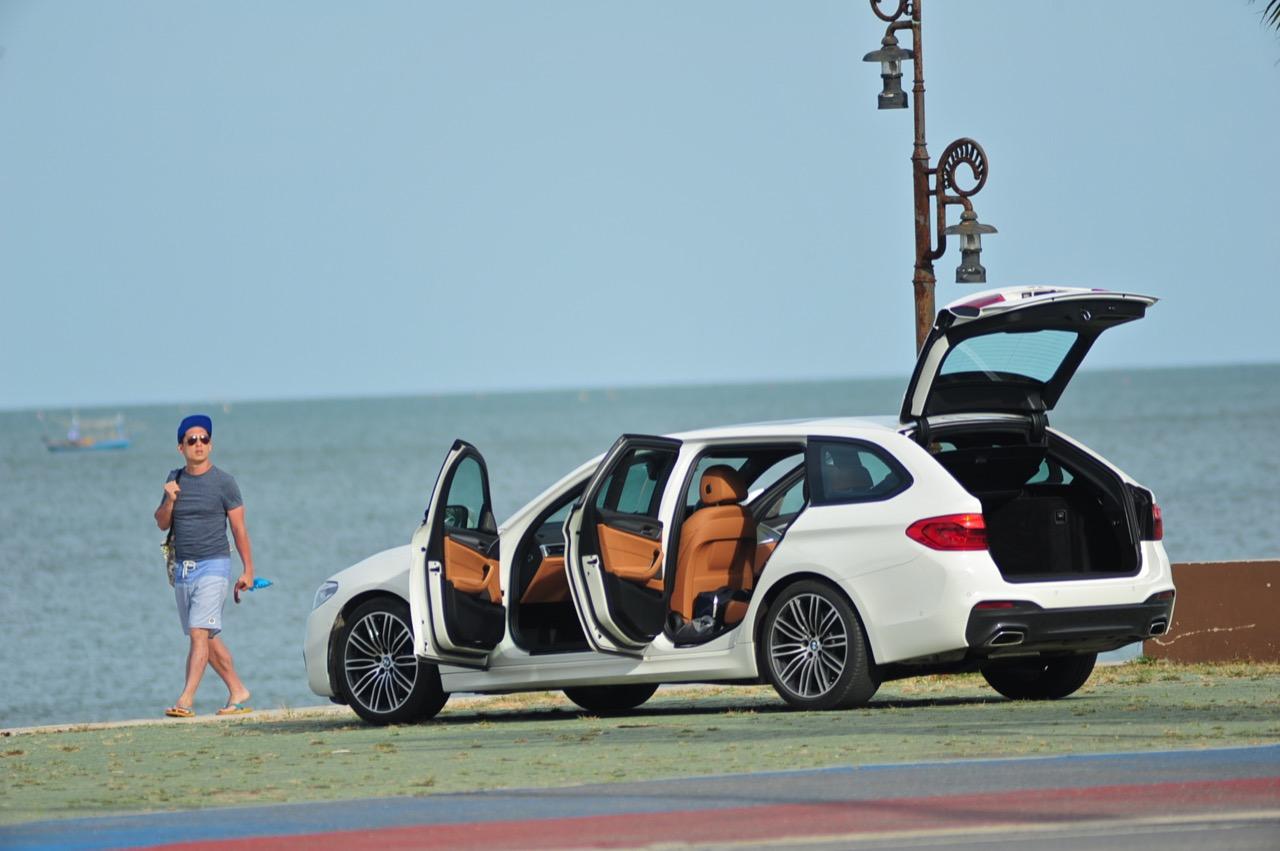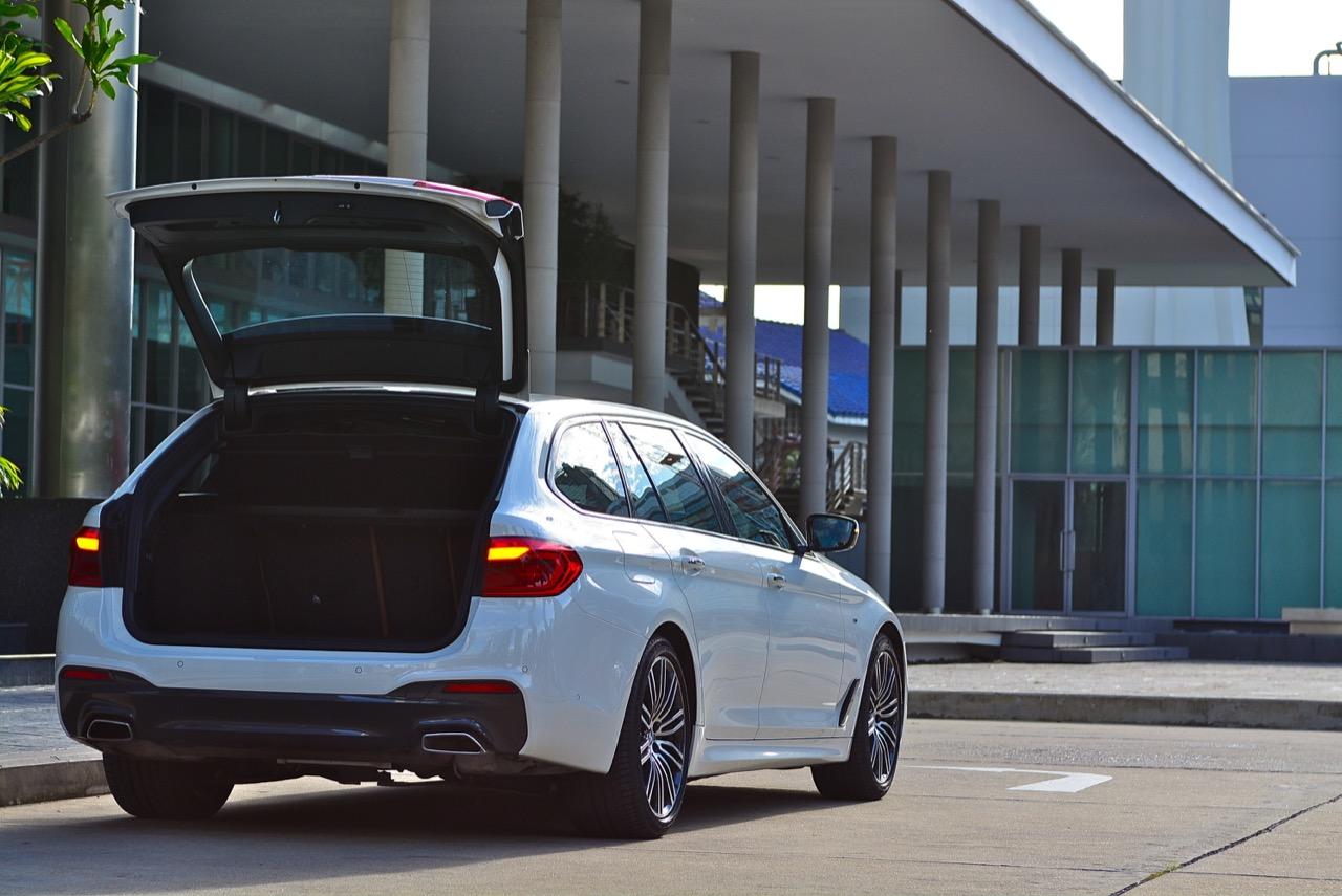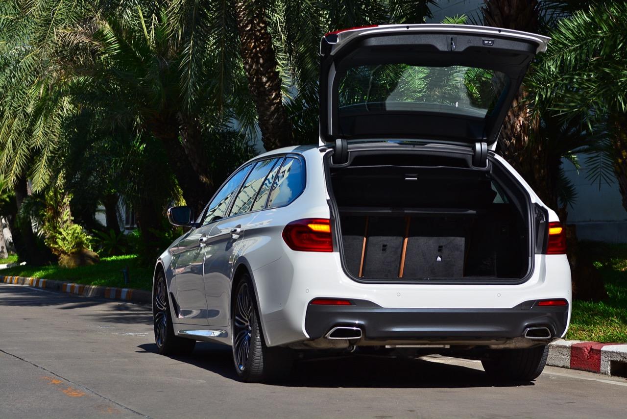 ร่ายยาวรายละเอียดกันพอหอมปากหอมคอก็มาถึงการทดสอบคุณชายตราใบพัด BMW 530i Touring M-SPORT พื้นที่สำหรับการขนสัมภาระและห้องโดยสารที่ตกแต่งอย่างสวยงามบวกกับความกว้างขวางของห้องเก็บสัมภาระส่วนท้ายคือความดีงามของ 530i Touring M-SPORT G31 สีน้ำตาลเคร่งขรึมแบบรถผู้บริหารบนเบาะผู้โดยสารกับชุดแต่ง M ที่ประดับประดาอยู่รอบคัน แสดงออกถึงความแตกต่างจาก Series-5 4 ประตู รหัส G30 รุ่นปกติ แม้จะมีราคาแพงระยับจากภาษีนำเข้าที่ทำให้ค่าตัวของมันทะลุไปถึง 4.5 ล้านบาท แต่ความอเนกประสงค์และประสิทธิภาพของการขับขี่รวมถึงความสวยงามน่าใช้งาน ทำให้ Series-5 โมเดลทัวริ่ง 5 ประตู ถูก BMW Thailand นำเข้ามาทั้งคันเพื่อตอบสนองความต้องการของลูกค้ากลุ่มพรีเมียมที่มีอยู่ไม่มากนักในประเทศไทย คุณประโยชน์ในด้านพื้นที่ภายในและสมรรถนะของระบบขับเคลื่อน ปรุงแต่งรถยนต์ตรวจการณ์รุ่นนี้ให้ได้รับความนิยมอย่างมากในยุโรป ครอบครัวที่ชอบเดินทางท่องเที่ยวจะมีที่เหลือพอเพียงสำหรับกระเป๋าใบโตรวมถึงถุงกอลฟ์และรถจักรยาน แม้กระทั่งการพาสุนัขแสนรักไปเที่ยวก็หมดปัญหาลงอย่างสิ้นเชิง ฝาท้ายที่เปิดออกด้วยระบบไฟฟ้าพร้อมเซนเซอร์ทำให้คุณสบายจนแทบจะกลายเป็นคนขี้เกียจกันเลยทีเดียว
