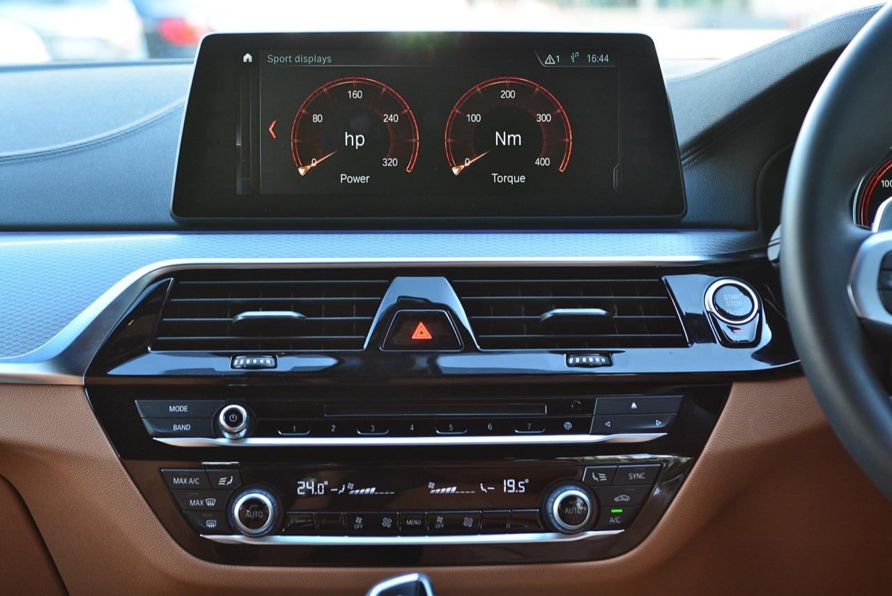 เทคโนโลยีระบบส่งกำลังแบบใหม่ที่มาในรูปแบบของระบบเกียร์อัตโนมัติ 8 สปีด ทำให้ประหยัดเชื้อเพลิงเมื่อวิ่งในเกียร์สุดท้ายหรือเกียร์ 8 ซึ่งเป็นเกียร์โอเวอร์ไดรฟ์ เกียร์ 8 สปีดจากค่าย ZF ลูกนี้เมื่อจับคู่กับเครื่องยนต์ 2 ลิตรเทอร์โบ อัตราทดที่จูนมาลงตัวสามารถสร้างอัตราเร่งได้อย่างมีประสิทธิภาพ เหมาะสำหรับผู้ที่ชื่นชอบการขับขี่ซึ่งมุ่งเน้นสมรรถนะในทุกองค์ประกอบของตัวรถ โดยเฉพาะสำหรับการขับขี่ที่ผู้ขับสามารถเลือกโหมดในการขับขี่เป็นแบบแมนนวล ช่วยรีดสมรรถนะแบบ Sport Touring ในรถยนต์รุ่นนี้ได้ออกมาได้อย่างเต็มประสิทธิภาพ เทคโนโลยีในการคอนโทรลที่ปรับแต่งให้ดียิ่งขึ้น ทำให้ระบบเกียร์อัตโนมัติ 8 สปีด สามารถปรับเปลี่ยนเกียร์ได้อย่างรวดเร็ว และตอบสนองต่ออัตราเร่งได้ดี การเปลี่ยนอัตราทดไหลลื่นไม่มีอาการกระตุกกระชากให้รำคาญหรือเสียอารมณ์ ECU อิเล็กทรอนิกส์ที่คอยควบคุมการเปลี่ยนอัตราทดในระบบเกียร์ ปรับเปลี่ยนเกียร์เพื่อรองรับการขับขี่ทั้งแบบสปอร์ตและการขับขี่ที่ผ่อนคลายในแบบประหยัด เพื่อลดอัตราสิ้นเปลืองน้ำมันเชื้อเพลิง อัตราทดเกียร์ที่มีถึง 8 ตำแหน่ง ยังส่งผลให้ช่วงเวลาระหว่างการเปลี่ยนเกียร์ในแต่ละช่วงสั้นลง เป็นเรื่องที่ดีของ G31 ที่ยกเลิกคันเบรกมือแบบเก่าแล้วเปลี่ยนมาเป็นสวิตช์เบรกมือแบบไฟฟ้าพร้อมระบบ Auto Brake hold มาให้ใช้งานเหมือนกับ New Series-5 ทุกรุ่น ปุ่ม iDRIVE แบบใหม่มีขนาดที่ใหญ่ขึ้น ยังวางตำแหน่งไว้เหมือนเดิมไม่เปลี่ยนแปลง สำหรับแผงควบคุมอุณหภูมิดิจิตอลแบบแยกส่วน ใช้งานได้ง่ายเนื่องจากใช้ทั้งการหมุนเพื่อเร่งหรือลดอุณหภูมิในห้องโดยสาร หรือการกดเพื่อเพิ่มหรือลดระดับการทำงานของพัดลมแอร์ ช่องแอร์สำหรับผู้โดยสารตอนหลังที่ติดมาให้ยังช่วยทำให้ความเย็นกระจายเร็วขึ้น