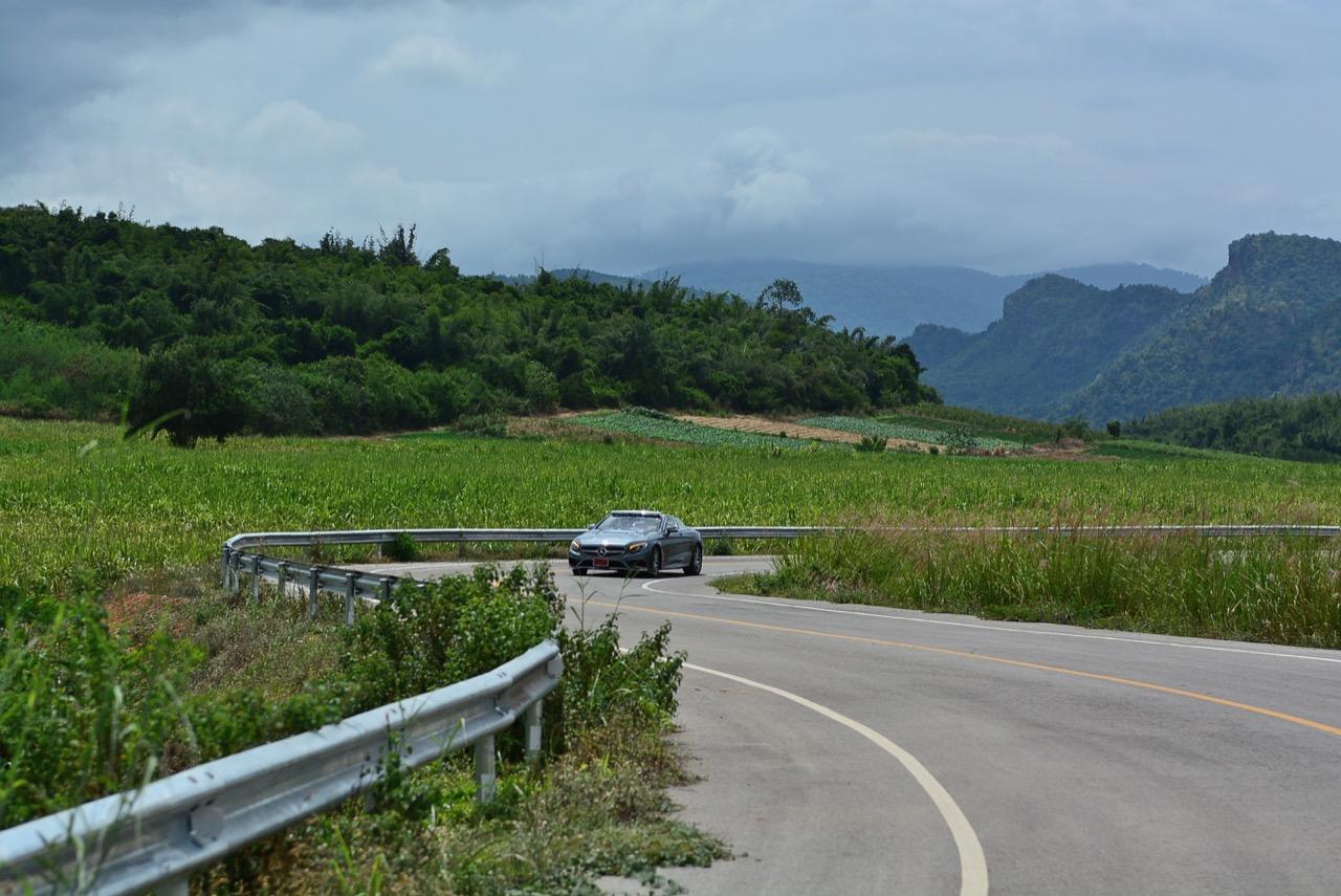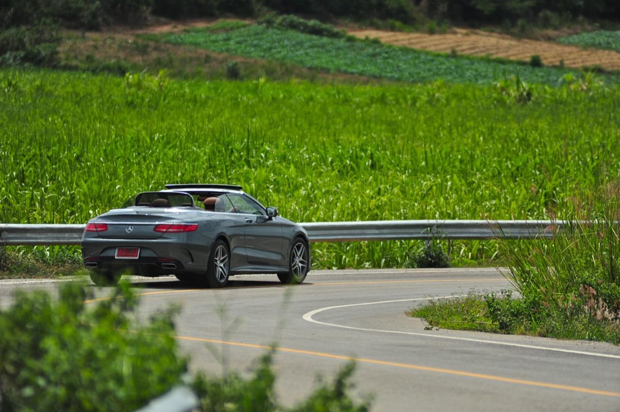 น้ำหนักตัวถัง 2,115 กิโลกรัม บวกช่วงล่าง AIR MATIC ทำให้นั่งสบาย ล้อขอบ 19 นิ้วกับยางแก้มเตี้ยก็ไม่ได้ทำให้รู้สึกสะเทือนหรือกระด้าง แอร์สปริงคือระบบที่คอยรองรับสภาพผิวถนนที่ย่ำแย่ สอดรับกับรูปแบบและราคาค่าตัวของ S500 เพราะคนที่ควักเงิมมากขนาดนี้คงไม่ต้องการรถที่แข็งกระด้างนั่งไม่สบายและมีอาการสั่นสะเทือนทุกครั้งที่ขับผ่านทางขุรขระ เมื่อพับหลังคาเก็บแล้วขับผ่านภูมิประเทศที่สวยงามในยามเย็น คุณจะพบกับความโปร่งโล่งพร้อมกลิ่นต่างๆ ที่ประดังเข้ามาในห้องโดยสาร ขับผ่านหมู่บ้านชายทะเลเล็กๆ ก็จะได้กลิ่นปลาตากแห้ง หรือขับผ่านชายทุ่งหลังฝนตกก็จะได้กลิ่นของไอดิน เป็นรถที่สามารถสร้างความรื่นรมย์ได้ดีและเป็นมิตรกับทุกคน โหมด COMFORT เป็นโหมดกลางๆ ที่เครื่องยนต์และเกียร์ตอบสนองได้ดีแต่ก็ยังไม่ไวเท่ากับโหมด SPORT ที่เปิดทุกสิ่งทุกอย่างเพื่อการขับเร็วอย่างแท้จริง