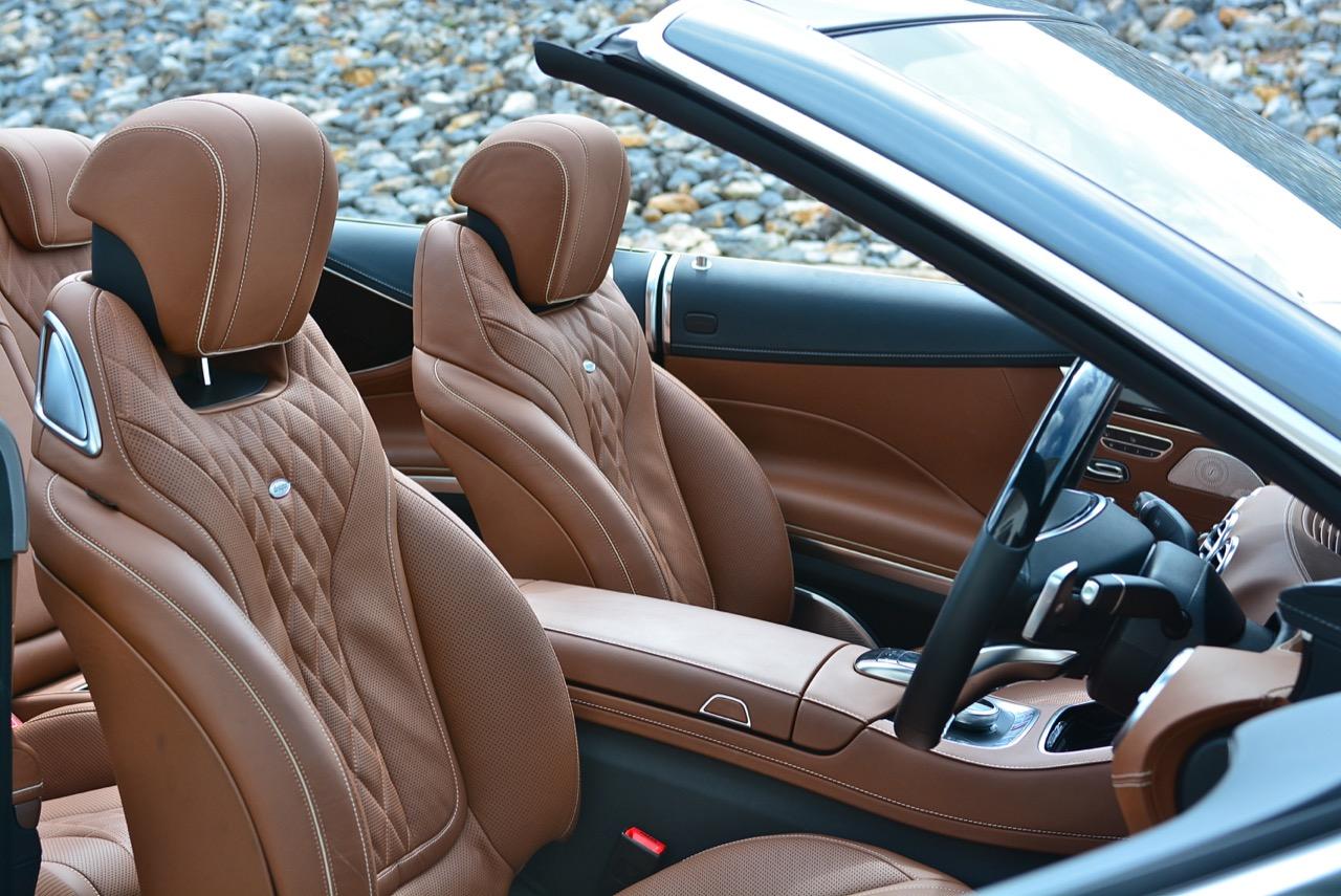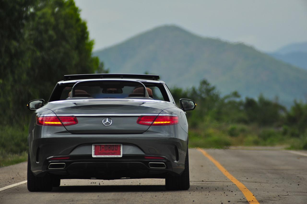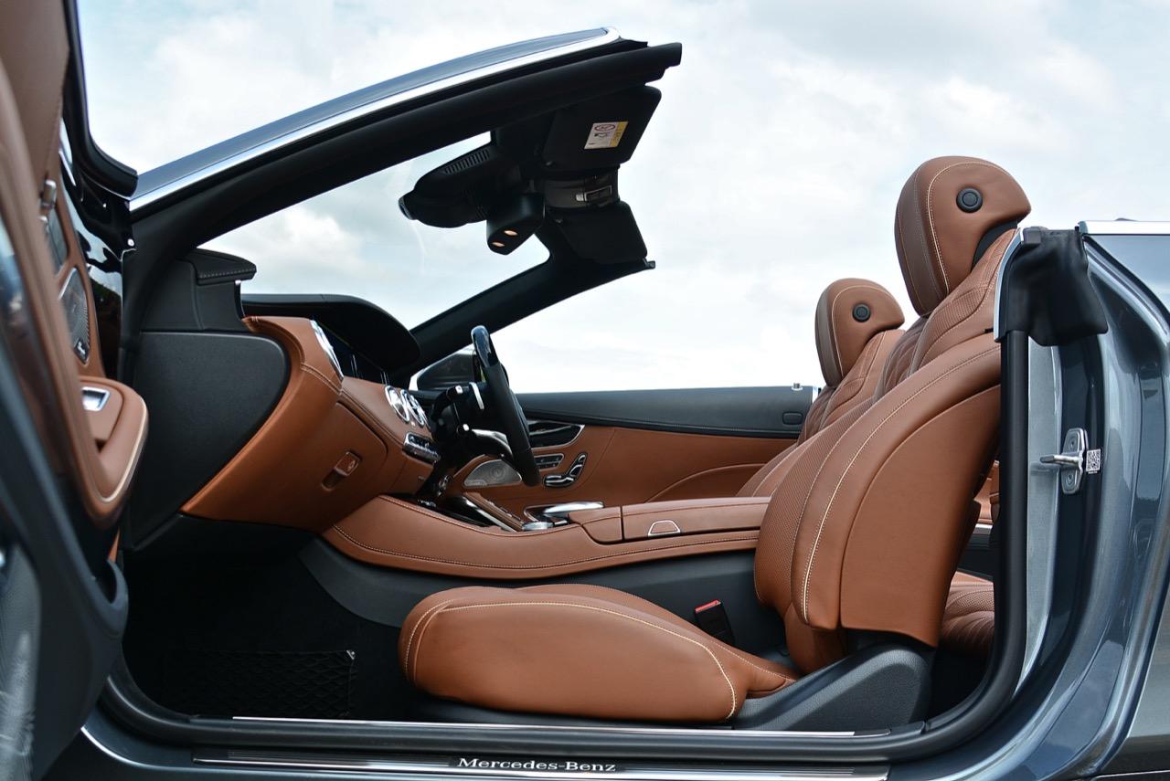 S500 CABRIOLET AMG PREMIUM คือ S-CLASS เวอร์ชั่นเปิดประทุน 4 ที่นั่งแสนสบาย อุปกรณ์อย่าง AIRCAP ช่วยทำให้ทรงผมที่เซตมาเป็นอย่างดีไม่พันกันยุ่งเหยิงเพราะโดนลมตี เบาะหน้านั่งได้ทั้งวันจากตัวเบาะที่นุ่มและโอบอุ้มทุกสรีระของคนขับ โหมดการปรับตั้งอุณหภูมิในห้องโดยสาร 3 แบบ รวมถึงการปรับอุณหภูมิเป่าขาได้ 5 ระดับ การจัดวางและพื้นที่ของห้องโดยสารเล็กกว่ารุ่นซาลูน 4 ประตูเห็นๆ รุ่นเปิดหลังคาใช้ส่วนหน้าและบั้นท้ายเหมือนกับรุ่น COUPE มองดูคล้ายกับ E-CLASS CABRIOLET จากระยะฐานล้อที่ใกล้เคียงกัน ฐานล้อของ S500 CABRIOLET มีความยาว 2,945 มิลลิเมตร ส่วน E-CLASS CABRIOLET ยาว 2,939 มิลลิเมตร ความกระชับของฐานล้อที่ใกล้เคียงกับรถรุ่นที่เล็กกว่าทำให้พื้นที่วางเท้าบริเวณเบาะหลังของ S-500 CABRIOLET ลดลง แต่ก็ได้ความคล่องกลับคืนมาเมื่อต้องการจะเลี้ยวกลับลำ เมื่อคนขับตัวสูงทำให้ต้องร่นเบาะหน้าถอยหลังจนไปกินพื้นที่วางเท้าของผู้โดยสารที่นั่งเบาะหลังอยู่เหมือนกัน