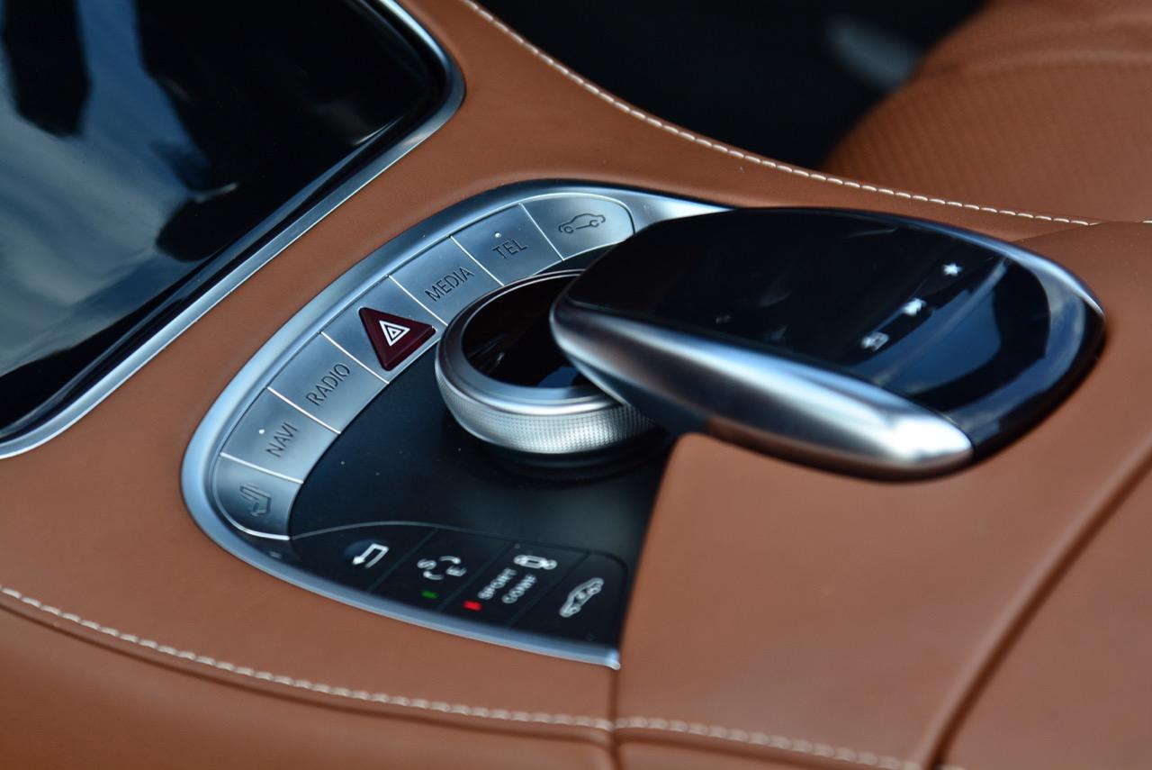 คอนโซลกลางแบบไม่มีซุ้มเกียร์ซึ่งเป็นสไตล์ของ MERCEDES BENZ ที่ย้ายคันเกียร์มาไว้ที่คอพวงมาลัยด้านขวา แรกๆ ก็จะใช้งานไม่ค่อยถนัดเนื่องจากชินกับคันเกียร์ที่อยู่ในตำแหน่งเดิมๆ พอใช้งานไปได้ไม่นานก็กลับชอบเพราะมันง่ายต่อการเลื่อนคันเกียร์ แต่ก็ต้องระวังไม่เผลอไปโยกโดยคิดว่าเป็นก้านไฟเลี้ยว ระบบเกียร์ 9 G-Tronic มีเซนเซอร์ป้องกันการใส่เกียร์ผิดพลาด หากวิ่งอยู่แล้วจะเลี้ยวซ้ายดันไปยกก้านเกียร์ด้านขวาเพราะคิดว่าเป็นก้านไฟเลี้ยวก็ไม่ต้องกลัวว่าเกียร์จะพังแค่ระวังเท่านั้นก็พอ เนื่องจากเซนเซอร์จะไม่ยอมเปลี่ยนเป็นเกียร์ถอยหลังให้ขณะที่รถกำลังเคลื่อนที่ ส่วนใหญ่จะยกผิดกลายเป็นเกียร์ว่างทำให้งงเป็นไก่ตาแตก แต่ไม่ได้เป็นจุดที่แย่เพราะอย่างที่บอกว่าพอใช้งานคันเกียร์กันจนชินแล้วก็จะรู้สึกชอบในความง่ายและเร็วของคันเกียร์แบบนี้ที่มีอยู่ไม่กี่เจ้า