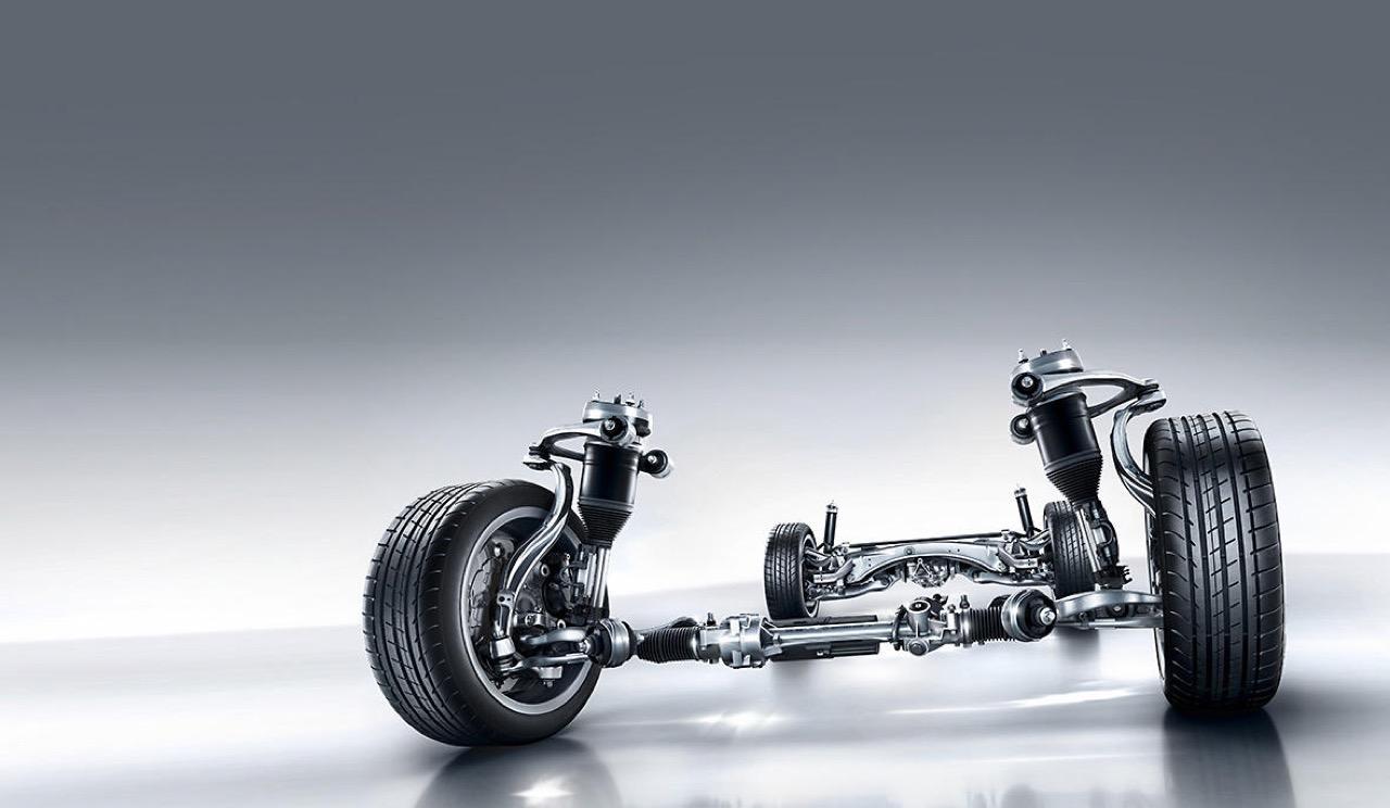 ระบบกันสะเทือนขั้นเทพด้วยถุงลมในสปริงหรือ AIR MATIC เป็นการนำเอาสปริงแบบลมมาใช้งานแทนที่สปริงแบบเหล็กขด สามารถปรับระดับความแข็ง-อ่อนและความสูงได้ เมื่อวิ่งเร็วหรือกดเข้าโหมด Sport เซนเซอร์ของระบบ AIR MATIC จะลดความสูงของตัวถังลงเพื่อลดแรงต้านทานของกระแสลม โดยจะลดความสูงลง 10 มิลลิเมตร ส่วนการยกความสูงเมื่อวิ่งผ่านผิวถนนที่ขุรขระสามารถยกขึ้นได้สูง 40 มิลลิเมตร ระบบลดอาการโคลงตัว Active Body Control ช่วยลดอาการต่างๆ เมื่อออกตัวด้วยความรวดเร็วรุนแรง การเบรกอย่างกะทันหัน การเข้าโค้งด้วยความเร็วสูงและการเปลี่ยนช่องทางอย่างฉับพลัน ระบบนี้ตอบสนองด้วยความเร็ว 50/1,000 วินาที