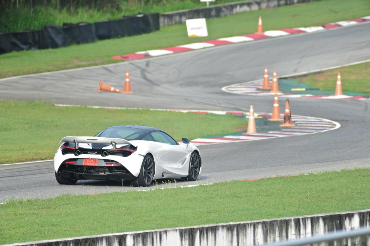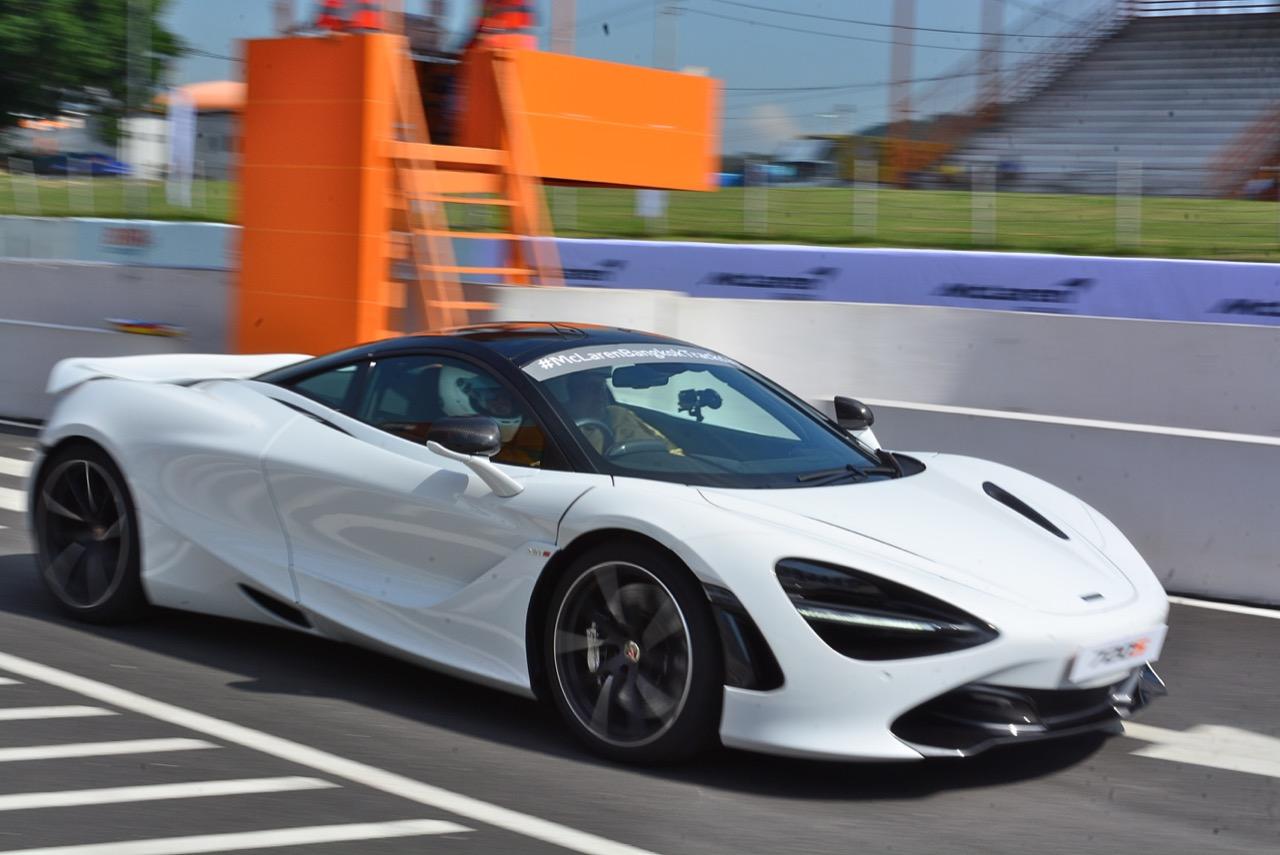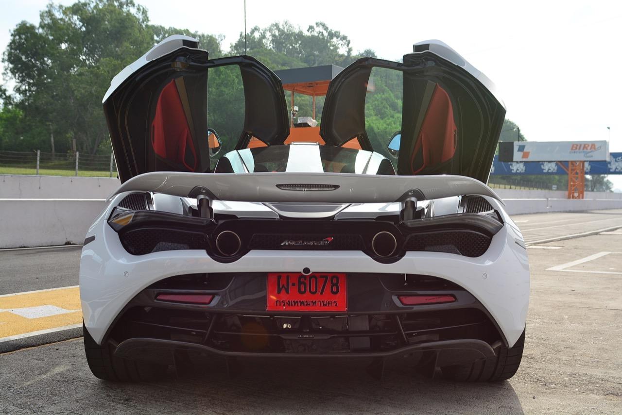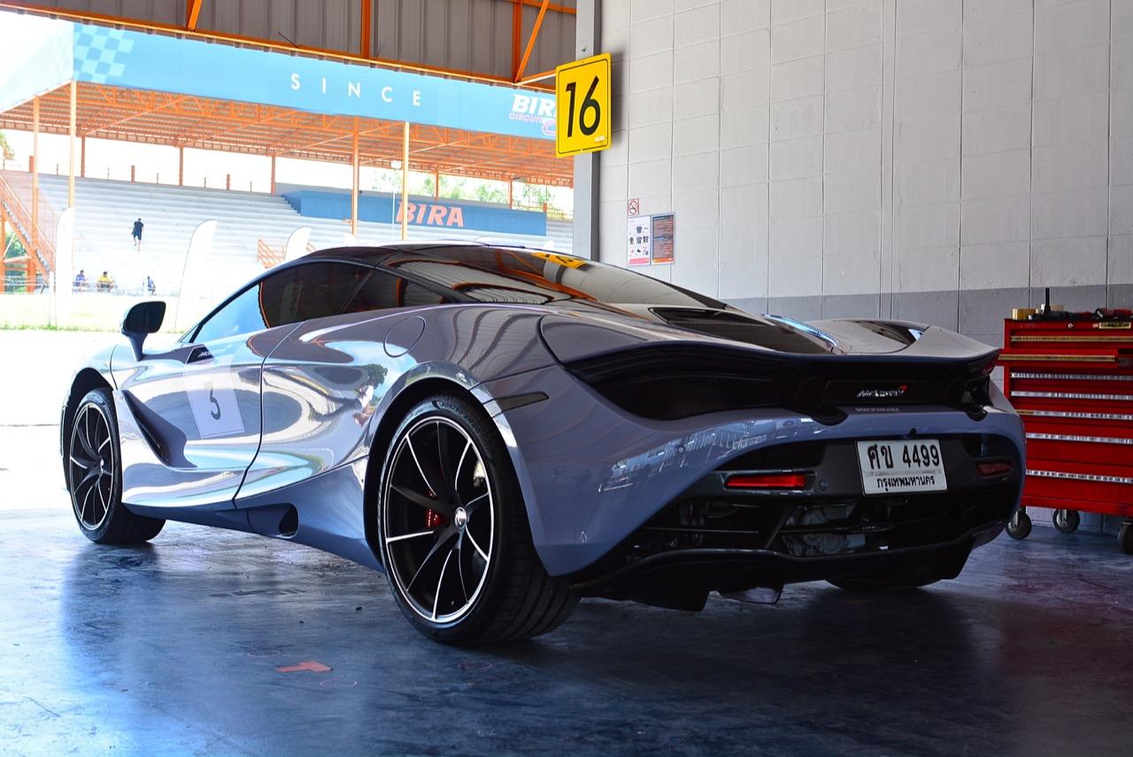 การขับทดสอบในพีระเซอร์กิตช่วงสั้นๆ แค่ 2 รอบสนามจากการเชื้อเชิญของค่ายนิชคาร์ผู้นำเข้าแบรนด์ McLAREN อาจได้ความรู้สึกที่รถส่งถ่ายออกมาไม่มากนักเนื่องจากเป็นรอบของสื่อมวลชนที่เชิญมาขับในช่วงเช้าตรู่แค่ 4 คน หลังจากนั้นจึงเป็นรอบของลูกค้าในช่วงบ่าย McLAREN 720S ขับได้สบายกว่า 675LT ที่ผมเคยไปขับในเซปังเมื่อ 2 ปีก่อน แต่ก็ต้องระวังเพราะยังมีคนรอขับอยู่อีกเพียบทำให้ไปเต็มๆ ไม่ได้! มันเป็นรถที่สามารถเร่งความเร็วได้อย่างเหลือเชื่อ กดลงไปเมื่อไหร่ก็จะระเบิดตูมออกมาเมื่อนั้น และต้องระวังให้ดีๆ การออกแบบแป้นเบรกที่แปลกประหลาดคล้ายรถแข่งโดยแป้นเบรกจะเยื้องไปทางซ้ายมากกว่ารถสปอร์ตซุปเปอร์คาร์ทั่วไปเพื่อเอื้ออำนวยให้ใช้เท้าข้างซ้ายเบรก ซึ่งแรกๆ เมื่อได้ลองเบรกด้วยเท้าข้างซ้ายดูก็พบว่ามันไม่ถนัดเอาซะเลย คงต้องใช้เวลาเรียนรู้และเพิ่มความคุ้นเคยกันนานพอสมควรสำหรับการใช้เท้าข้างที่ไม่ถนัดในการเบรก