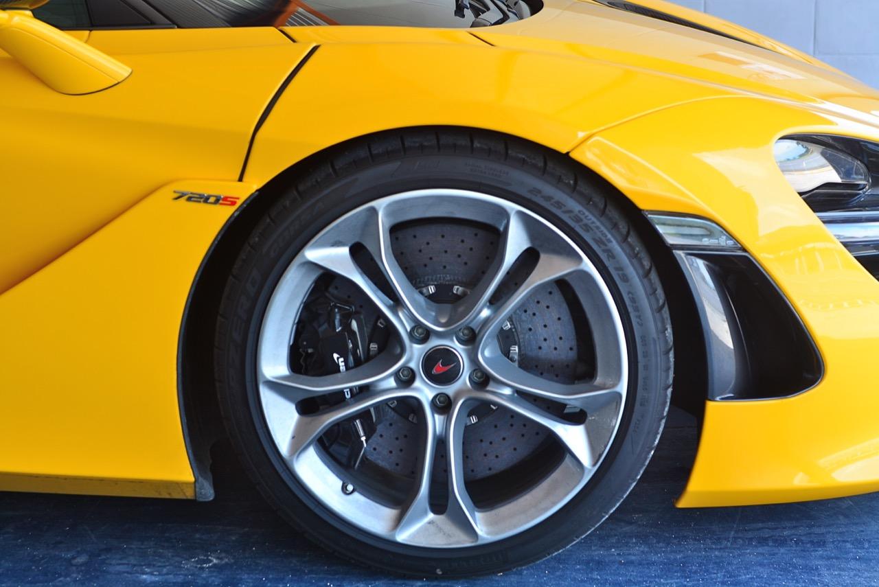 Downforce เป็นเรื่องใหญ่สำหรับบริษัทที่เกี่ยวข้องกับการสร้างรถแข่ง F1 ค่าย McLAREN นั้นคลุกคลีอยู่กับการแข่งรถมานานกว่า 50 ปี ประสิทธิภาพความลู่ลมก็เช่นกัน ถ้าทำระบบหล่อเย็นให้เบาลงได้ 20 กิโลกรัม นั่นก็เป็นเรื่องดี McLAREN พยายามเค้นการออกแบบทุกเม็ดเพื่อรายละเอียดแบบนี้มาตลอด ยางก็สำคัญ McLAREN เป็นลูกค้ายอดแย่ของ Pirelli และสร้างปัญหาให้บริษัทยางชั้นนำของโลกจากอิตาลีกลับไปทำการบ้านอยู่ตลอดเวลา ไม่ว่าจะเป็นเนื้อยาง ความรู้สึกเวลาขับที่ถ่ายเทขึ้นมายังพวงมาลัย ความแข็งของแก้มยาง น้ำหนักยาง การลดแรงต้านการหมุน ทุกเรื่องต้องทำให้ได้ตามที่ McLAREN กำหนด ยางต้องมีประสิทธิภาพสูงสุด ไม่ใช่แค่ดีแต่ต้องเกาะถนนดีกว่ายางในรุ่น 650S อีก 6% ยางหน้า P-ZERO CORSA ไซส์ 245/35ZR19 93Y ยางหลัง 305/30ZR20 103Y