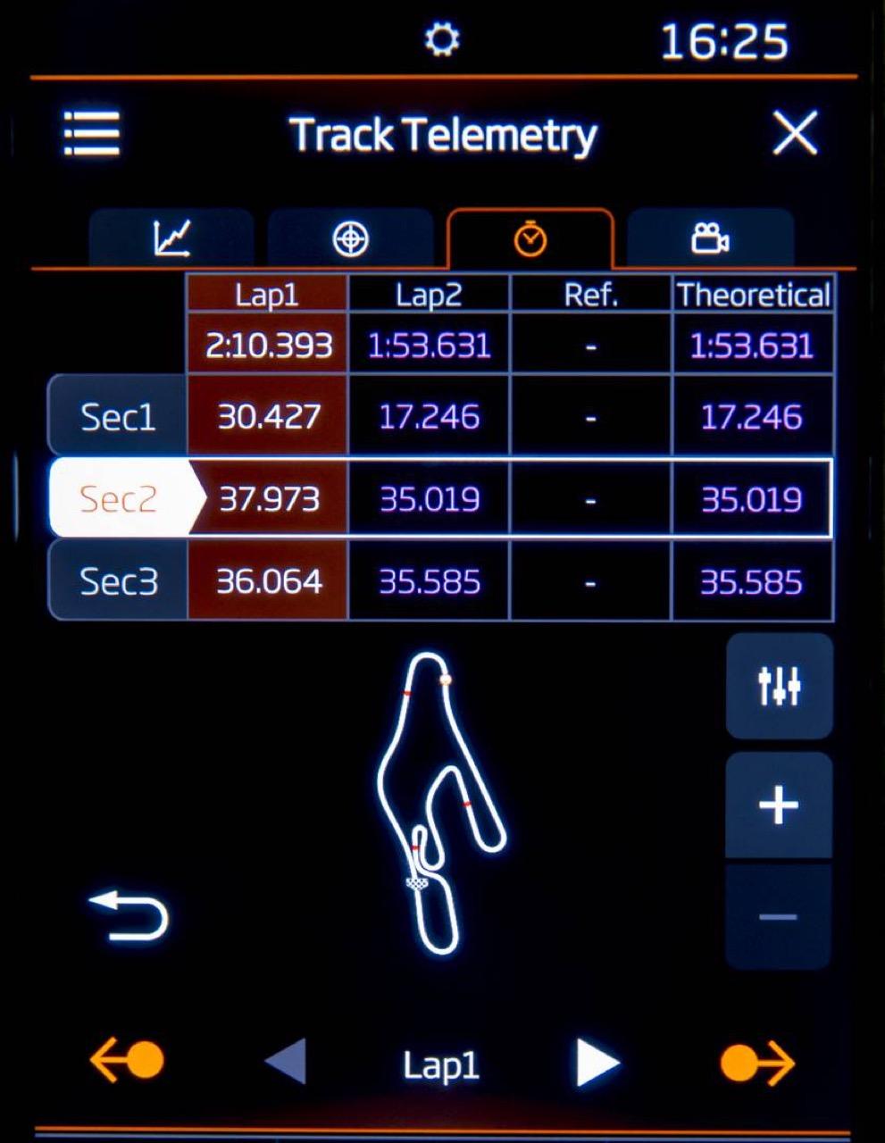 สิ่งใหม่อีกอย่างที่มีคือ Track Telemetry และ Track Telemetry with Camera ซึ่งเก็บข้อมูลการวิ่งของรถได้ละเอียดมาก พอเชื่อมกับกล้องแล้ว คุณจะได้ภาพการวิ่งของคุณในสนามพร้อมข้อมูลต่างๆของรถขึ้นโชว์ นั่งดูเล่นที่บ้านก็ได้ ถ้าสมมติว่ามีรอบไหนทำเวลาดีที่สุด ก็เอาข้อมูลนั้นโหลดเข้าไปบนหน้าปัด พอคุณออกไปวิ่งสนามนั้นอีกครั้ง รถก็จะคอยจับเวลาเทียบให้คุณว่าตอนนี้วิ่งช้า/เร็วกว่าตอนนั้นมากน้อยแค่ไหน