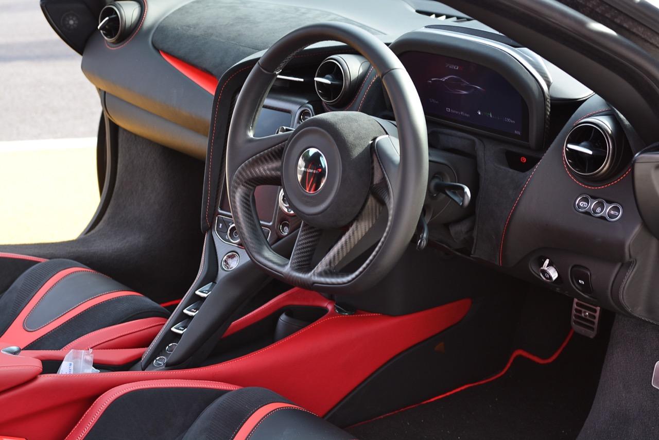 เมื่อทิ้งตัวลงบนเบาะนั่งคาร์บอนหุ้มหนังกลับที่บางเฉียบ มองไปด้านหลังก็จะเห็นส่วนโหนกนูนออกมาคล้ายกับจมูกเครื่องบินทิ้งระเบิดทัพฟ้าเยอรมนีรุ่น Heinkel จากสงครามโลกครั้งที่สอง ทัศนวิสัยโดยรวมของ 720S กลับโปร่งตามากและมองได้รอบตัวจนไม่น่าเชื่อว่านี่คือซุปเปอร์คาร์จอมโหดโคตรแรงที่มีพลังทำลายล้างมากถึง 720 แรงม้า