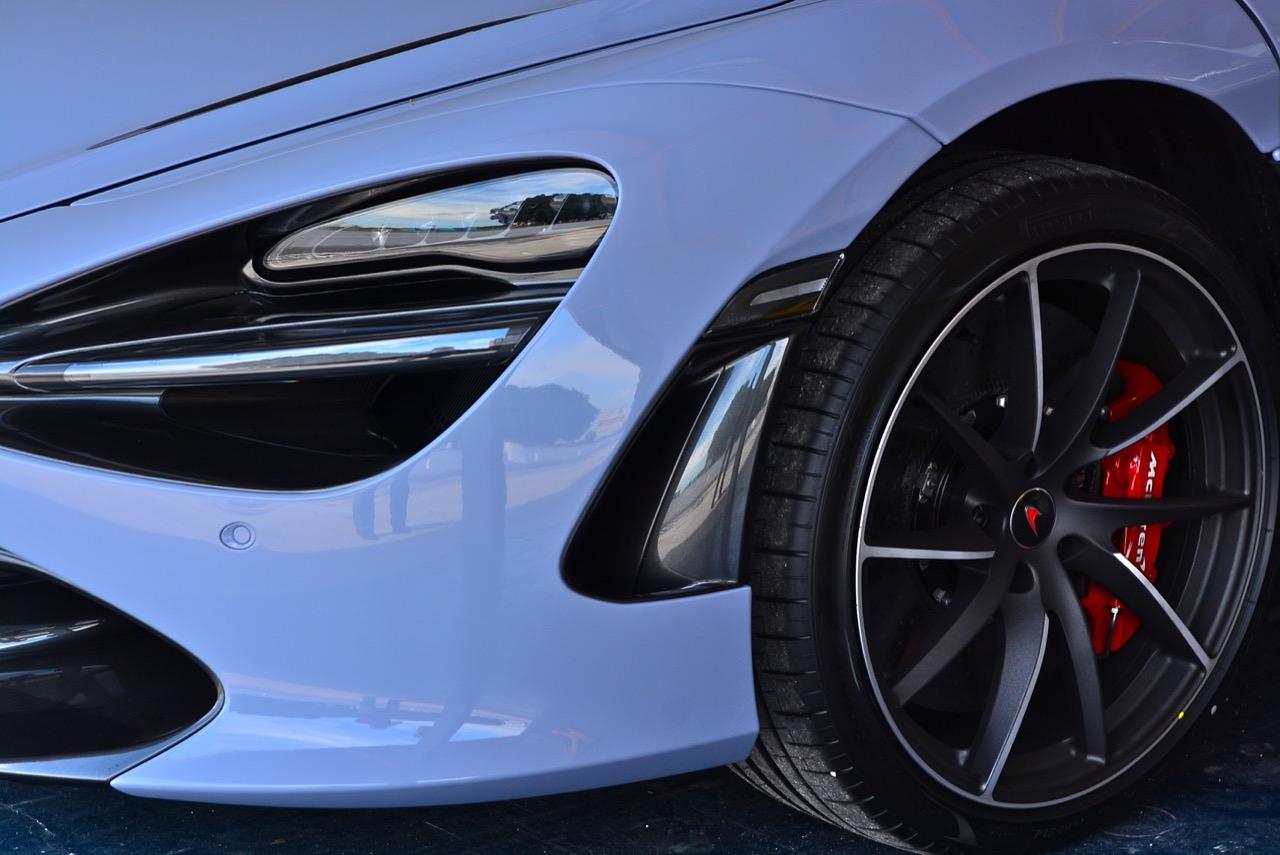 ดิฟฟิวเซอร์หน้ามีลักษณะคล้ายกับรถรุ่นพี่แสนแพงอย่าง McLAREN P1 ไฟหน้ามีช่องรับลมแฝงเข้าไว้ด้วยกัน ช่องนี้จะรับอากาศจากข้างหน้าเข้าไปในรถและมีหน้าที่สร้าง Downforce ต่อจากนั้น กระแสลมที่ไหลผ่านถึงจะไประบายความร้อนต่อในส่วนของระบบเบรก