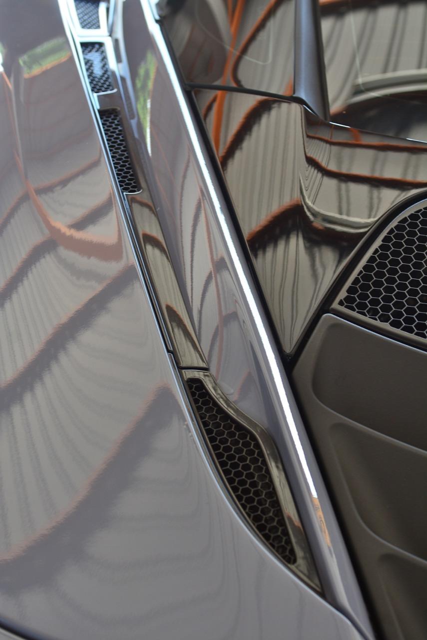 กระจกบานหลังของรถมีหน้าตาที่ไม่ธรรมดา และไม่เหมือนกระจกอะไรก็ตามที่คุณเคยเห็นจากรถรุ่นอื่น อย่างที่ผู้อำนวยการฝ่ายออกแบบ Rob Melville บอกว่า มันคือ Glasshouse แบบที่ไม่เคยมีใครทำได้มาก่อน “เราอยากให้ด้านข้างของรถดูสะอาดตาและไม่ซ้ำกับแบรนด์คู่แข่ง กระจกบังลมบานหลังจะกลายเป็นเอกลักษณ์ของรถสปอร์ตในตระกูล Super Series ของ McLAREN (พวก 570S จะนับเป็น Sport Series และ P1 ถือเป็น Ultimate Series โดย Super Series คือรุ่นที่คั่นกลางระหว่างสองคลาสนี้) รถ Super Series จะมีดีไซน์ที่แสดงให้เห็นถึงความตั้งอกตั้งใจและเทคนิคของการออกแบบที่ล้ำยุคสุดติ่ง ตอนแรกที่ผมร่างแบบมามันไม่ใช่แบบนี้หรอก แต่ทีมงานของ McLAREN คิดได้ว่าทัศนวิสัยมุมมองขณะขับเคลื่อนเป็นเรื่องสำคัญ ก็เลยทำกระจกบานหลังเป็นทรงหยดน้ำตาและทำให้มันดูโปร่งมาก”