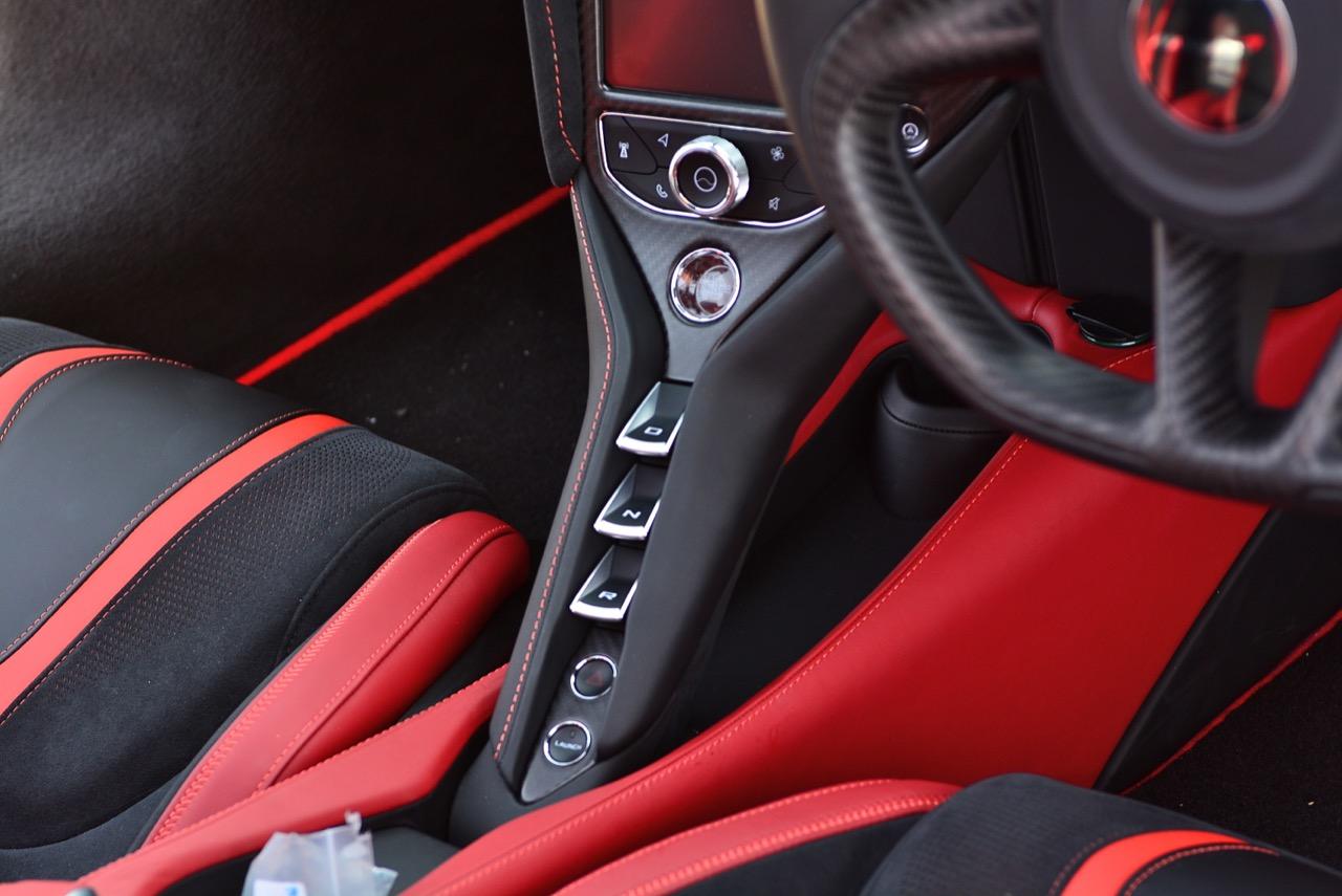 คำตอบอยู่ที่ Variable Drift Control ซึ่งเหมือนกับระบบที่ใช้ใน AMG GT R แต่ในขณะที่ AMG เป็นสวิตช์หมุน ของ McLaren ทำเป็นจอดิจิทัล หน้าที่ของมันคือการสั่งระบบช่วยการทรงตัว ว่าจะยอมให้รถหลุดหรือปัดได้มากแค่ไหนก่อนที่ระบบจะเข้ามาวุ่นวาย ก่อนหน้านี้ ESC จะปรับได้เป็นระดับๆ แต่ละระดับจะตอบสนองต่างกันมาก ตอนนี้ McLAREN ปรับจูนตัวควบคุมจนทำให้ลูกค้าสามารถเลือกปรับโหมดการขับได้หลายระดับอย่างละเอียดและคมมากขึ้น คุณจะปรับให้รถท้ายออกได้มากแค่ไหน ก็แล้วแต่ความเสี้ยนและฝีไม้ลายมือของคุณเองเลย ซึ่งถ้าจะใช้ ก็ต้องอยู่ในโหมด Sport หรือ Track แล้วก็สามารถเก็บค่าอย่างที่คุณตั้งเอาไว้ได้ตามใจ เวลาขับก็จะสามารถสนุก และมั่นใจไปพร้อมๆ กันได้มากขึ้น รถจะไปในแบบที่คุณต้องการไม่ว่าจะเกาะโค้งเป็นตุ๊กแกหรือสาดท้ายออกแบบดริฟต์ก็ทำได้ทั้งนั้น
