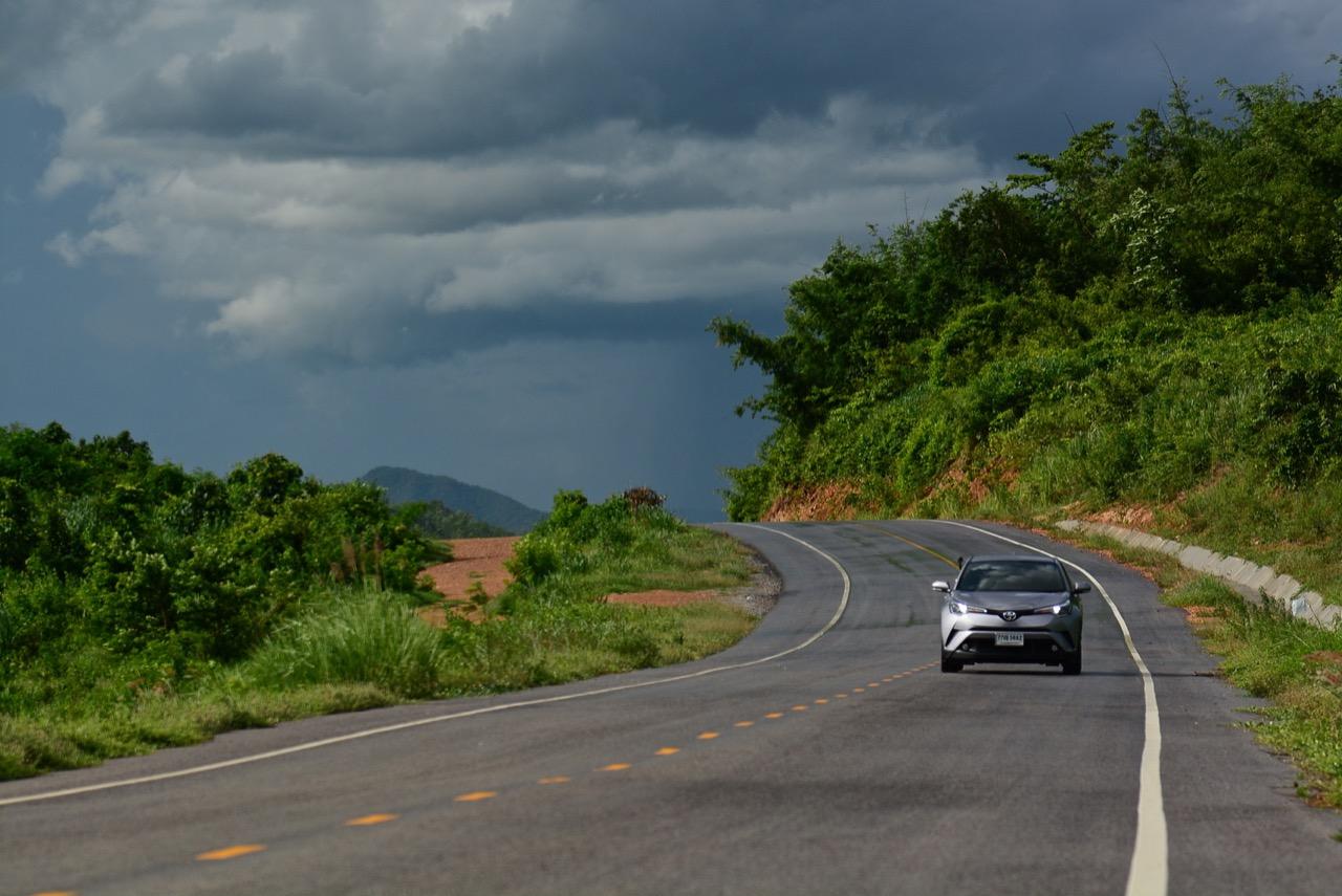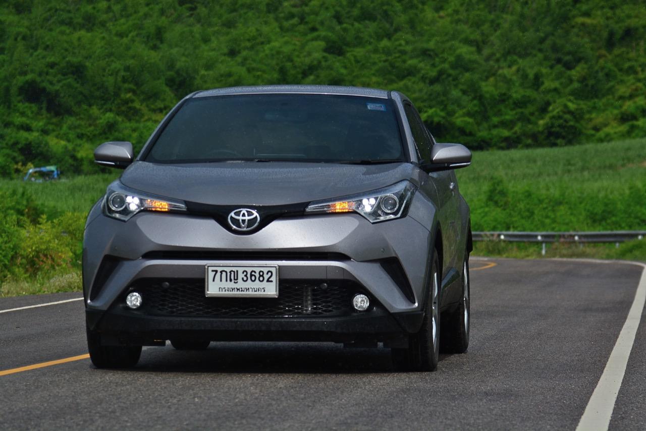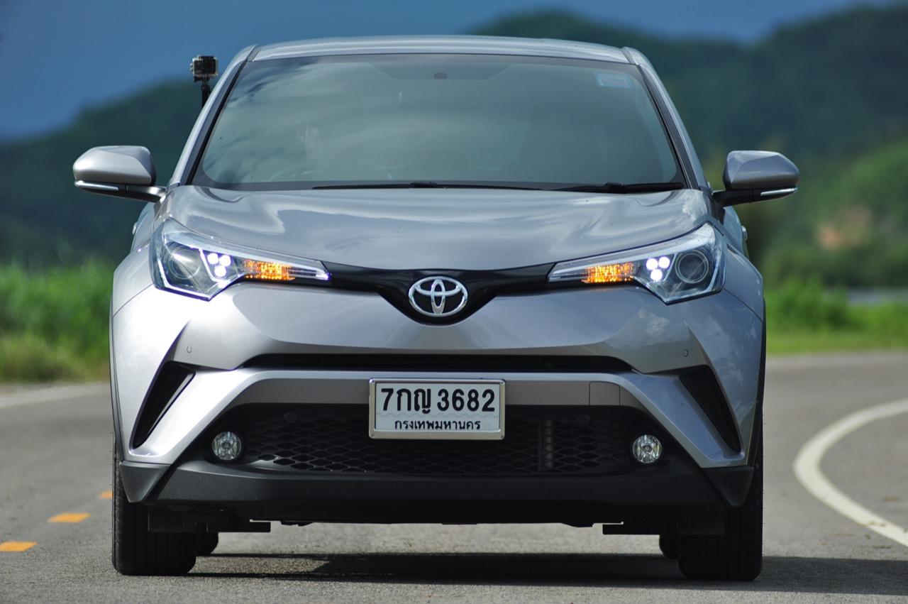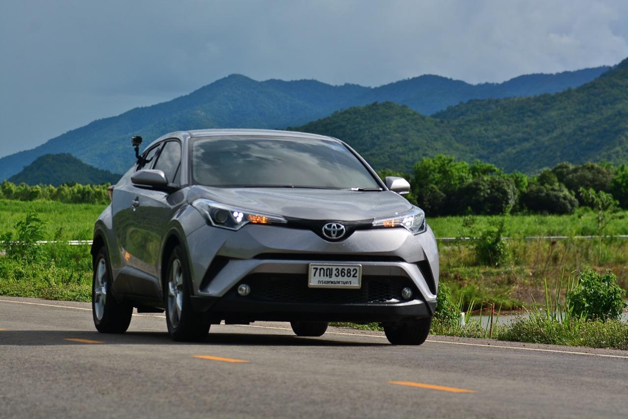 ชุดบังคับเลี้ยวทำตัวน่ารัก เป็นพวงมาลัยไฟฟ้าน้ำหนักดี ทำให้ C-HR วิ่งได้อย่างมั่นคงเมื่อใช้ความเร็วสูง เป็นรถใหม่ของ Toyota ที่สร้างความเปลี่ยนแปลงครั้งใหญ่ แพลตฟอร์มใหม่มีคุณภาพสูงขึ้น ส่วนย่านของกำลังในรุ่นเบนซิน 1.8 ลิตร แค่พอได้อาศัยใช้งานปกติไม่ได้เร็วอะไรมาก อารมณ์ที่เปลี่ยนไปของ C-HR ใน Toyota ยุคใหม่ทำให้ขับสนุก เป็นรถ Fun to Drive ของค่ายสามห่วงอย่างแท้จริง พวงมาลัยไฟฟ้าและช่วงล่างหน้าช่วยทำให้การเข้าโค้งด้วยความเร็วที่เหมาะสมกลายเป็นเรื่องง่ายๆ รวมถึงการวิ่งผ่านผิวถนนที่ไม่เรียบก็ทำออกมาได้ดี แม้จะมีความสูงมากกว่ารถเก๋งทั่วไป แต่อาการโคลงตัวน้อยมาก ประสิทธิภาพของการยึดเกาะเกิดขึ้นจากช่วงล่างและยาง Dunlop Enasave EC300 ขนาด 215/60 R17 ส่งผลให้ประสิทธิภาพการขับของ C-HR ออกมาในแบบที่ควรจะเป็น