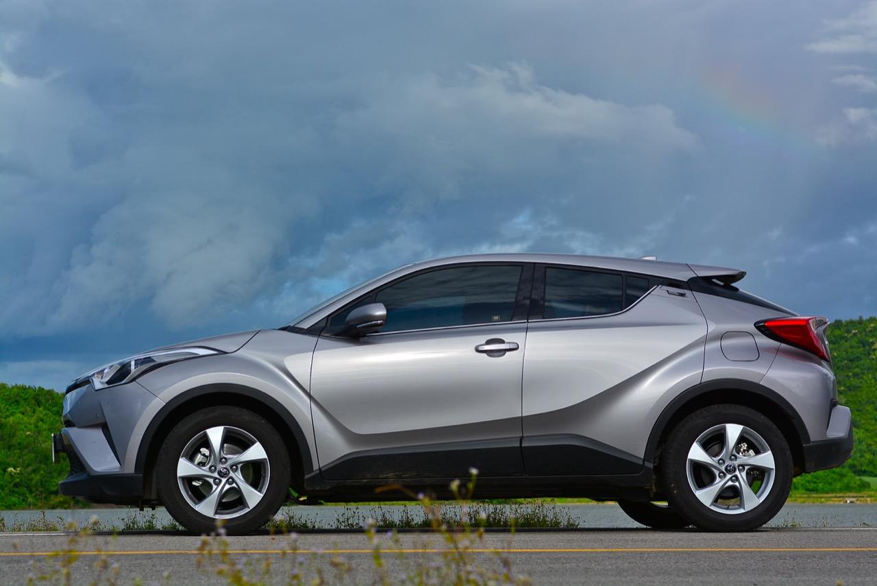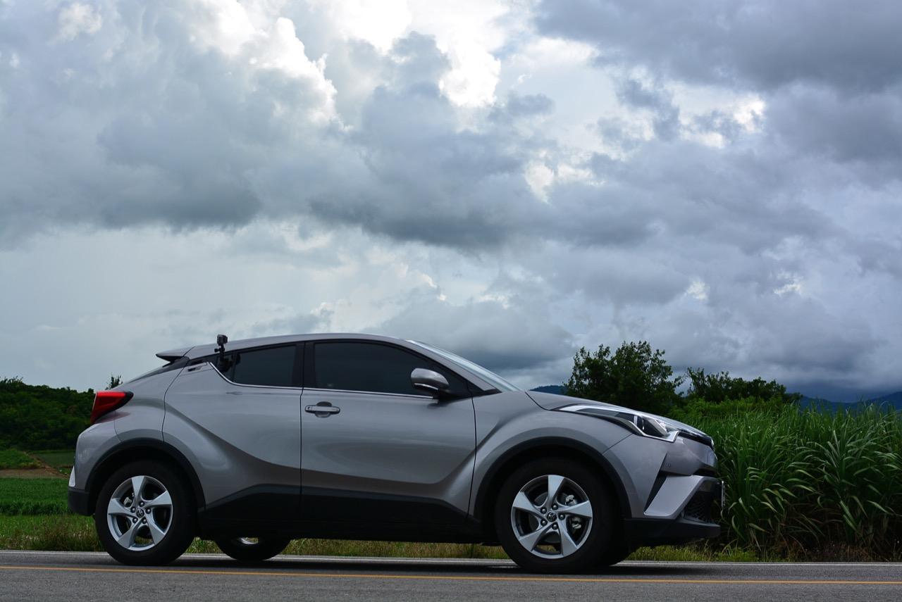 Toyota C-HR รุ่น 1.8 MID เครื่องยนต์เบนซินเพียวๆ ไม่มีระบบไฮบริด มีราคาค่าตัว 1,039,000 บาท ถูกกว่ารุ่นไฮบริดอยู่พอสมควรโดยมีมิติตัวถังยาว 4,360 มิลลิเมตร กว้าง 1,795 มิลลิเมตร สูง 1,565 มิลลิเมตร ระยะฐานล้อ 2,640 มิลลิเมตร ระยะต่ำสุดจากพื้นถึงใต้ท้องรถ 154 มิลลิเมตร สูงกว่ารถเก๋งปกติเล็กน้อย ความกว้างล้อหน้า 1,550 มิลลิเมตร ความกว้างล้อหลัง 1,570 มิลลิเมตร ความจุถังเชื้อเพลิง 43 ลิตร น้ำหนักตัวรถทั้งคันอยู่ที่ 1,380 กิโลกรัม มีรัศมีวงเลี้ยวแคบสุด 5.2 เมตร ช่วงล่างแบบใหม่ในแพลตฟอร์มใหม่ TNGA ด้านหน้าเป็นแบบแมคเฟอร์สัน สตรัท สปริง โช้คอัพและเหล็กกันโคลง มีการเปลี่ยนแปลงมุมของสตรัทแบร์ริ่งเพื่อทำให้มีค่าที่สอดคล้องกับประสิทธิภาพของการยึดเกาะ ส่วนด้านหลังมีการปรับปรุงรูปแบบของระบบรองรับให้มีประสิทธิภาพมากขึ้น ช่วงล่างหลังของ C-HR เป็นแบบมัลติลิงก์ ดับเบิ้ลวิชโบนปีกนกคู่ ใช้โช้คอัพที่มีโครงสร้างใหม่ทั้งหมด ล้อและยางใส่ล้ออัลลอยขอบ 17 นิ้ว ยาง Dunlop Enasave EC300 ไซส์ 215/60R17