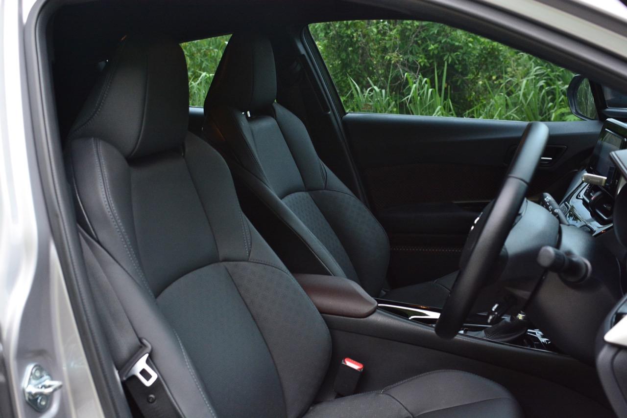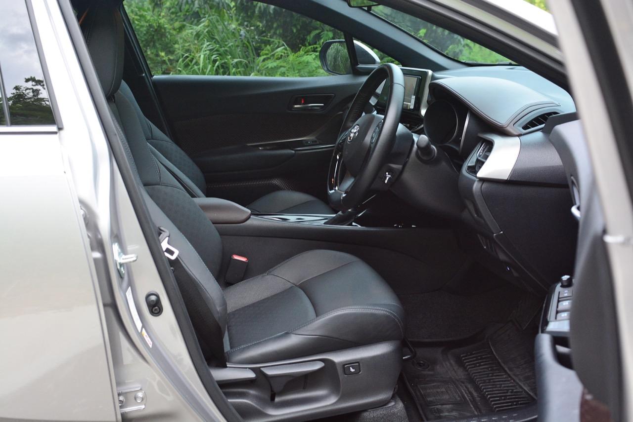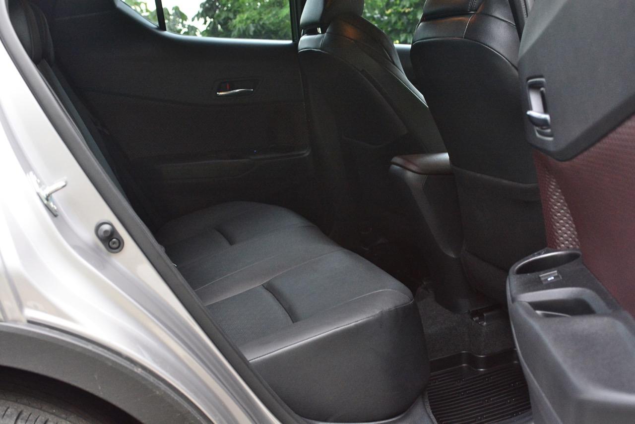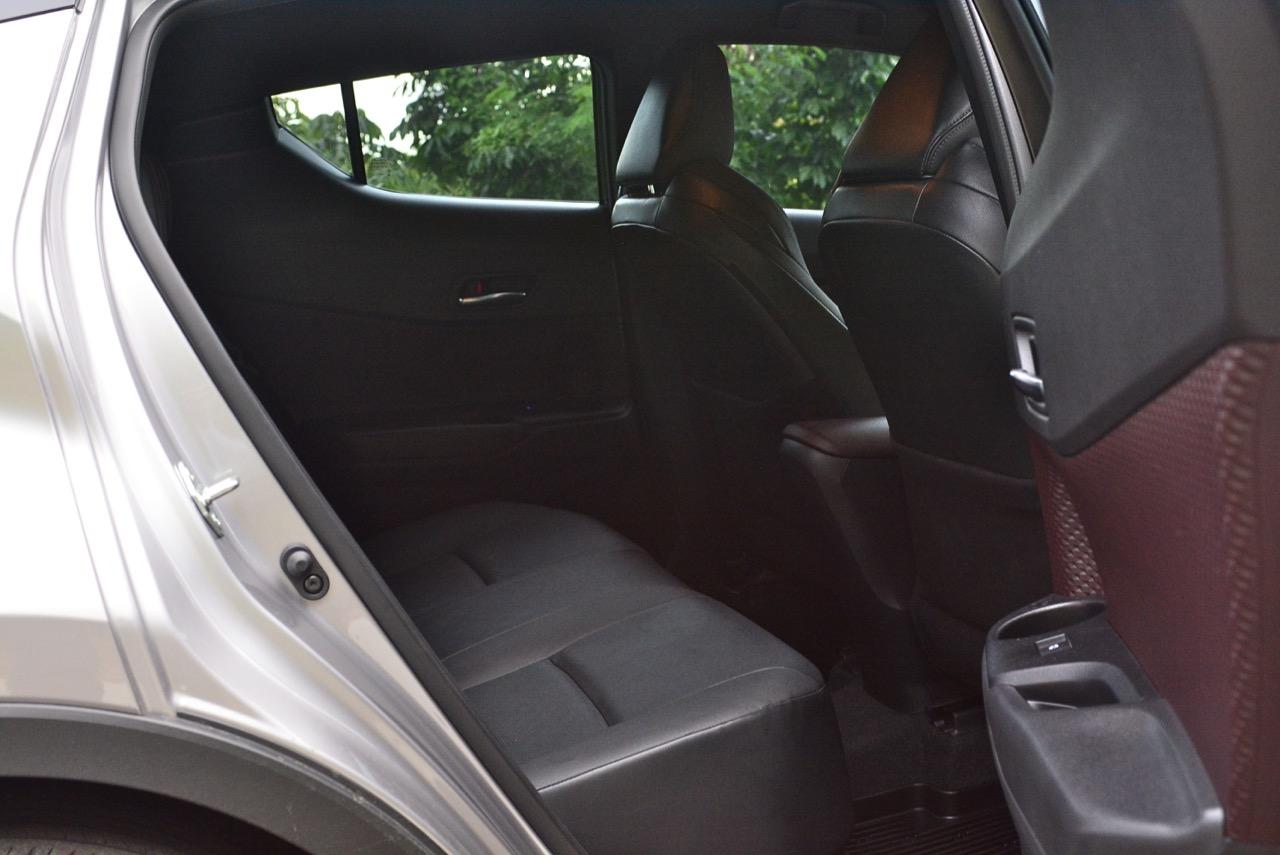 บางคนบ่นเรื่องพื้นที่เบาะหลัง วัสดุและรูปแบบการจัดวางอุปกรณ์ของ Toyota แต่จุดเด่นของ C-HR อยู่ที่เบาะคู่หน้า ซึ่งออกแบบให้นั่งได้สบายตัว เบาะหลังก็นั่งโดยสารได้ดีและเงียบกว่ารุ่นไฮบริดเนื่องจากไม่มีแบตเตอรี่อยู่ใต้เบาะนั่งแถวที่สอง ประตูบานหลังแบบ Coupe ย้ายมือจับที่เปิดประตูไปอยู่กับเสาท้าย ประตูหลังที่สูงรวมถึงเสาท้ายแบบ Coupe ทำให้ทัศนวิสัยมุมมองของผู้โดยสารตอนหลังค่อนข้างอับทึบไปนิด แต่เบาะหลังก็ยังนั่งโดยสารทางไกลได้ดี ไม่แตกต่างไปจากรถคู่แข่ง เนื่องจากการออกแบบแชสซีและระบบรองรับด้านหลังใหม่หมด