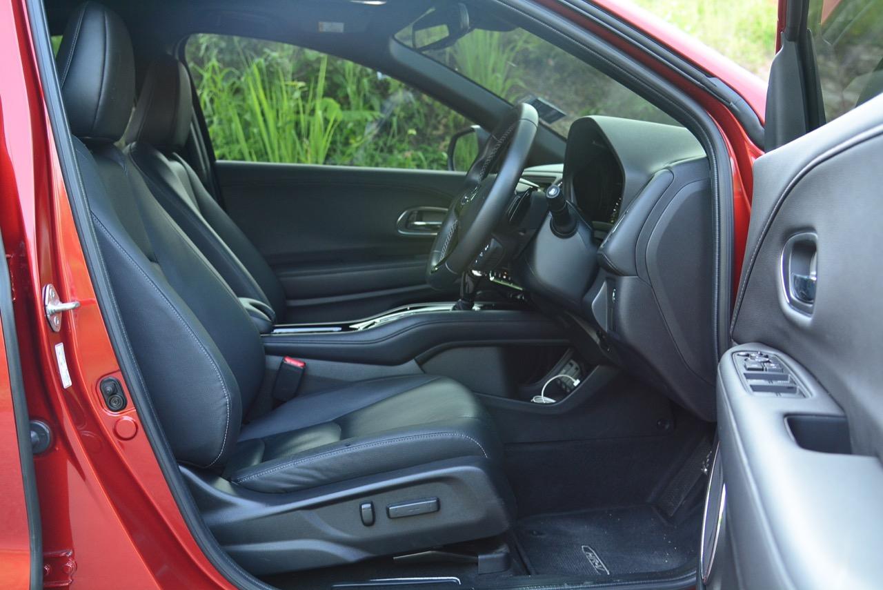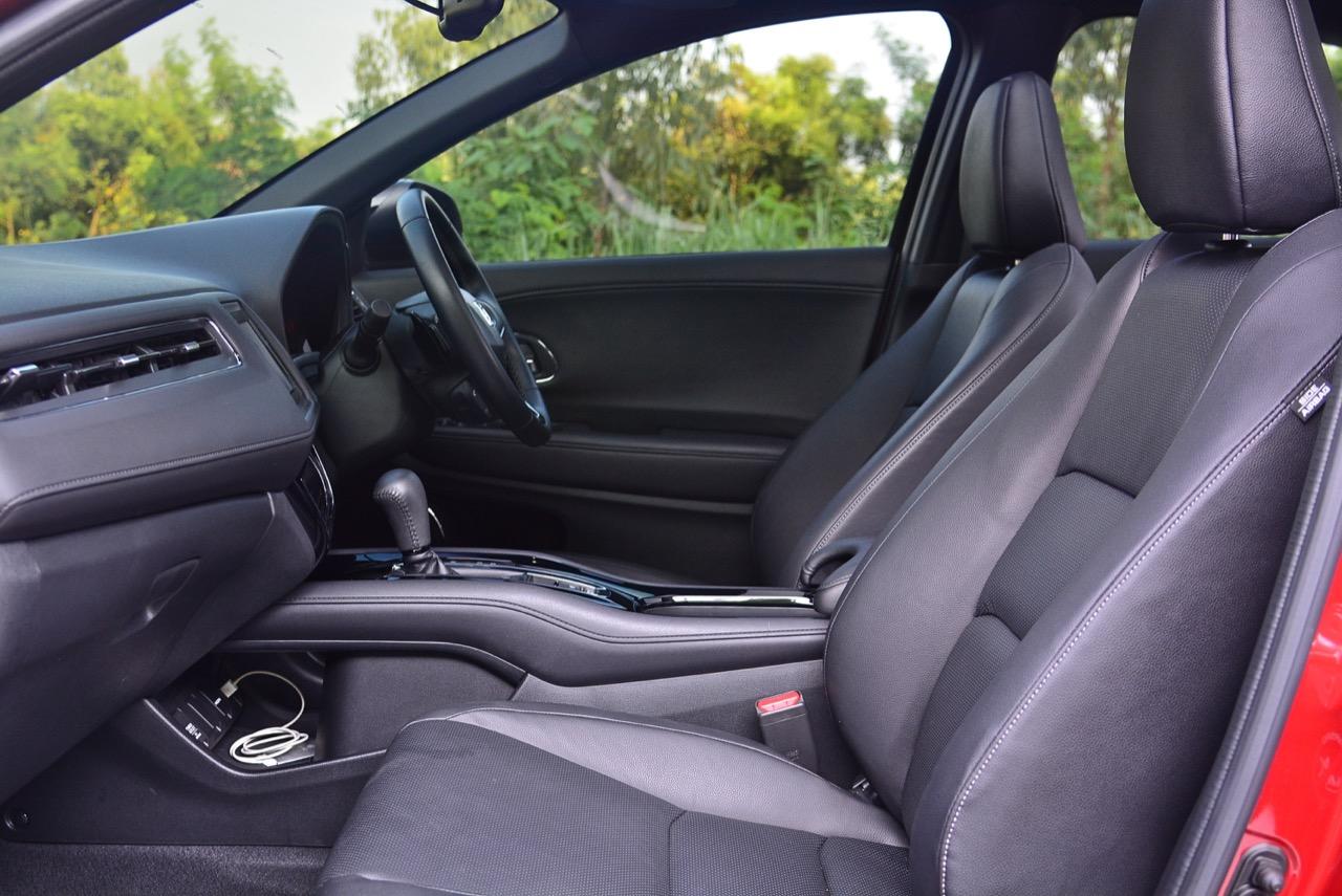 HR-V ออกแบบให้ตำแหน่งนั่งขับมีความสูงมากกว่ารถซีดานทั่วไป ซึ่งทำให้ระดับสายตาอยู่ในตำแหน่งที่เหมาะสม มอบทัศนวิสัยที่ดีจากความโปร่งโล่ง การมองได้ไกลมากยิ่งขึ้นยังเข้ามาช่วยเสริมในเรื่อง ความปลอดภัย การออกแบบความกว้างของเสากระจกบังลมด้านหน้าให้มีมุมที่ลาดลง อย่างเหมาะสม ทำให้ได้ทัศนวิสัยในมุมกว้างที่แตกต่าง ตำแหน่งเบาะที่นั่งคนขับ ในแง่ของทัศนวิสัยรอบด้าน ทั้งเบาะที่นั่งคนขับและเบาะที่นั่งผู้โดยสาร ได้ถูกออกแบบมาให้สอดคล้องกับสรีระ เพื่อมอบความสบายยามขับใช้งานทางไกล หรือในขณะที่กำลังเข้า-ออก ห้องโดยสาร ช่องเก็บของคอนโซลกลางพร้อมที่วางแก้วน้ำ เพื่อรองรับความหลากหลายในการใช้งาน ช่องเก็บของคอนโซลกลางมาพร้อมที่วางแก้วน้ำ เพื่อให้สอดคล้องกับคอนโซลกลางแบบ 2 ชั้น สามารถปรับเปลี่ยน เพื่อรองรับแก้วน้ำได้หลากหลายขนาด เมื่อไม่มีการวางแก้วน้ำ พื้นที่ส่วนนี้สามารถปรับเปลี่ยนให้กลายเป็นที่เก็บของส่วนตัว