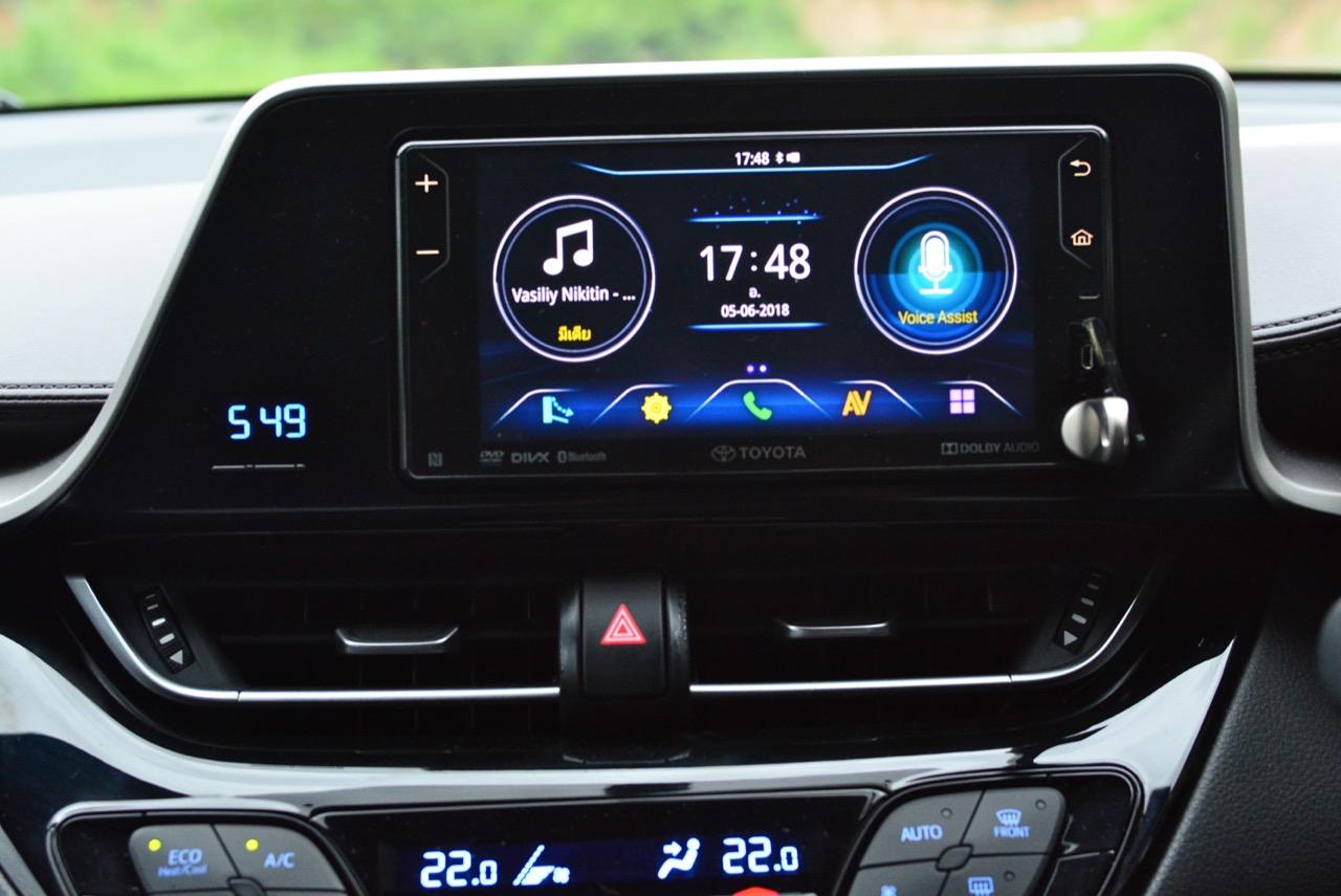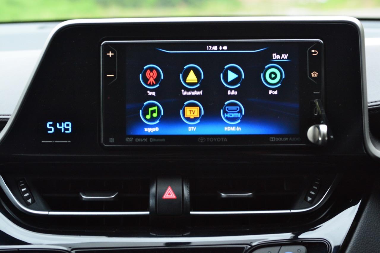 C-HR มีจอภาพมอนิเตอร์กลางของระบบเครื่องเสียง DVD หน้าจอสัมผัสขนาด 7 นิ้ว พร้อมช่องเชื่อมต่อ USB/HDMI/Micro SD Card ระบบเชื่อมต่อด้วย Bluetooth รองรับโทรศัพท์ และการเล่นเพลง ลำโพง 6 ตำแหน่ง ให้ภาพที่คมชัดพร้อมการเชื่อมต่อ Toyota T-Connect Telematics เพิ่มการครอบคลุมในการใช้งานเพื่อสื่อสารกับโลกภายนอก สำหรับระบบ Toyota T-Connect Telematics เป็นระบบที่เชื่อมต่อผู้ขับขี่และรถยนต์ผ่าน Smart phone และ Apple watch พร้อมทั้งเครือข่ายศูนย์ข้อมูลอัจฉริยะ เพื่อรับข้อมูลและความช่วยเหลือตลอดการเดินทาง ไม่ว่าจะเป็น ระบบนำทาง T-Connect Telematics บริการช่วยเหลือฉุกเฉิน 24 ชม. ระบบตรวจสอบตำแหน่งรถยนต์และช่วยค้นหาพิกัดในกรณีที่รถถูกโจรกรรม สัญญาณ Wi-Fi ในรถยนต์ และการลดเบี้ยประกันด้วยโปรแกรม Pay As You Drive insurance