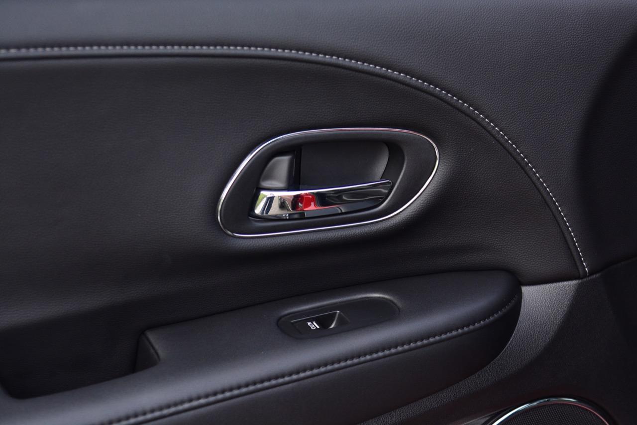 HR-V มีภายในโทนสีดำ มาพร้อมพื้นผิวสัมผัสที่นุ่มนวล ด้วยการคัดเลือกวัสดุคุณภาพดีขึ้น ประกอบกับดีไซน์ของตะเข็บรอยเย็บที่สวยงามและประณีตคล้ายกับรถยนต์พรีเมียม เป็นการยกระดับคุณภาพของวัสดุ และความใส่ใจในทุกรายละเอียด แผงคอนโซลและคอนโซลกลางแบบ 2 ชั้น ให้ความรู้สึกกว้างขวางและโปร่งโล่ง การจัดวางภายในห้องโดยสาร Honda HR-V พร้อมแนวคิด Smart Cross Package มุ่งไปที่ความเป็นส่วนตัว ฟังก์ชั่นการใช้งานอุปกรณ์ต่างๆ เน้นหนักแบบรถอเนกประสงค์ เพื่อประสิทธิภาพของการใช้งานในชีวิตประจำวัน กล้องมองภาพด้านข้างเฉพาะฝั่งซ้ายติดตั้งอยู่ใต้กระจกมองข้าง ช่วยทำให้การเลี้ยวเข้าซอยปลอดภัยจากมอเตอร์ไซค์ ด้วยภาพที่แสดงผ่านจอมอนิเตอร์เมื่อยกไฟเลี้ยวซ้าย