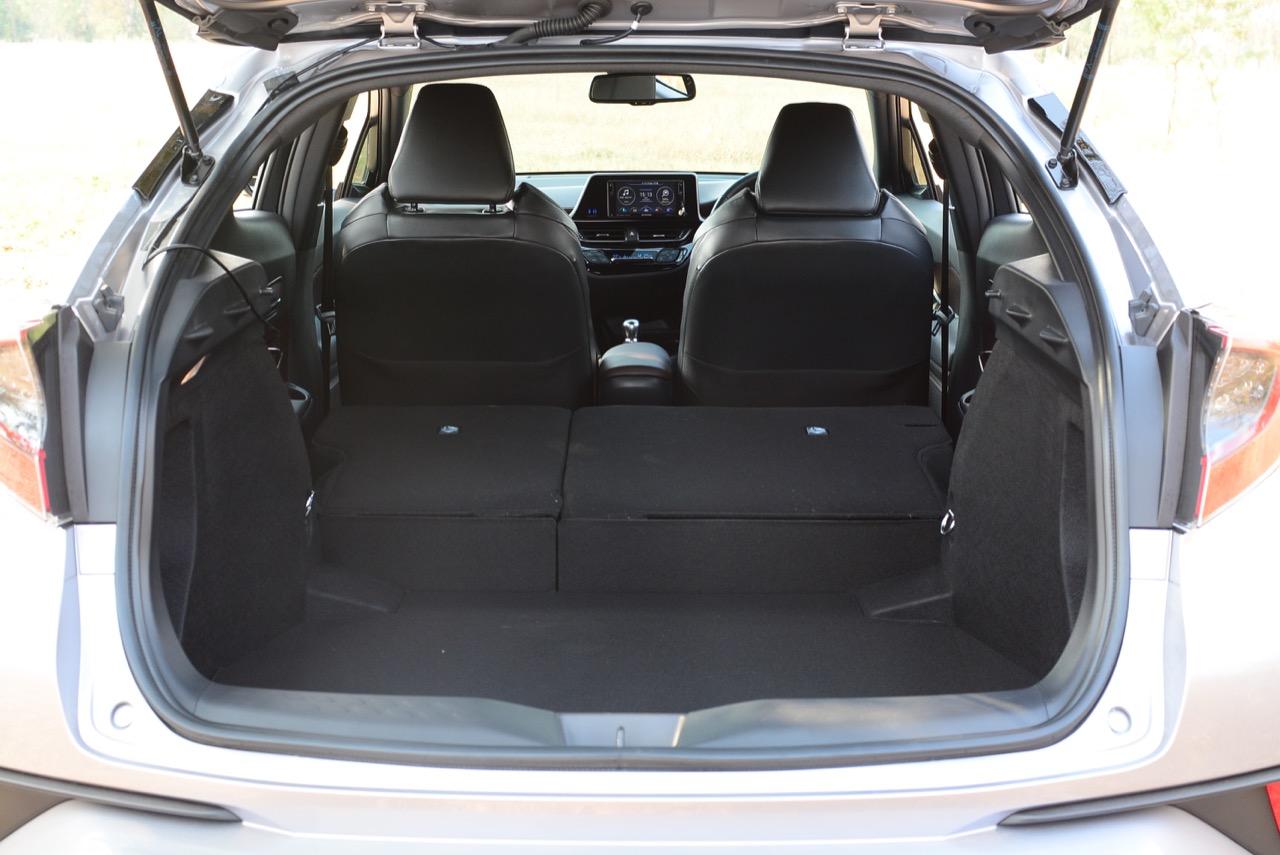เบาะที่นั่งแถวหลังของ C-HR สามารถพับแยกส่วน 60:40 ให้แบนราบได้เพื่อเพิ่มเนื้อที่บรรทุกสัมภาระเพิ่มเติม เมื่อพับเบาะลงทั้งหมดจะมีความจุมากถึง 1,112 ลิตร เหมาะกับการยัดของชิ้นโต ภายในห้องโดยสารยังออกแบบให้มีช่องเก็บของและที่วางแก้วน้ำตามสไตล์รถอเนกประสงค์สำหรับคนรุ่นใหม่ เบาะที่นั่งคู่หน้ายังใช้การปรับด้วยมือ ไม่ใช่ระบบไฟฟ้าเหมือนรุ่นไฮบริดที่มีราคาสูงกว่า เบาะคู่หน้าได้ออกแบบทรงของเบาะออกมาในแนวสปอร์ต พร้อมบุเสริมความหนาที่เน้นนั่งสบายขับได้ทั้งวัน ด้วยเบาะหน้าที่ออกแบบให้กระจายแรงกดของน้ำหนักตัวผู้ขับขี่และผู้โดยสารเพื่อความสบายเนื้อสบายตัว