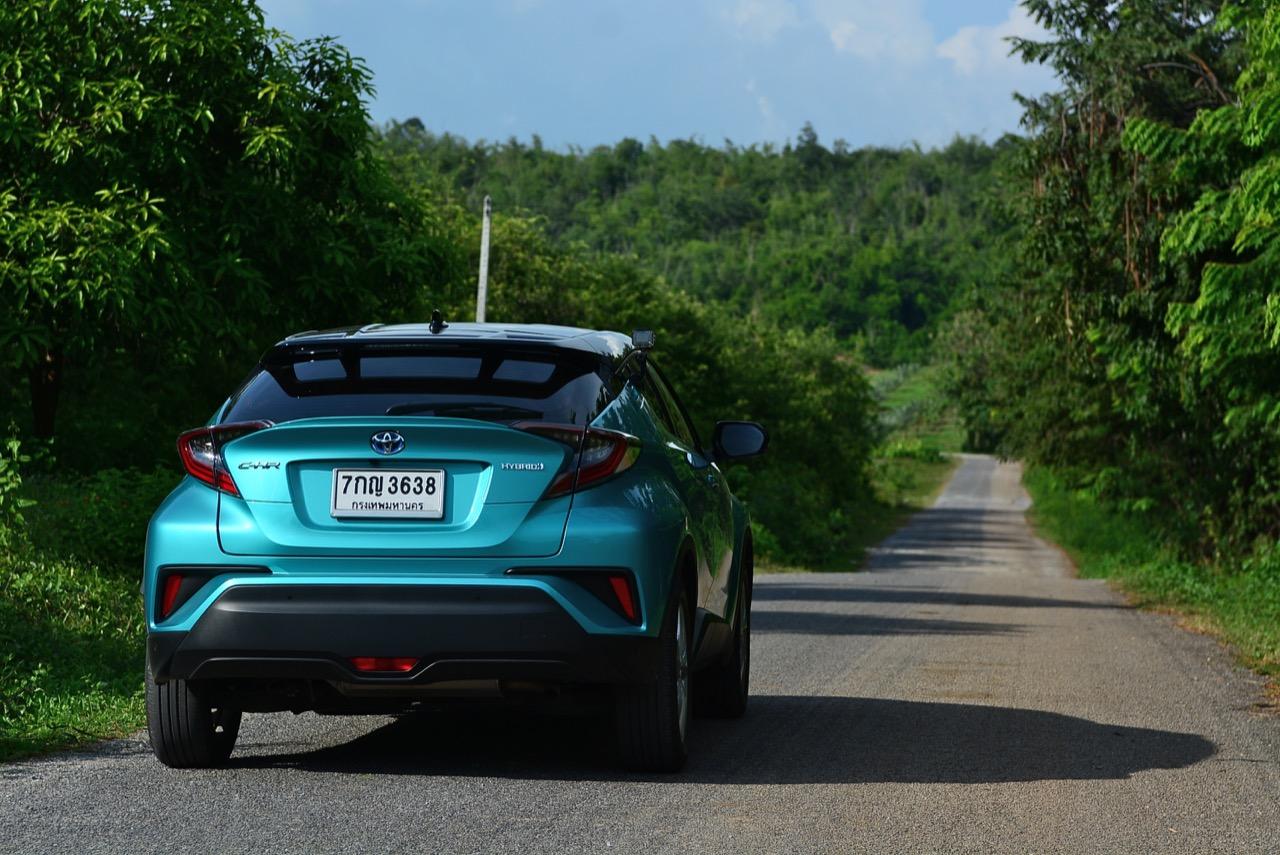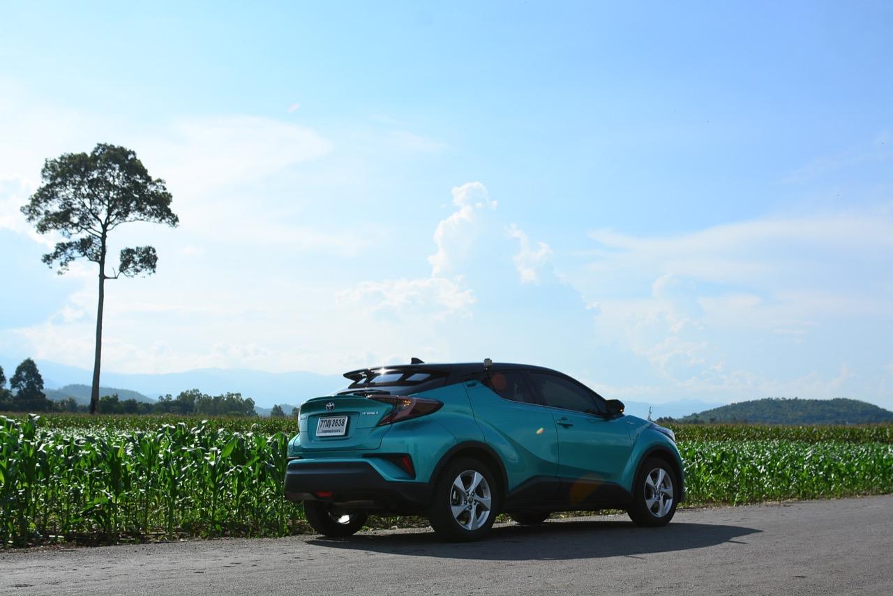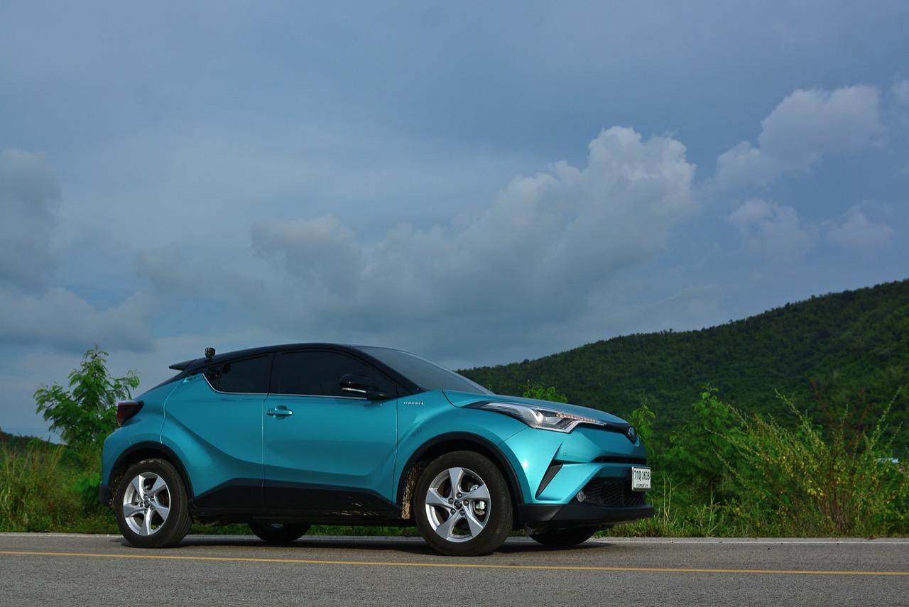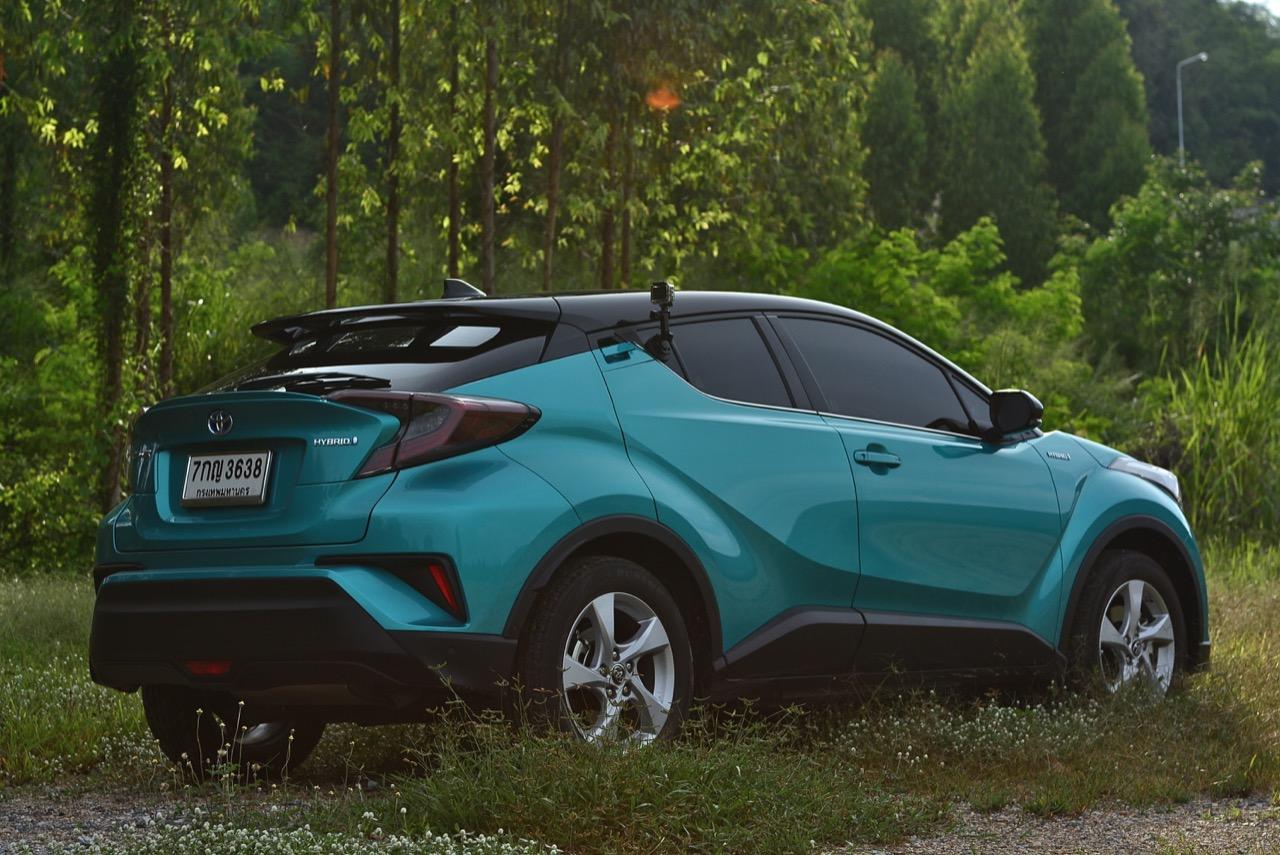 C-HR ขับทางไกลได้นุ่มนวลและเกาะถนนดี มันเป็นรถที่ค่อนข้างจะขัดแย้งกับตราสัญลักษณ์ 3 ห่วงซึ่งเคยทำตัวเป็นรถดากดื่นมีการขับที่น่าเบื่อและไม่ค่อยจะเกาะถนนเท่าที่ควร สีเขียวอมฟ้า Radiant Green Metallic พร้อมผืนหลังคาสีดำ Black Roof ทำให้มันแตะตาผู้คนทั่วไปที่กำลังเล็งๆ จะสอยรถใหม่แต่ติดอยู่ในใจเรื่องของความแคบ! ล้อขอบ 17 นิ้วไม่เล็กจนเกินไปและเหมาะกับการทำตัวเป็นยานยนต์ประหยัดพลังงานแบบไฮบริด ถ้าล้อใหญ่กว่านี้อัตราสิ้นเปลืองก็คงจะไม่ประหยัดเท่าที่ควร การยัดล้อขอบ 17 นิ้วกับยางลดแรงต้านทานผิวถนนเหมาะสมกันดีและทำให้มีอัตราสิ้นเปลืองดีสุดในกลุ่มครอสโอเวอร์ราคา 1 ล้านบาท ทรงที่ปราดเปรียวและการขับที่โดดเด่นของ C-HR อาจไม่โดนใจคุณเท่ากับพื้นที่เบาะหลังของ HR-V แต่ก็มีคนจำนวนไม่น้อยที่พอได้ลองขับก็จะชอบ C-HR กันแทบทั้งนั้น สไตล์ของ Toyota ยุคใหม่เปลี่ยนแปลงไปมาก หลังจากไล่ตามหลังด้านดีไซน์อยู่นาน ปัจจุบัน TNGA หรือ Toyota new Global Architecture ส่งผลให้รถยนต์ของ Toyota ขยับเข้าใกล้กับคำว่า Fun to Drive เข้าไปทุกที C-HR กลายเป็นรถ Toyota ยุคใหม่ที่มีความสวยงามโฉบเฉี่ยว แต่ถึงกระนั้นความเล็กของเบาะหลังก็ยังเป็นเรื่องกวนใจสำหรับครอบครัวที่ต้องการพื้นที่กว้างขวางอยู่ดี!