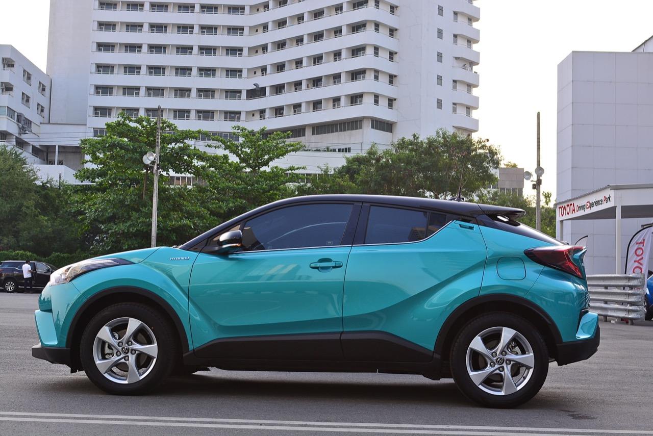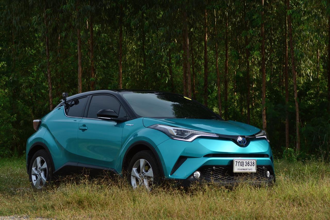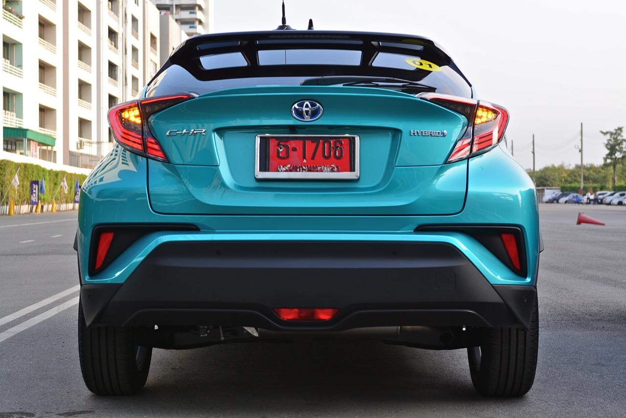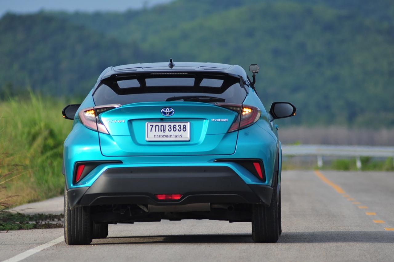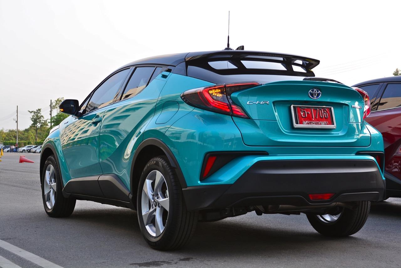 C-HR ขับทางไกลได้นุ่มนวลและเกาะถนนดี มันเป็นรถที่ค่อนข้างจะขัดแย้งกับตราสัญลักษณ์ 3 ห่วงซึ่งเคยทำตัวเป็นรถดากดื่นมีการขับที่น่าเบื่อและไม่ค่อยจะเกาะถนนเท่าที่ควร สีเขียวอมฟ้า Radiant Green Metallic พร้อมผืนหลังคาสีดำ Black Roof ทำให้มันแตะตาผู้คนทั่วไปที่กำลังเล็งๆ จะสอยรถใหม่แต่ติดอยู่ในใจเรื่องของความแคบ! ล้อขอบ 17 นิ้วไม่เล็กจนเกินไปและเหมาะกับการทำตัวเป็นยานยนต์ประหยัดพลังงานแบบไฮบริด ถ้าล้อใหญ่กว่านี้อัตราสิ้นเปลืองก็คงจะไม่ประหยัดเท่าที่ควร การยัดล้อขอบ 17 นิ้วกับยางลดแรงต้านทานผิวถนนเหมาะสมกันดีและทำให้มีอัตราสิ้นเปลืองดีสุดในกลุ่มครอสโอเวอร์ราคา 1 ล้านบาท ทรงที่ปราดเปรียวและการขับที่โดดเด่นของ C-HR อาจไม่โดนใจคุณเท่ากับพื้นที่เบาะหลังของ HR-V แต่ก็มีคนจำนวนไม่น้อยที่พอได้ลองขับก็จะชอบ C-HR กันแทบทั้งนั้น สไตล์ของ Toyota ยุคใหม่เปลี่ยนแปลงไปมาก หลังจากไล่ตามหลังด้านดีไซน์อยู่นาน ปัจจุบัน TNGA หรือ Toyota new Global Architecture ส่งผลให้รถยนต์ของ Toyota ขยับเข้าใกล้กับคำว่า Fun to Drive เข้าไปทุกที C-HR กลายเป็นรถ Toyota ยุคใหม่ที่มีความสวยงามโฉบเฉี่ยว แต่ถึงกระนั้นความเล็กของเบาะหลังก็ยังเป็นเรื่องกวนใจสำหรับครอบครัวที่ต้องการพื้นที่กว้างขวางอยู่ดี!