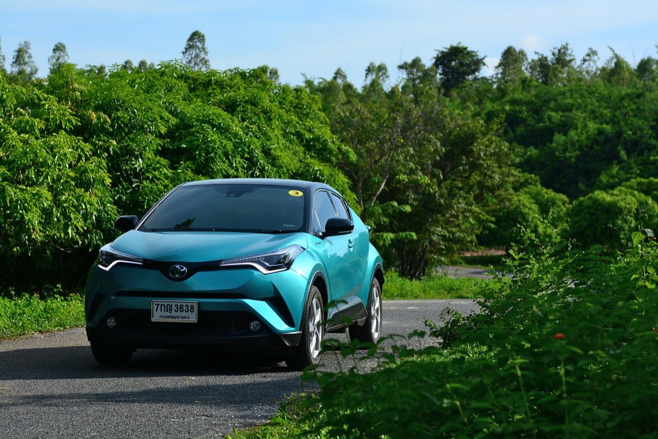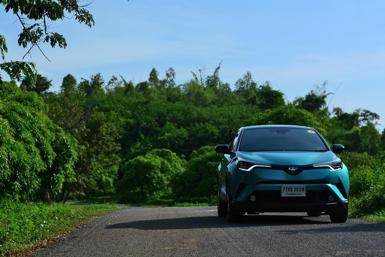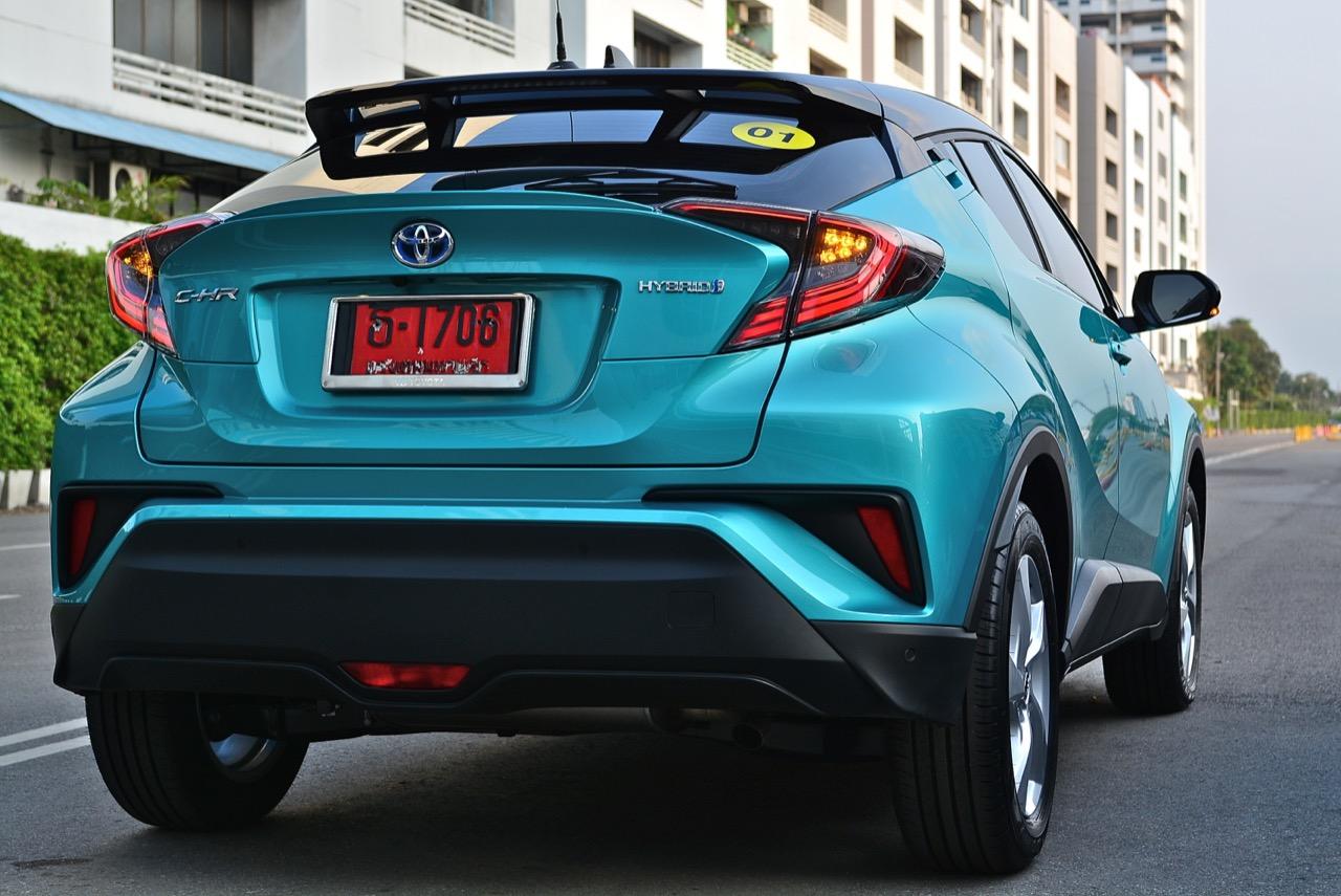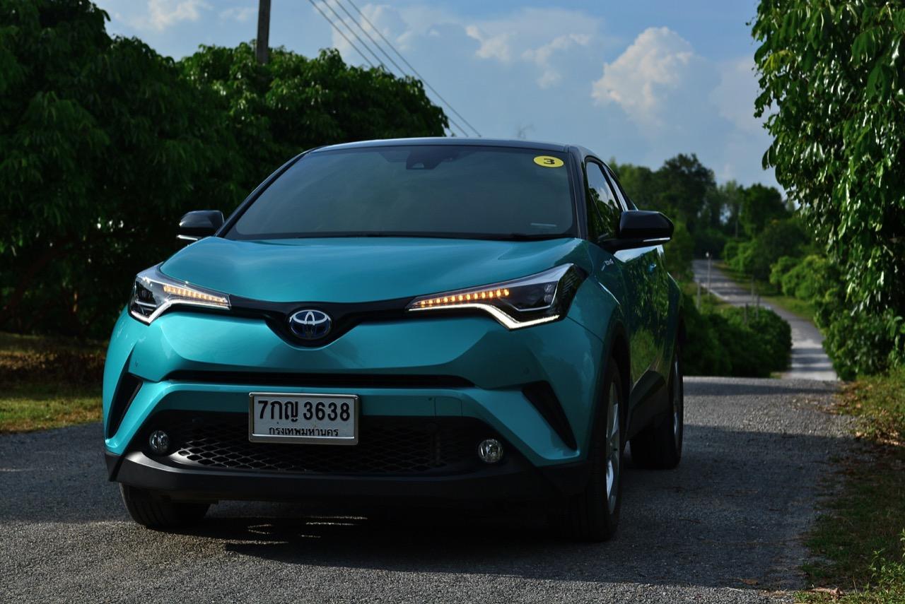 C-HR ขับทางไกลได้นุ่มนวลและเกาะถนนดี มันเป็นรถที่ค่อนข้างจะขัดแย้งกับตราสัญลักษณ์ 3 ห่วงซึ่งเคยทำตัวเป็นรถดากดื่นมีการขับที่น่าเบื่อและไม่ค่อยจะเกาะถนนเท่าที่ควร สีเขียวอมฟ้า Radiant Green Metallic พร้อมผืนหลังคาสีดำ Black Roof ทำให้มันแตะตาผู้คนทั่วไปที่กำลังเล็งๆ จะสอยรถใหม่แต่ติดอยู่ในใจเรื่องของความแคบ! ล้อขอบ 17 นิ้วไม่เล็กจนเกินไปและเหมาะกับการทำตัวเป็นยานยนต์ประหยัดพลังงานแบบไฮบริด ถ้าล้อใหญ่กว่านี้อัตราสิ้นเปลืองก็คงจะไม่ประหยัดเท่าที่ควร การยัดล้อขอบ 17 นิ้วกับยางลดแรงต้านทานผิวถนนเหมาะสมกันดีและทำให้มีอัตราสิ้นเปลืองดีสุดในกลุ่มครอสโอเวอร์ราคา 1 ล้านบาท ทรงที่ปราดเปรียวและการขับที่โดดเด่นของ C-HR อาจไม่โดนใจคุณเท่ากับพื้นที่เบาะหลังของ HR-V แต่ก็มีคนจำนวนไม่น้อยที่พอได้ลองขับก็จะชอบ C-HR กันแทบทั้งนั้น สไตล์ของ Toyota ยุคใหม่เปลี่ยนแปลงไปมาก หลังจากไล่ตามหลังด้านดีไซน์อยู่นาน ปัจจุบัน TNGA หรือ Toyota new Global Architecture ส่งผลให้รถยนต์ของ Toyota ขยับเข้าใกล้กับคำว่า Fun to Drive เข้าไปทุกที C-HR กลายเป็นรถ Toyota ยุคใหม่ที่มีความสวยงามโฉบเฉี่ยว แต่ถึงกระนั้นความเล็กของเบาะหลังก็ยังเป็นเรื่องกวนใจสำหรับครอบครัวที่ต้องการพื้นที่กว้างขวางอยู่ดี!