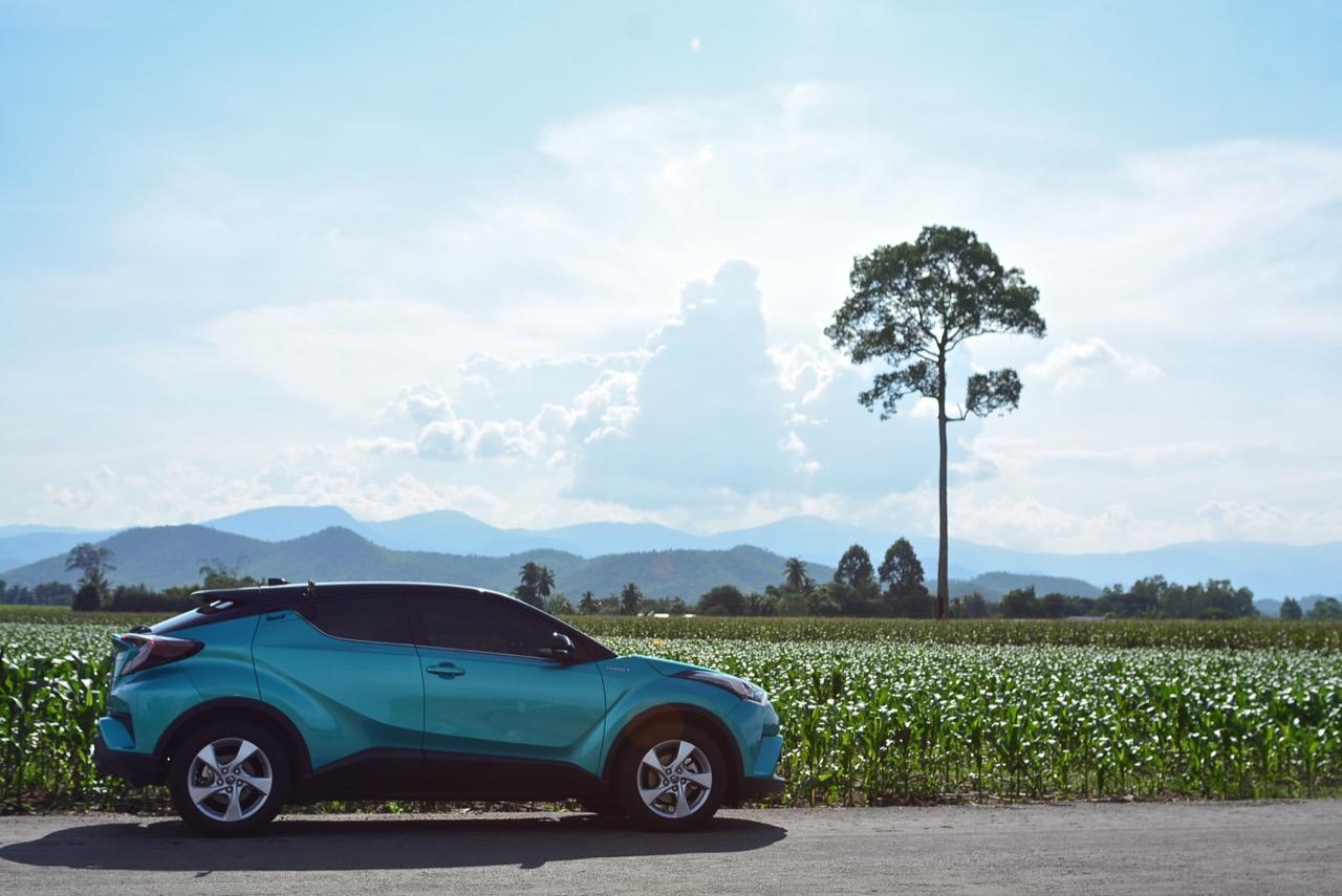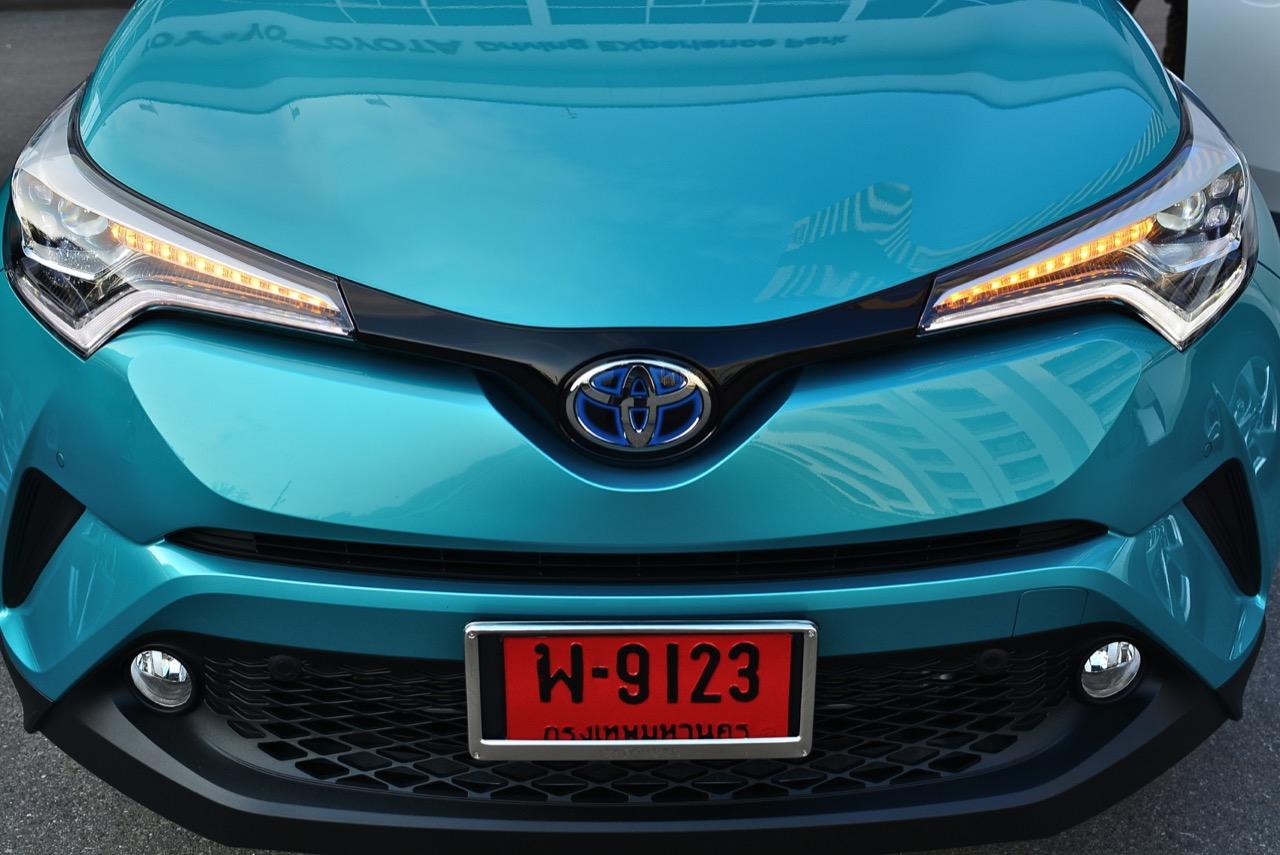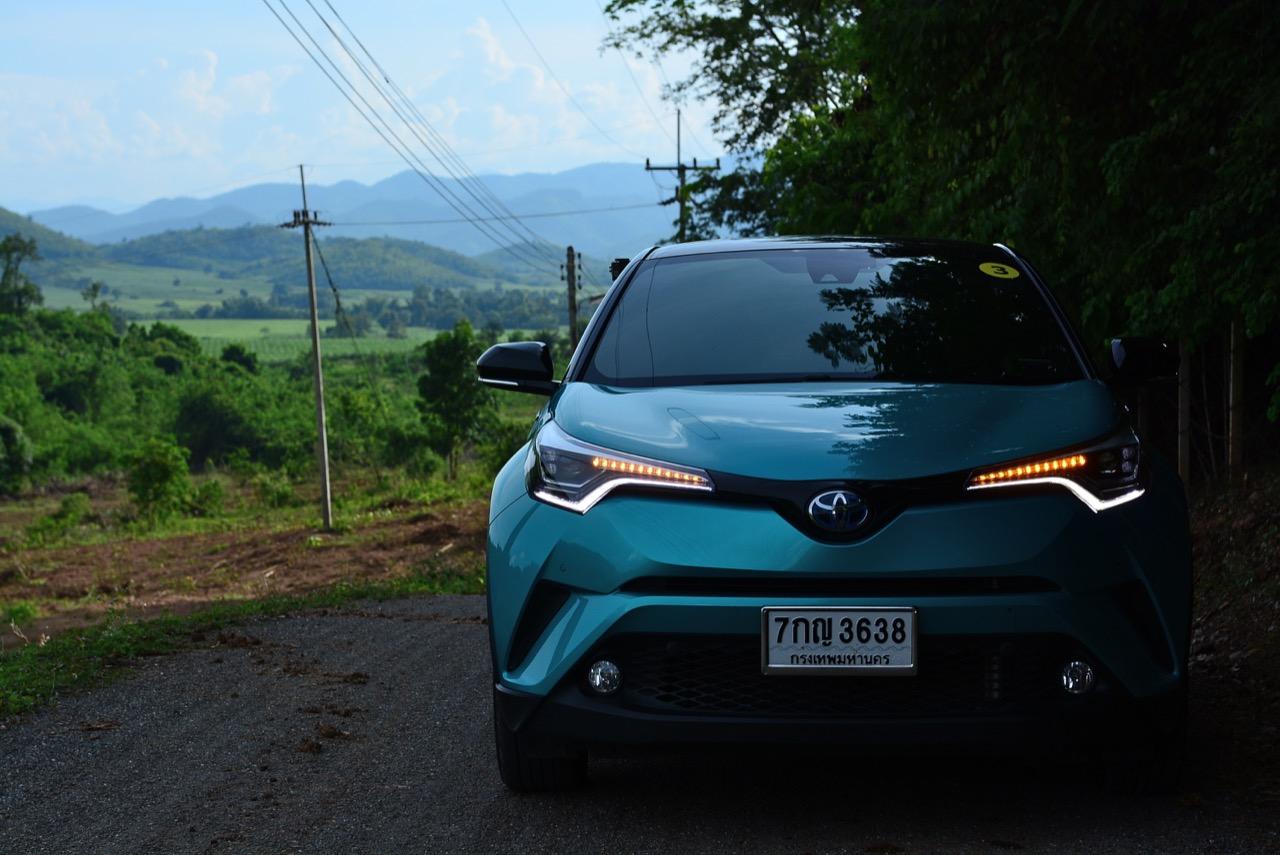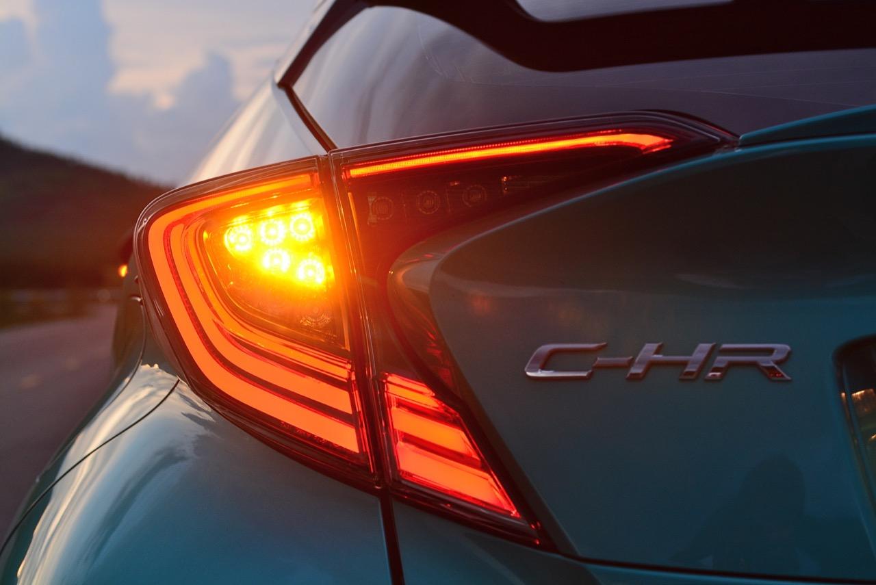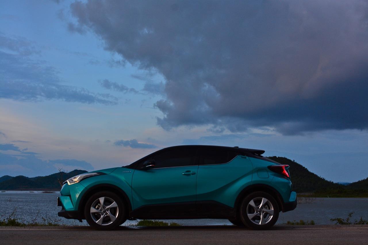 C-HR ขับทางไกลได้นุ่มนวลและเกาะถนนดี มันเป็นรถที่ค่อนข้างจะขัดแย้งกับตราสัญลักษณ์ 3 ห่วงซึ่งเคยทำตัวเป็นรถดากดื่นมีการขับที่น่าเบื่อและไม่ค่อยจะเกาะถนนเท่าที่ควร สีเขียวอมฟ้า Radiant Green Metallic พร้อมผืนหลังคาสีดำ Black Roof ทำให้มันแตะตาผู้คนทั่วไปที่กำลังเล็งๆ จะสอยรถใหม่แต่ติดอยู่ในใจเรื่องของความแคบ! ล้อขอบ 17 นิ้วไม่เล็กจนเกินไปและเหมาะกับการทำตัวเป็นยานยนต์ประหยัดพลังงานแบบไฮบริด ถ้าล้อใหญ่กว่านี้อัตราสิ้นเปลืองก็คงจะไม่ประหยัดเท่าที่ควร การยัดล้อขอบ 17 นิ้วกับยางลดแรงต้านทานผิวถนนเหมาะสมกันดีและทำให้มีอัตราสิ้นเปลืองดีสุดในกลุ่มครอสโอเวอร์ราคา 1 ล้านบาท ทรงที่ปราดเปรียวและการขับที่โดดเด่นของ C-HR อาจไม่โดนใจคุณเท่ากับพื้นที่เบาะหลังของ HR-V แต่ก็มีคนจำนวนไม่น้อยที่พอได้ลองขับก็จะชอบ C-HR กันแทบทั้งนั้น สไตล์ของ Toyota ยุคใหม่เปลี่ยนแปลงไปมาก หลังจากไล่ตามหลังด้านดีไซน์อยู่นาน ปัจจุบัน TNGA หรือ Toyota new Global Architecture ส่งผลให้รถยนต์ของ Toyota ขยับเข้าใกล้กับคำว่า Fun to Drive เข้าไปทุกที C-HR กลายเป็นรถ Toyota ยุคใหม่ที่มีความสวยงามโฉบเฉี่ยว แต่ถึงกระนั้นความเล็กของเบาะหลังก็ยังเป็นเรื่องกวนใจสำหรับครอบครัวที่ต้องการพื้นที่กว้างขวางอยู่ดี!