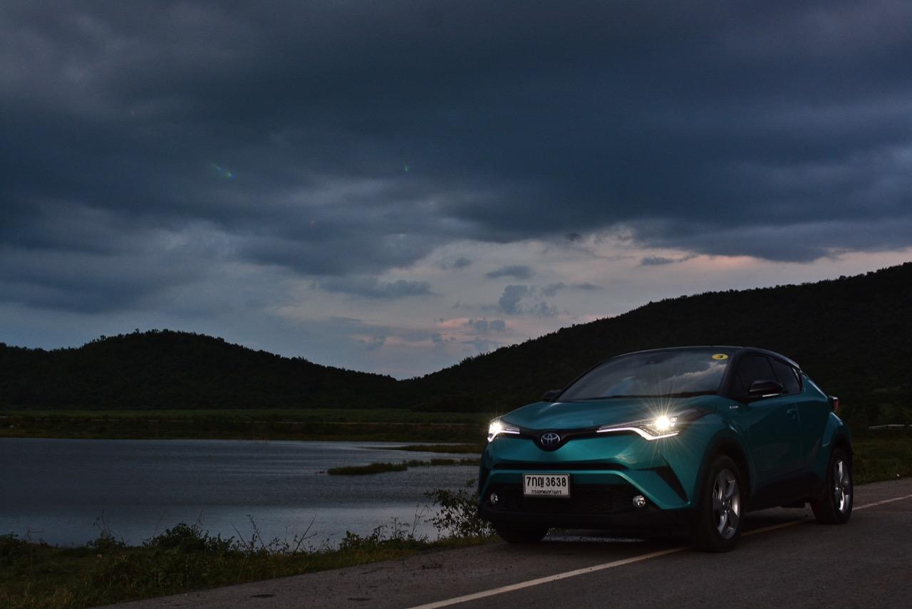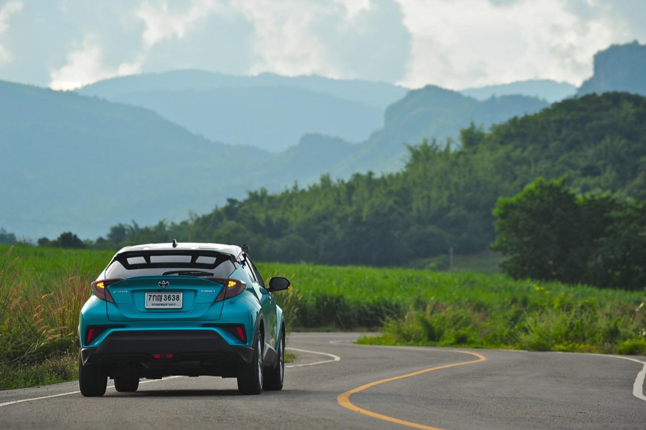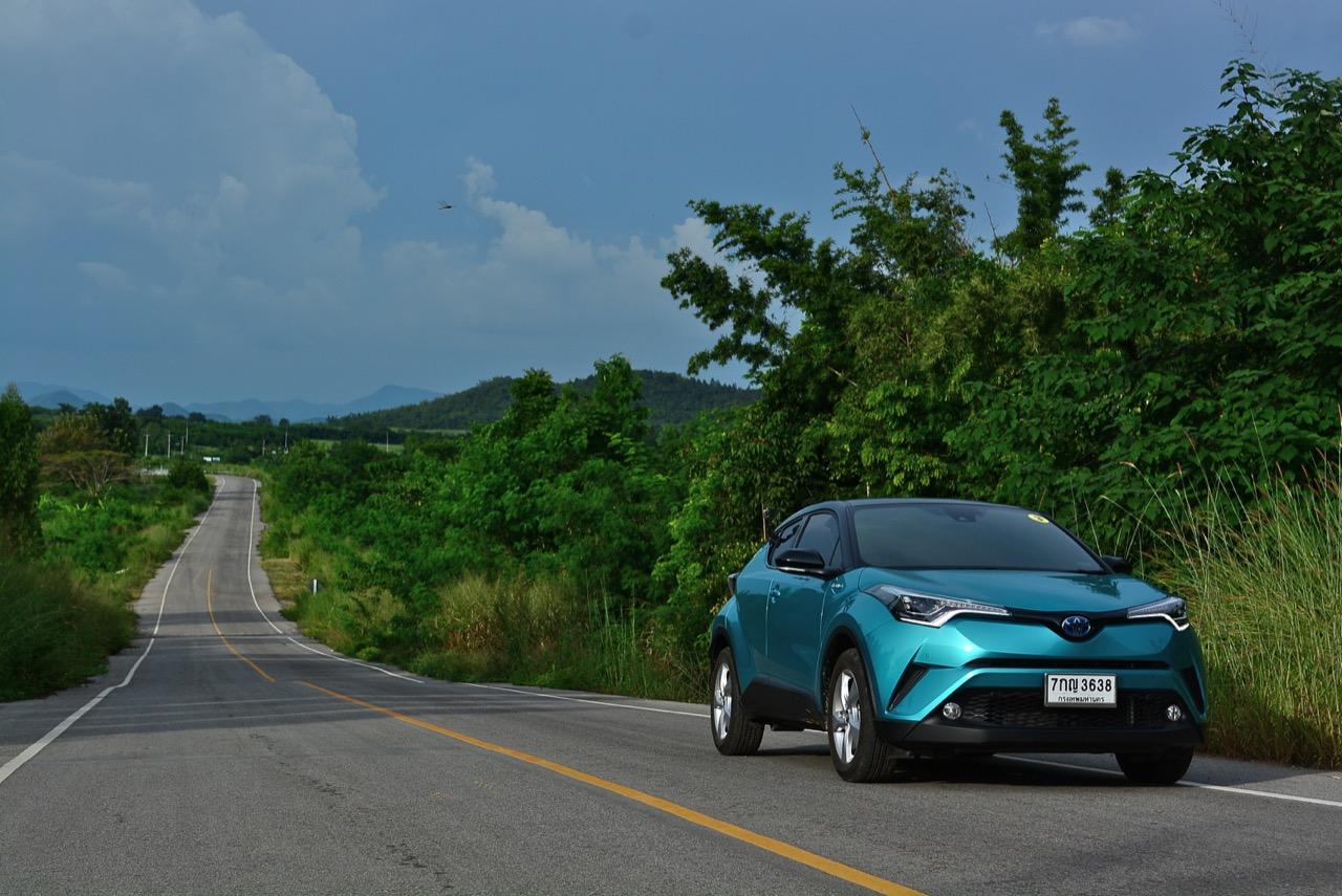 คุณจะรู้สึกได้ถึงแรงยึดเกาะเมื่อขับ C-HR เข้าโค้งเร็วๆ ผมชอบการสอดประสานกันระหว่างการทำงานของช่วงล่าง ชุดบังคับเลี้ยวและแชสซี เกียร์ CVT ที่มีมอเตอร์อยู่ภายในก็ทำงานอย่างเนียนแม้จะน่าเบื่ออยู่บ้างจากอาการย้วยเวลากดคันเร่งลึกๆ เพื่อแซงแต่ก็แลกคืนด้วยการตัดต่อที่เนียนและไหลลื่นเนื่องจากเป็นเกียร์สายพาน บนเส้นทางที่คับแคบ ช่วงล่างและพวงมาลัยเข้ามาช่วยทำให้การควบคุมง่ายดายขึ้น รวมถึงการขับในย่านความเร็วสูงที่มันพยายามทำตัวให้เหนือกว่ารถคู่แข่งไม่ใช่ที่อัตราเร่งแต่เป็นเรื่องของการยึดเกาะที่มีความสำคัญเมื่อขับเร็วคุณสามารถยิงยาวผ่านโค้งด้วยความเร็วที่เหมาะสมกับสภาพของโค้งพร้อมๆ กับการจิกหัวเข้าและออกจากปลายโค้งได้ดีกว่ารถคู่แข่งที่เอาแต่ย้วยไปย้วยมาเมื่อพบกับถนนที่ไม่เรียบ ด้วยการควบคุมที่ดีของมันจะทำให้คุณขับเร็วขึ้นแบบไม่รู้ตัว โดยภาพรวม C-HR HV Hi ให้ความรู้สึกถึงความเสถียรที่เป็นธรรมชาติ และไม่แสดงอาการรุ่มร่ามออกมาให้เห็นหากคนขับไม่ได้ติดลูกบ้าจนเกินงาม!