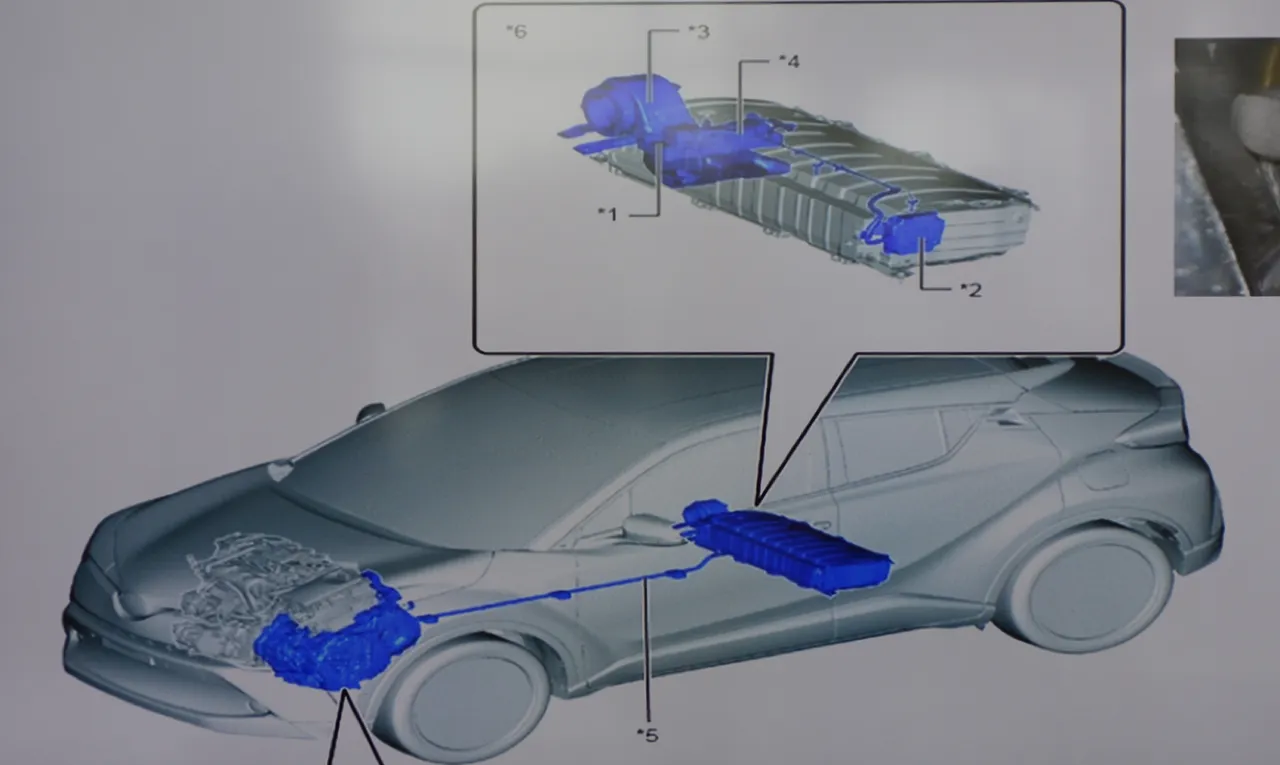 ชุดมอเตอร์ 2 ตัวที่ฝังอยู่ในเกียร์เป็นแบบ P610 hybrid transaxle MG1 / MG2 ขนาด 600 โวลต์ ระบายความร้อนด้วยน้ำ มอเตอร์ไฟฟ้า MG 1 ของ C-HR มีแรงดันไฟฟ้าสูงสุด AC600 V กำลังสูงสุด 53 กิโลวัตต์ ส่วนมอเตอร์ไฟฟ้า MG 2 มีแรงบิดสูงสุด 163 นิวตัน-เมตร มีแรงดันไฟสูงสุด AC600 V ระบบ Hybrid จากแบรนด์ Toyota จัดมอเตอร์ไฟฟ้าขนาดเล็ก กำลัง 72 แรงม้า แรงบิดจากมอเตอร์ทำได้ที่ 163 นิวตันเมตร แบตเตอรี่ Hybrid แบบ Ni-MH ควบรวมพลังงานทั้งเครื่องยนต์และมอเตอร์ทำให้ C-HR มีกำลังสูงสุด 122 แรงม้า ระบบส่งกำลังใช้เกียร์อัตโนมัติ แบบ E-CVT มีมอเตอร์ MG-1 และ MG-2 ฝังไว้ในเกียร์เพื่อเสริมแรงบิดและชาร์จไฟใส่แบตเตอรี่ สมรรถนะเร่งจาก 0-100 กิโลเมตรต่อชั่วโมงใน 11.3 วินาที