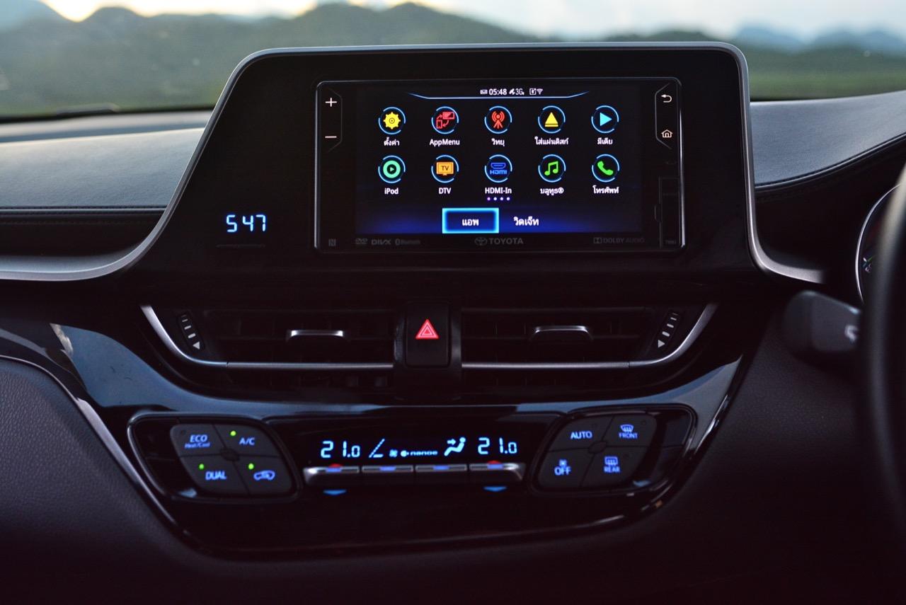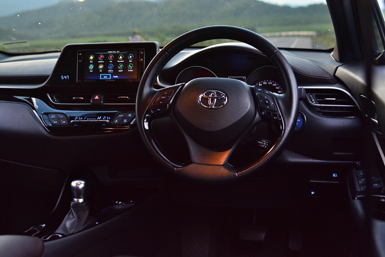 แบตเตอรี่ที่วางอยู่ใต้เบาะผู้โดยสารตอนหลังทำให้ C-HR Hybrid เก็บเสียงได้ไม่ค่อยดีเท่าที่ควร แต่เสียงรบกวนก็ไม่ได้ดังมากจนทำให้รำคาญ ภายในของมันมีทั้งคนที่ชอบและไม่ชอบ มาตรวัดทรงกระบอกที่มีหน้าตาบ้านๆ ก็มองเห็นได้ชัดเจนดี รวมถึงจอมอนิเตอร์กลางที่ยัดสารพัดเครื่องเล่นมาให้ ทั้งการจูนค่าต่างๆ การเชื่อมต่อกับโทรศัพท์มือถือ ภาครับวิทยุ การเชื่อมต่อกับ USB และ iPOD รวมไปถึงการเล่นแผ่น CD/ DVD/MP3 กล้องมองหลังและอื่นๆ อีกเพียบใช้กันไม่หมด ระบบปรับอากาศให้ความเย็นฉ่ำตามสไตล์ของ Toyota ที่สามารถแปลงห้องโดยสารให้กลายเป็นขั้วโลกเหนือได้ เหมาะกับการใช้งานในเขตร้อนอย่างประเทศไทย ระบบสื่อสารกับโลกภายนอก toyota t-connect telematics ช่วยทำให้ทุกอย่างง่ายขึ้นมาก