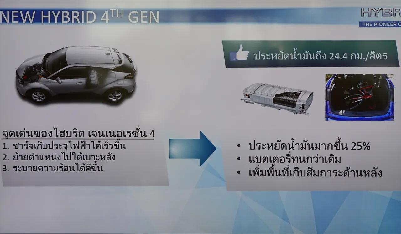 C-HR ย่อมาจาก Coupe High Rider หมายถึงรถแนวคูเป้ยกสูง มีจุดเด่นอยู่ที่ระบบขับเคลื่อนแบบไฮบริดที่คนส่วนใหญ่ยังคงหวาดระแวงอายุการใช้งานของแบตเตอรี่ แต่ Toyota เพิ่มความมั่นใจด้วยการรับประกันการใช้งานแบตฯ นาน 10 ปี แบตฯ รุ่นใหม่พร้อมพัดลมระบายความร้อนชาร์จเก็บประจุกระแสไฟได้เร็วขึ้น ตำแหน่งของการติดตั้งแบตเตอรี่ย้ายจากหลังรถมาไว้ที่ใต้เบาะผู้โดยสารตอนหลังเพื่อการกระจายน้ำหนักที่ดี Toyota ยังเคลมว่าแบตเตอรี่มีความทนทานมากขึ้นและประหยัดเชื้อเพลิงมากกว่าเดิม โดยเคลมตัวเลขอัตราสิ้นเปลืองของ C-HR รุ่นไฮบริดที่ 24 กิโลเมตรต่อลิตร สำหรับการคุ้มครองและดูแล ซึ่งเป็นบริการหลังการขายของ G-C-HR จัดฟรีค่าแรง 11 ระยะ ตั้งแต่ 1,000 – 100,000 กิโลเมตร ขยายเวลารับประกันคุณภาพรถใหม่ Warranty เป็น 5 ปี หรือ 150,000 กิโลเมตร รุ่น Hybrid รับประกันการทำงานของระบบ Hybrid นาน 5 ปี โดยไม่จำกัดระยะทาง และรับประกันแบตเตอรี่ Hybrid 10 ปี โดยไม่จำกัดระยะทาง ขับกันยาวๆ ไม่ต้องกลัวว่าจะมาพังกันในเร็ววัน!
