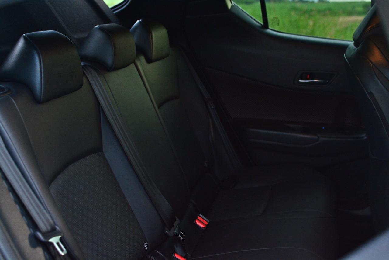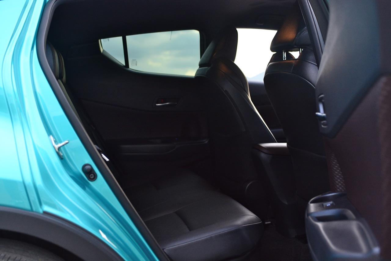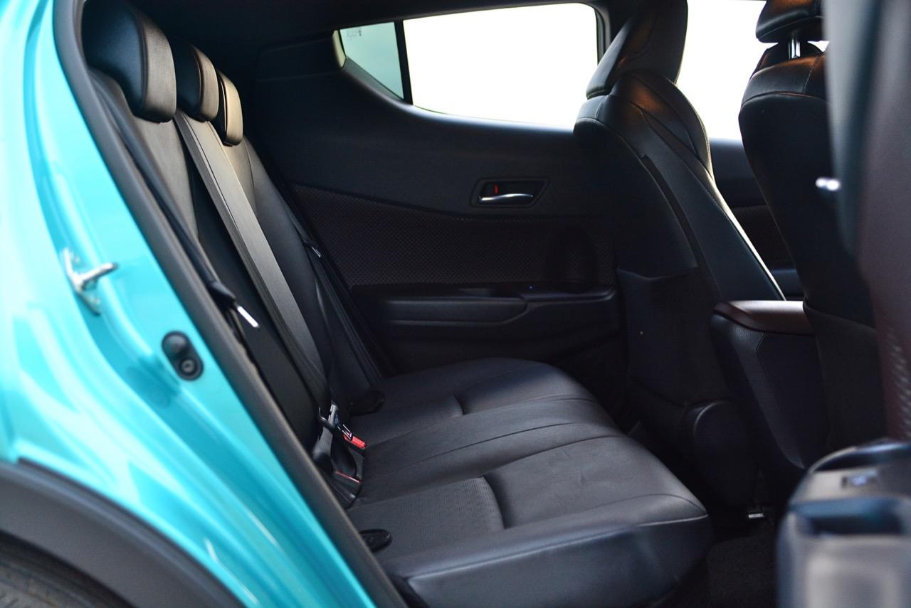 มีจุดเด่นเรื่องของการขับก็ต้องมีจุดด้อยกันบ้างเป็นเรื่องปกติ เบาะหลังที่บ่นกันว่าแคบ เอาเข้าจริงๆ คนที่ซื้อ C-HR ก็มีทั้งครอบครัวเล็กๆ ที่ยังไม่มีลูก คนโสดในวัยทำงานและครอบครัวที่มีสมาชิก 4 คน เบาะหลังก็นั่งได้สบายดีถ้าตัวคุณไม่อ้วนเป็นโดราเอมอนหรือสูงโย่งเป็นเสาไฟฟ้า บานประตูหลังที่ออกแบบในทรง Coupe ย้ายมือจับประตูไปอยู่ใกล้เสาท้ายแล้วยกแนวขอบของบานประตูให้สูงขึ้นทำให้บดบังทัศนวิสัยการมองเห็นของผู้โดยสารบนเบาะหลังพอสมควร หากไม่คิดมากก็พอใช้ได้แต่ถ้าชอบกว้างๆ มองเห็นได้ชัดเจนก็คงต้องมองรถรุ่นอื่นที่มีบานประตูหลังใหญ่โตกว่านี้ สำหรับการใช้งานในชีวิตประจำวัน เมื่ออยู่กันแค่สองคนหรือขับใช้งานอยู่คนเดียว ปัญหาความอึดอัดของเบาะหลังไม่ได้รบกวนความสะดวกสบายแม้แต่น้อย เพราะขับอยู่เบาะหน้าอย่างเดียวไม่ได้มีเพื่อนร่วมทางมานั่งเบาะหลังกันทุกวี่ทุกวัน นานๆ จะมีเพื่อนมานั่งด้วย เบาะหลังที่มองด้านนอกไม่ค่อยจะเห็นก็จะไม่สร้างปัญหาแต่อย่างใดทั้งสิ้น